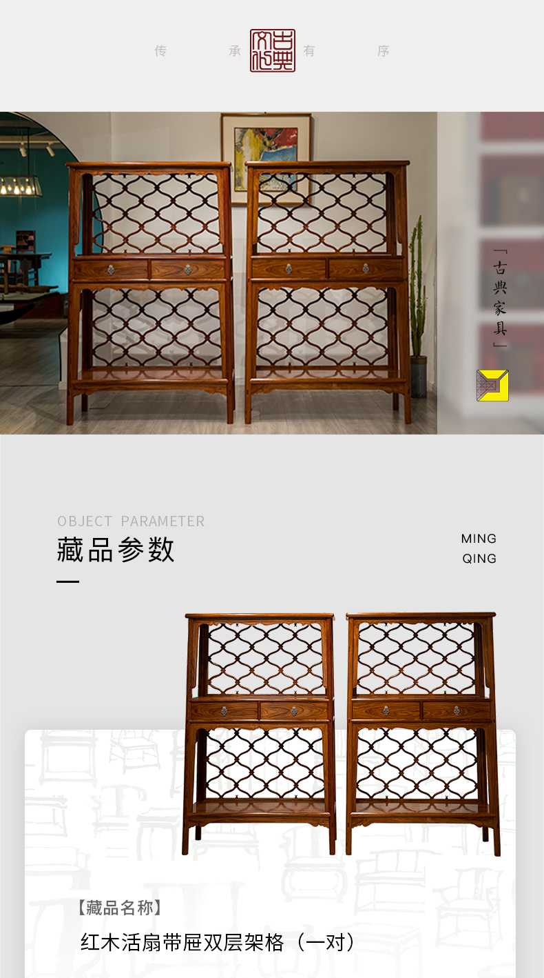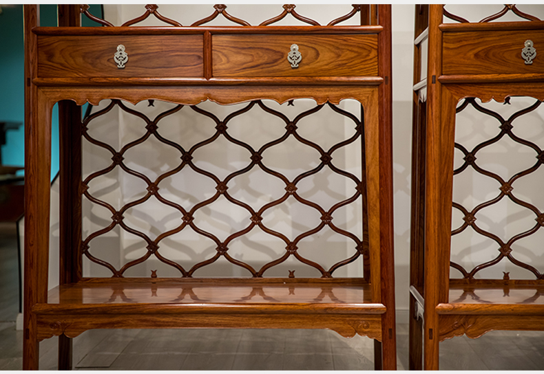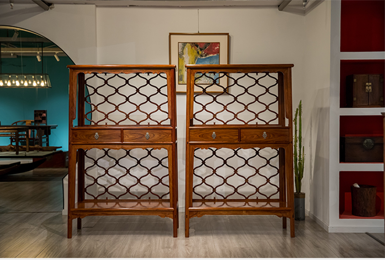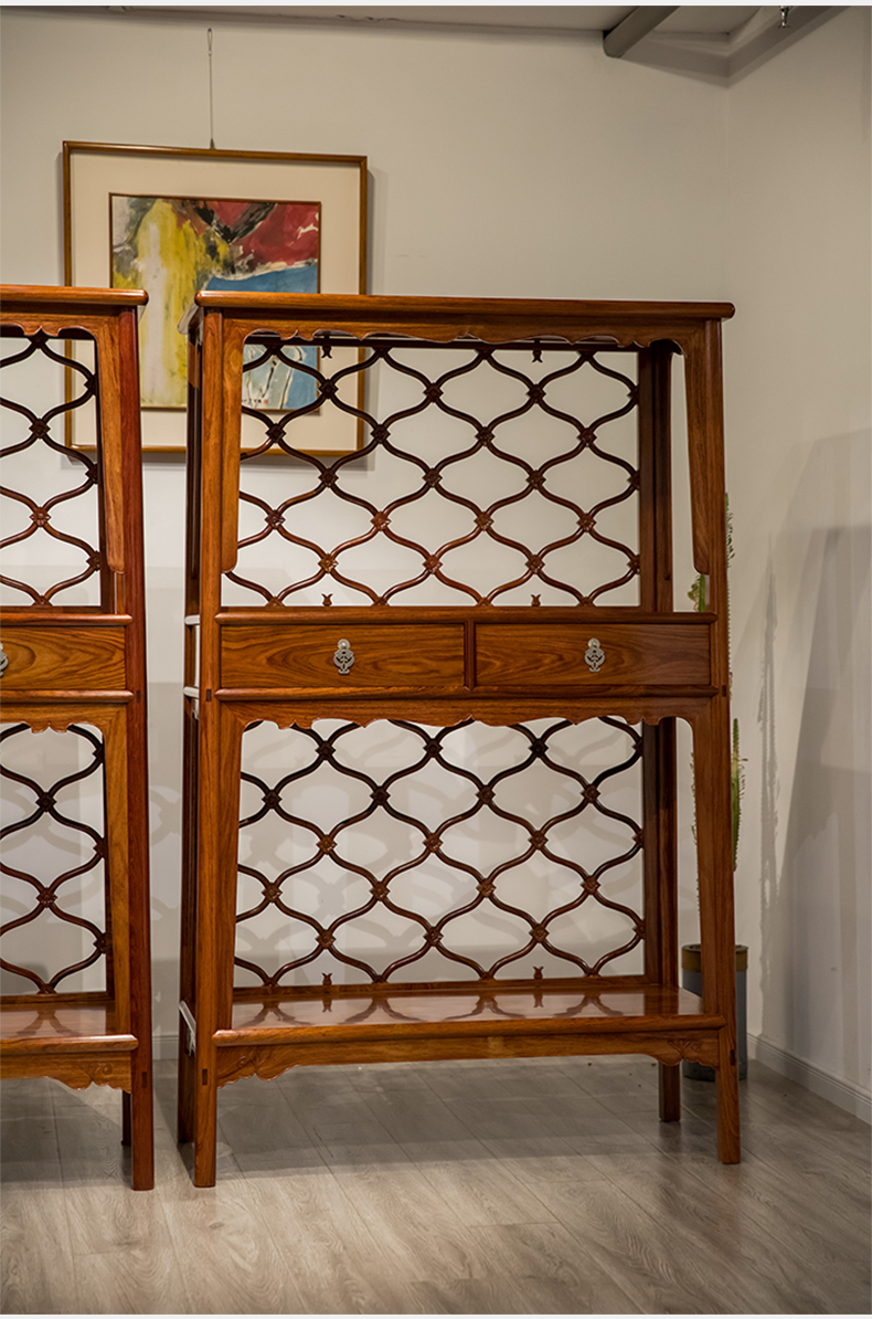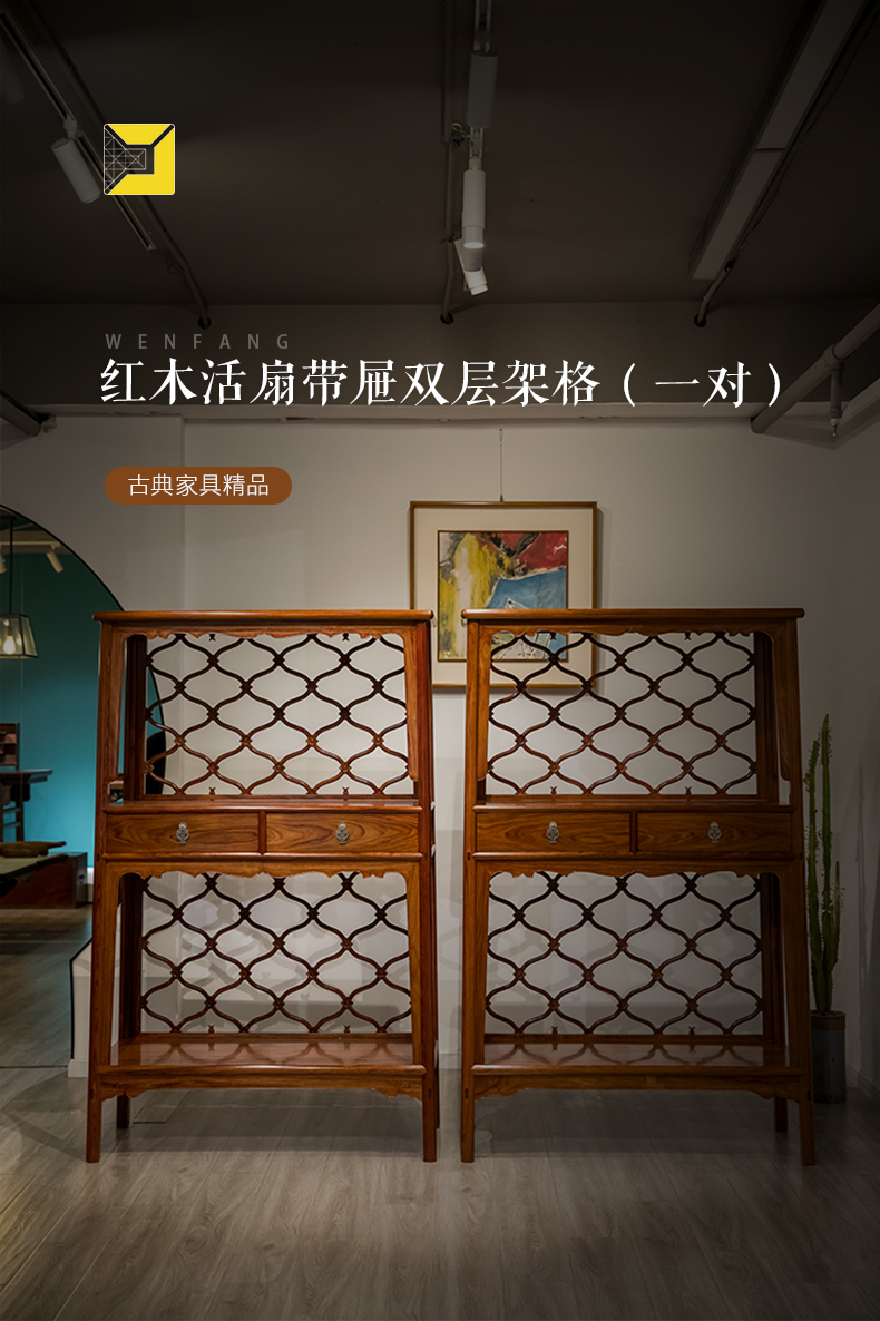 红木活扇带屉双层架格(一对)