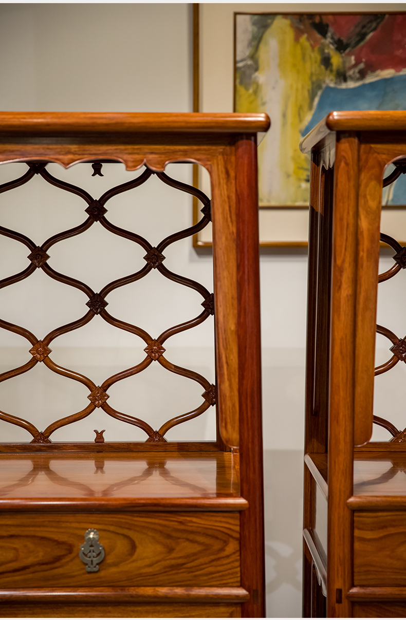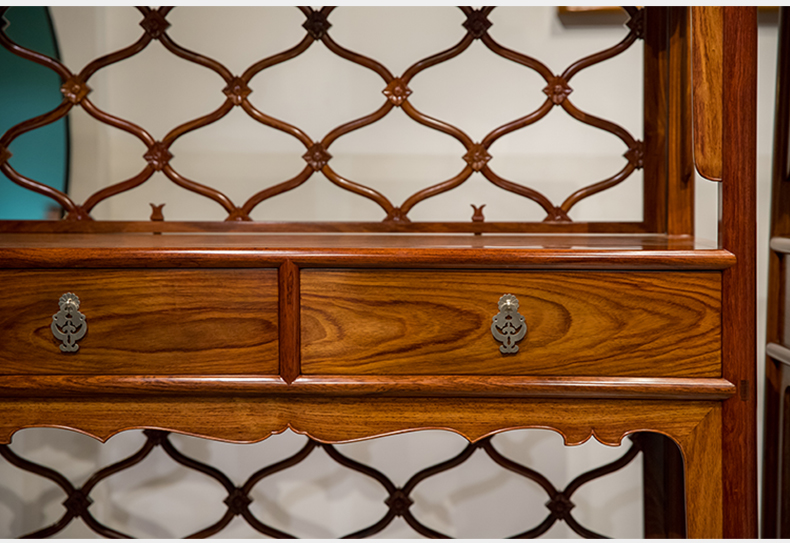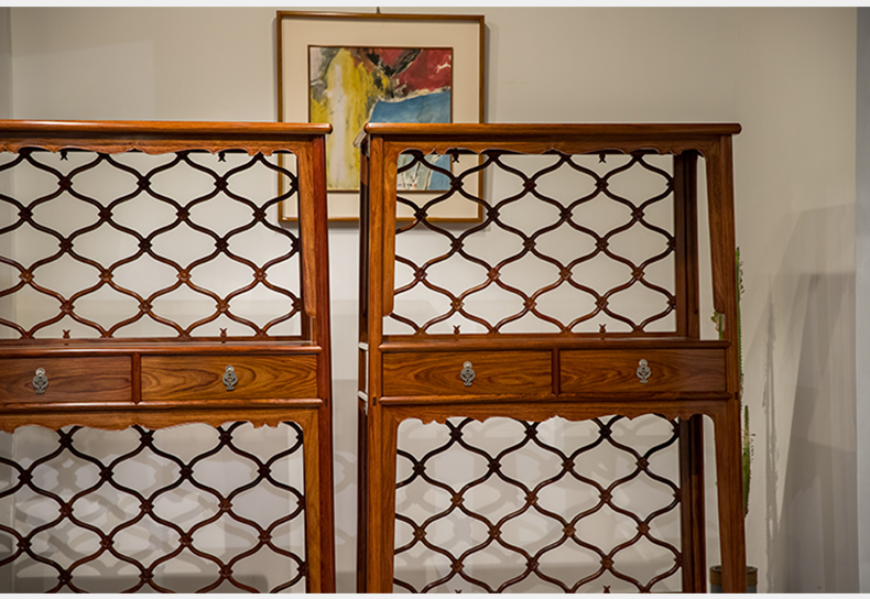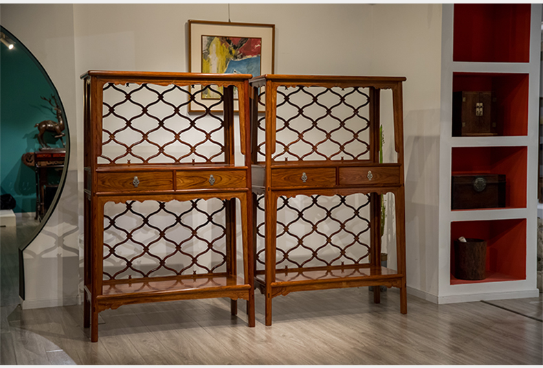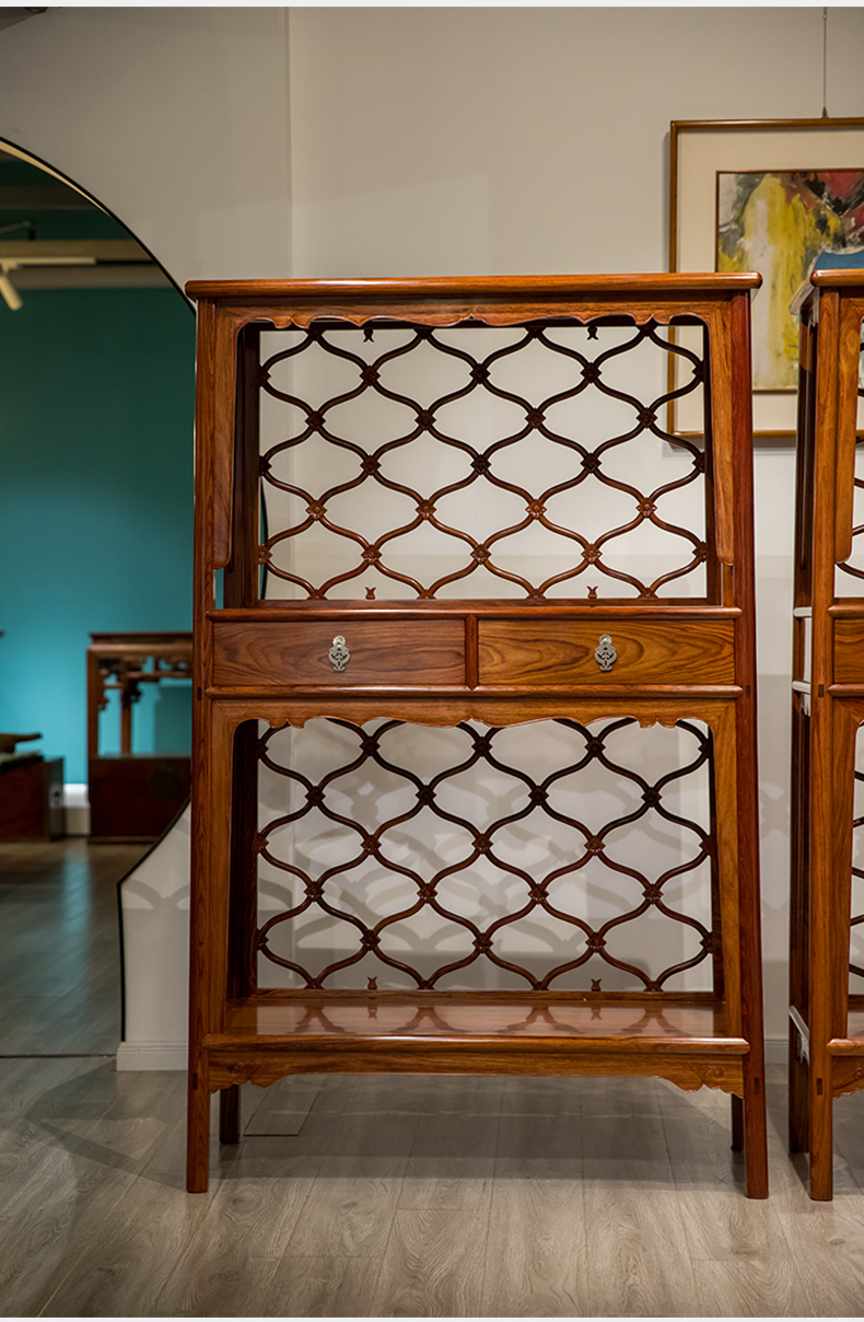 红木活扇带屉双层架格(一对)