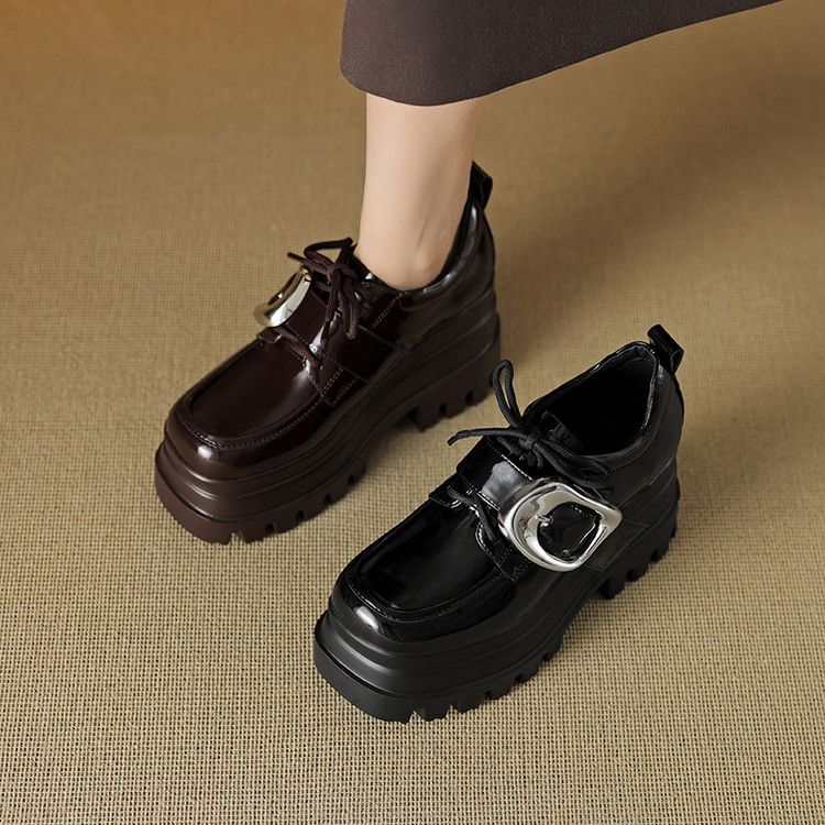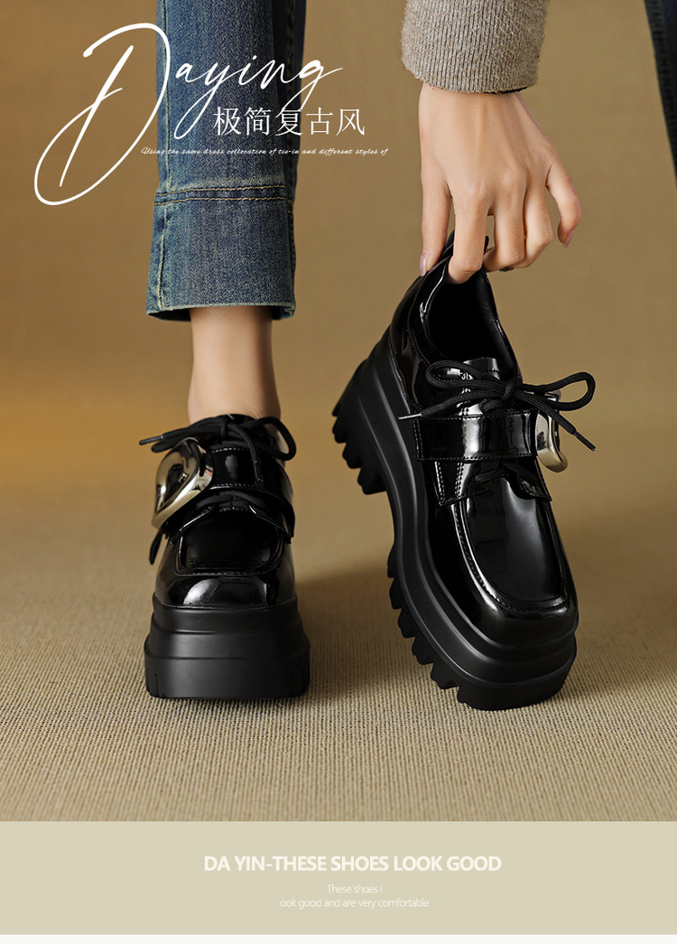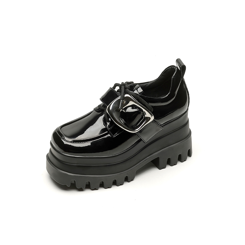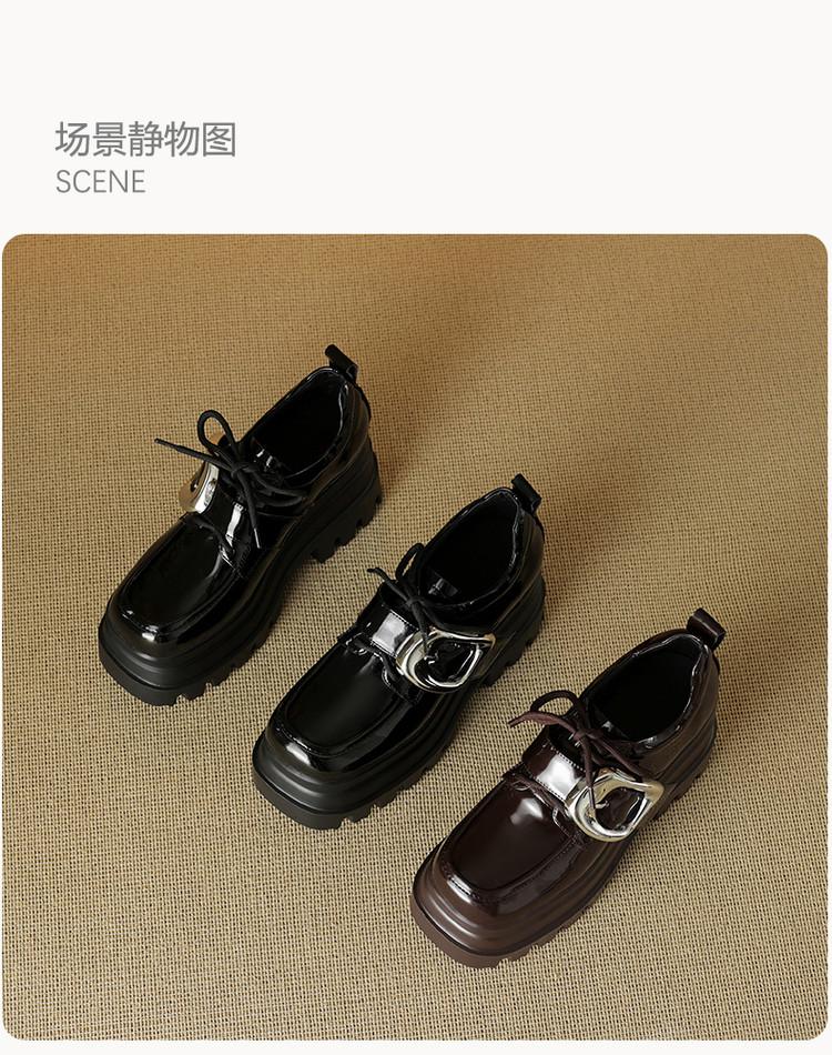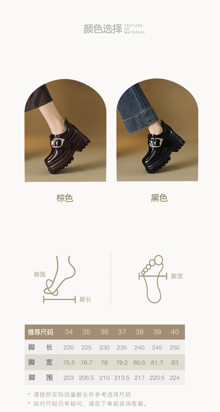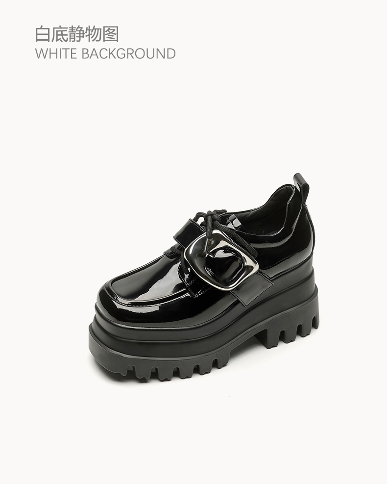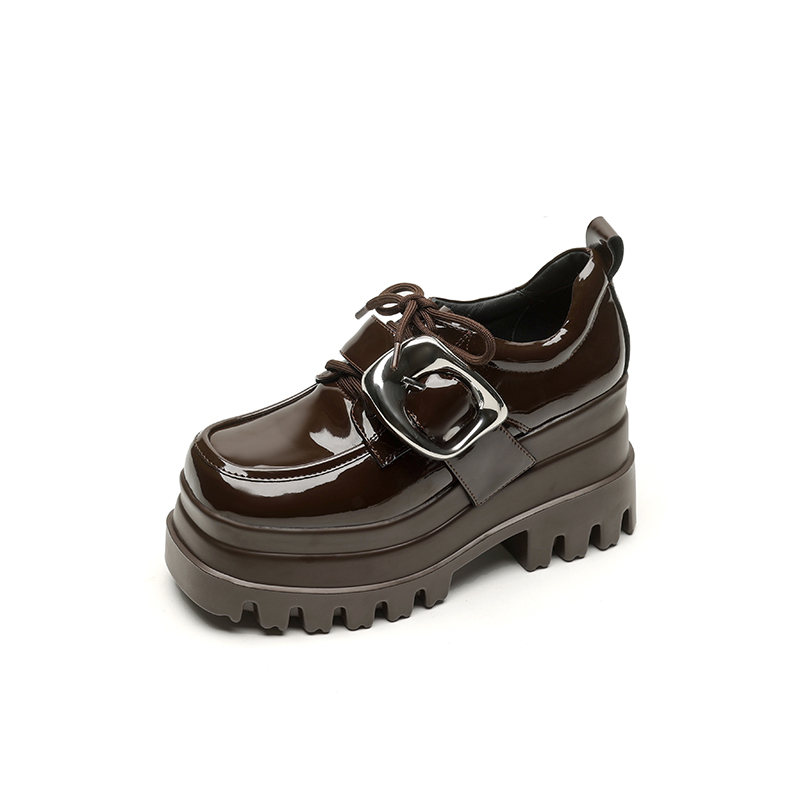 【预售5天】真皮厚底增高小皮鞋女新款爆款复古乐福鞋英伦风系带皮带扣女单鞋MQE&G144-1