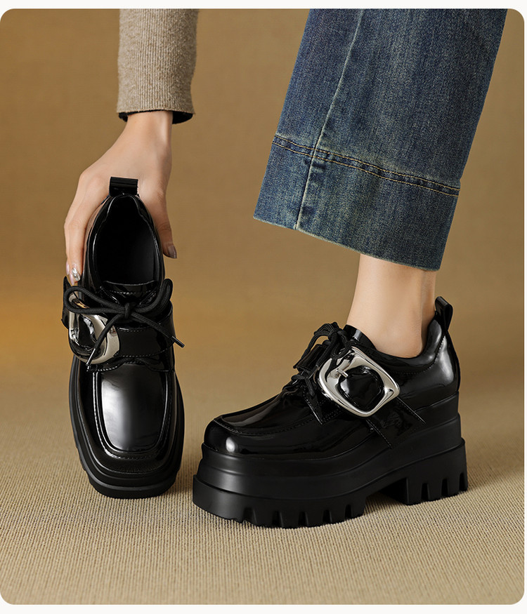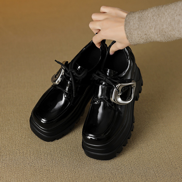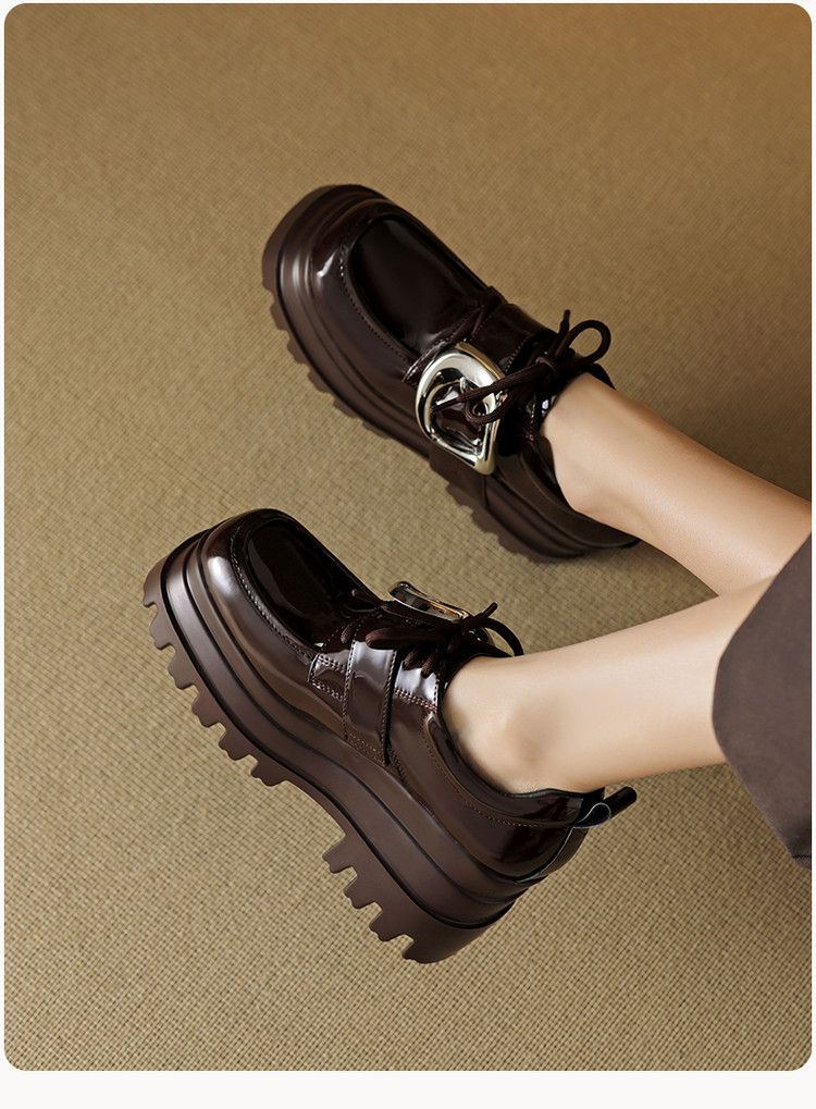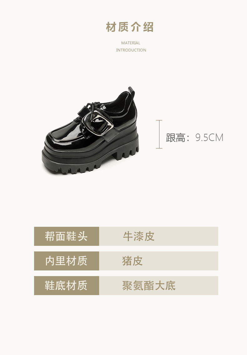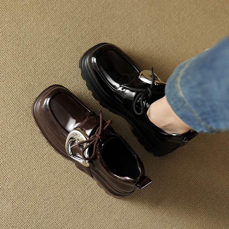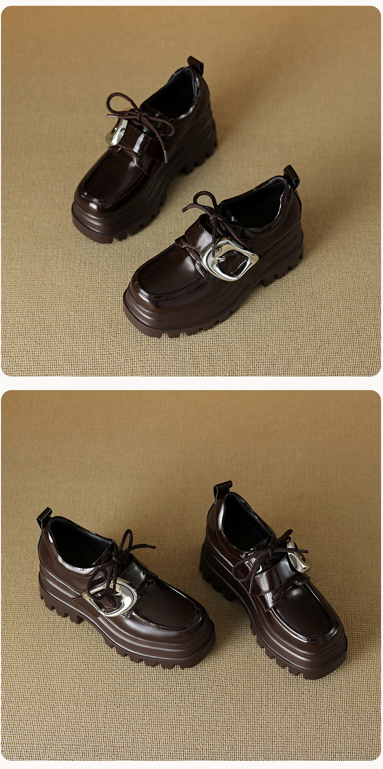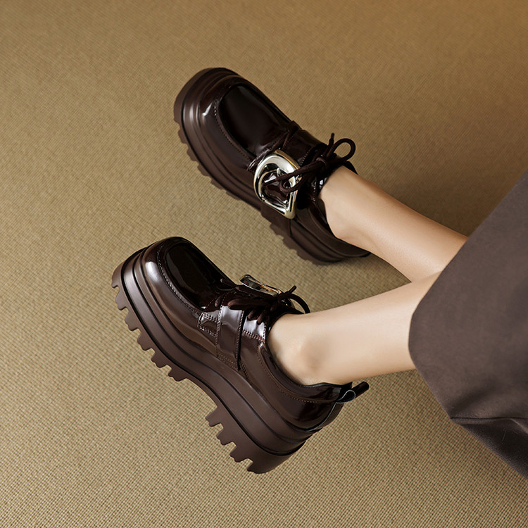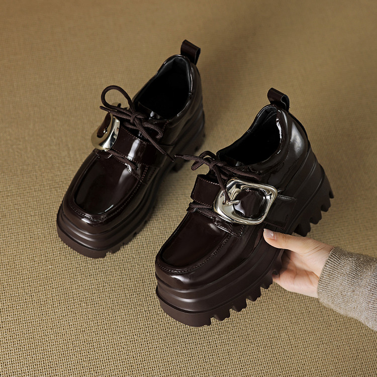 【预售5天】真皮厚底增高小皮鞋女新款爆款复古乐福鞋英伦风系带皮带扣女单鞋MQE&G144-1