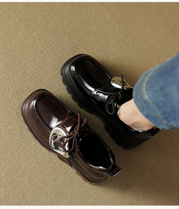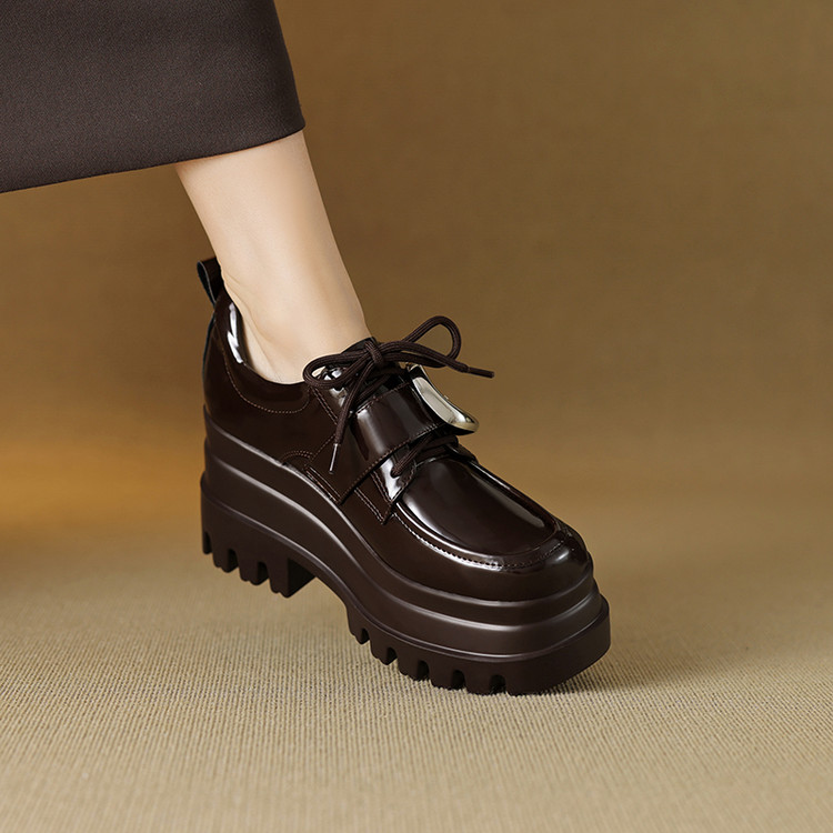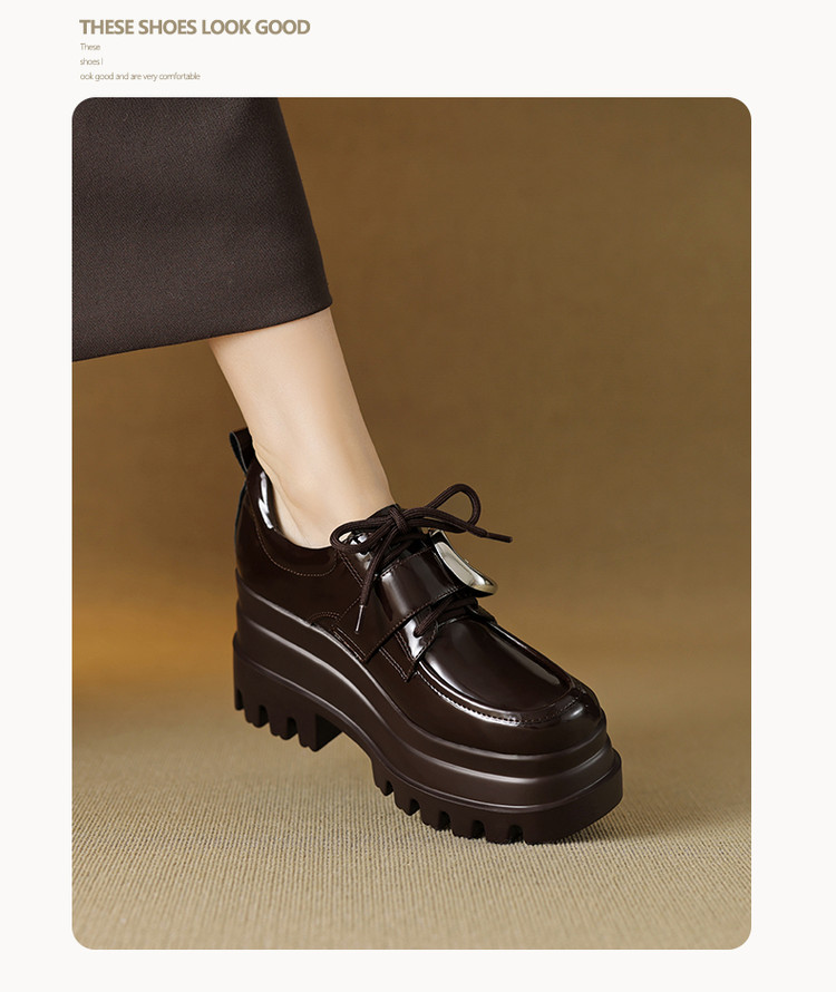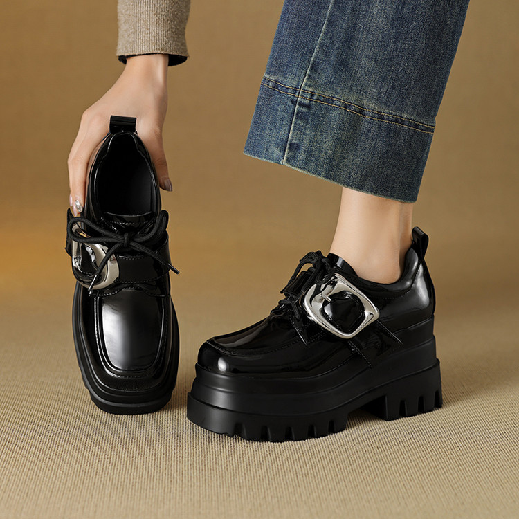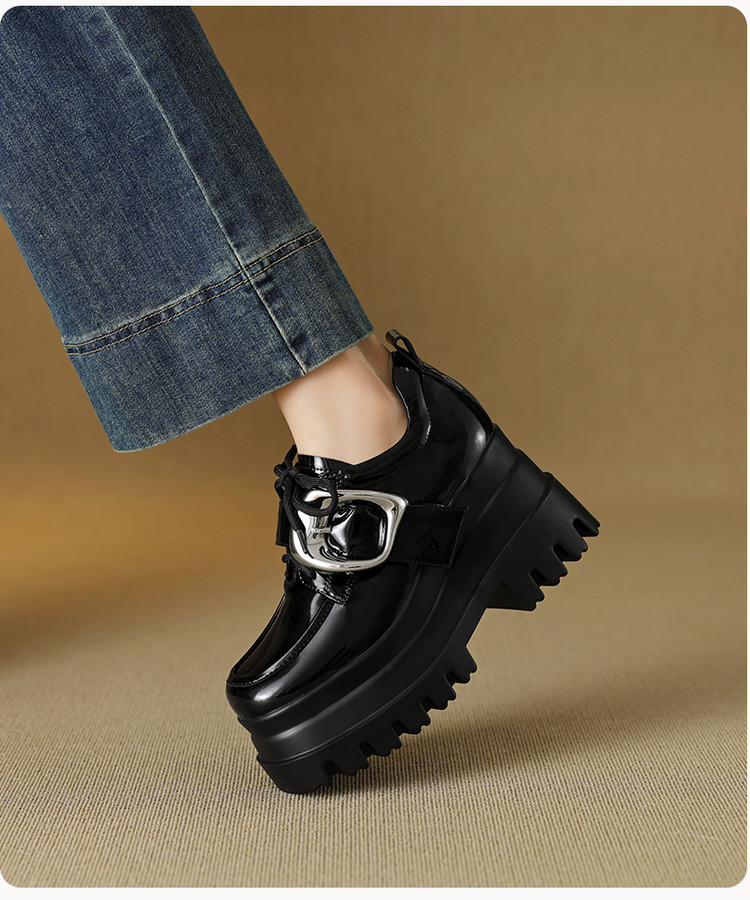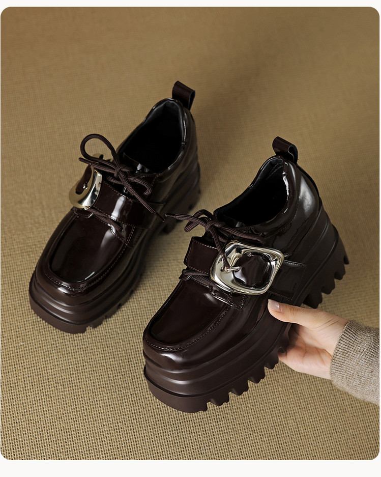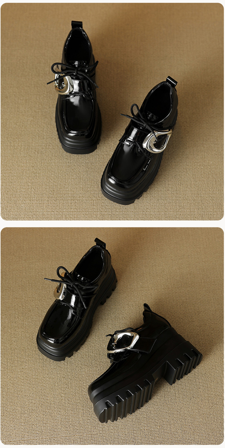 【预售5天】真皮厚底增高小皮鞋女新款爆款复古乐福鞋英伦风系带皮带扣女单鞋MQE&G144-1