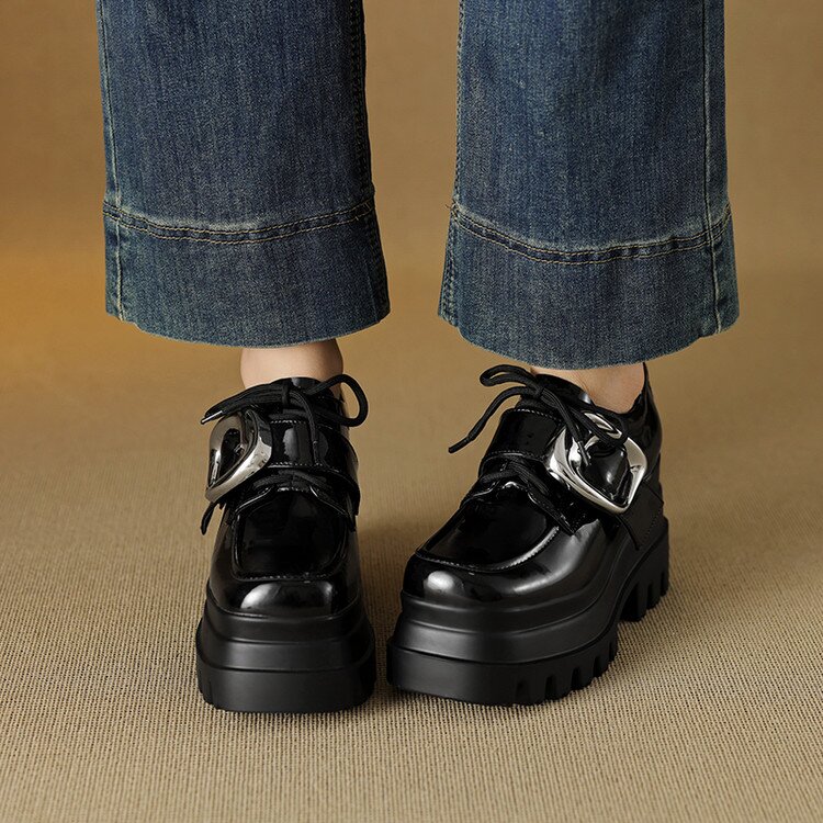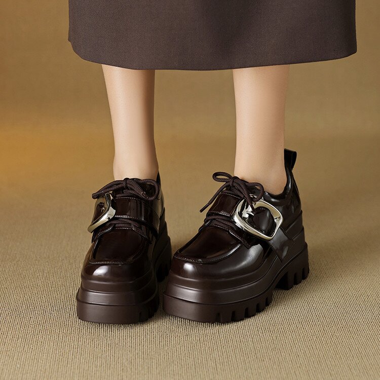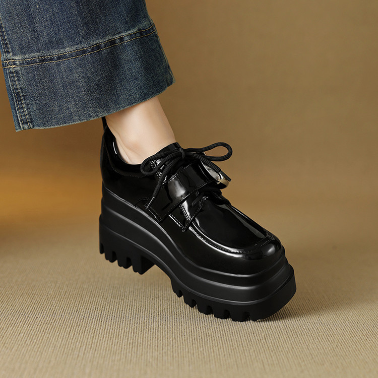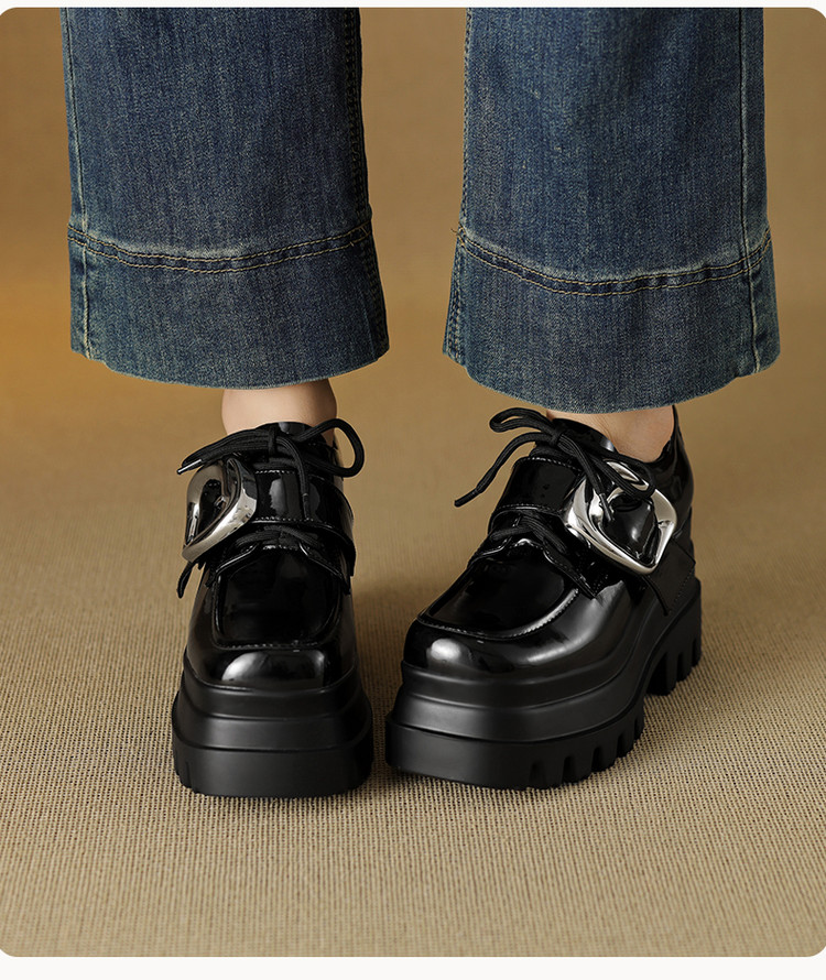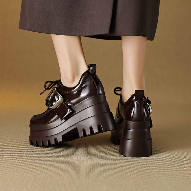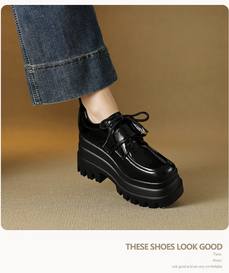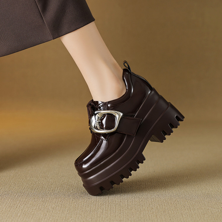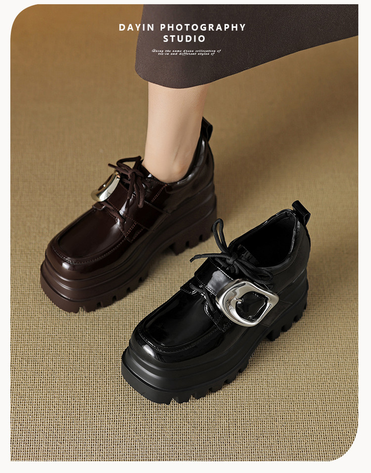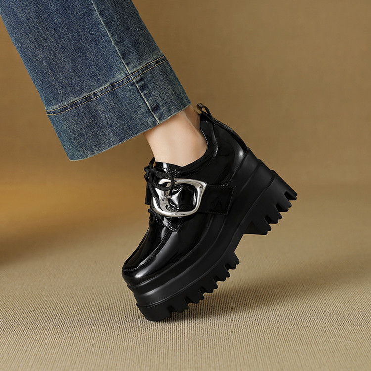 【预售5天】真皮厚底增高小皮鞋女新款爆款复古乐福鞋英伦风系带皮带扣女单鞋MQE&G144-1