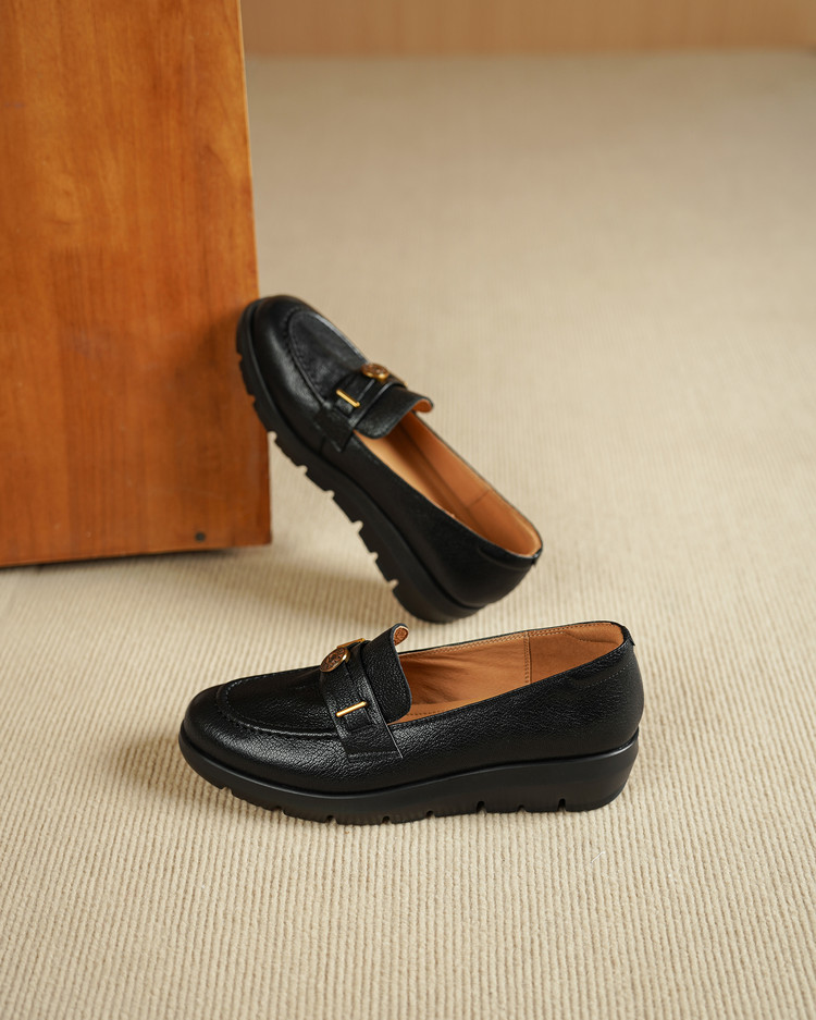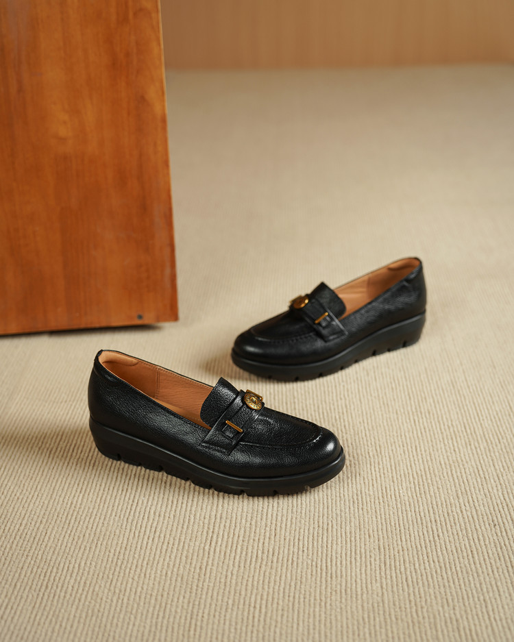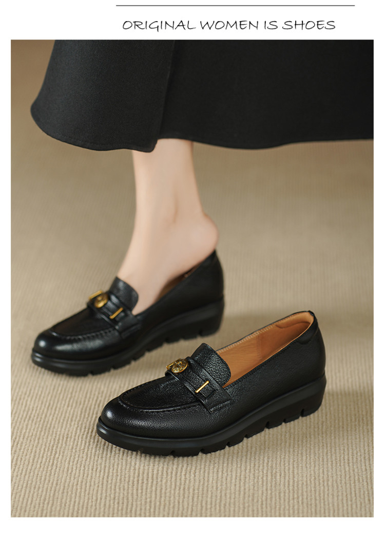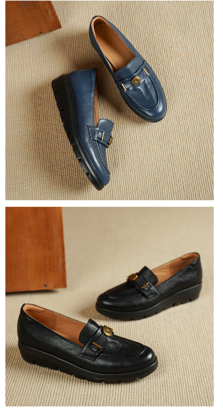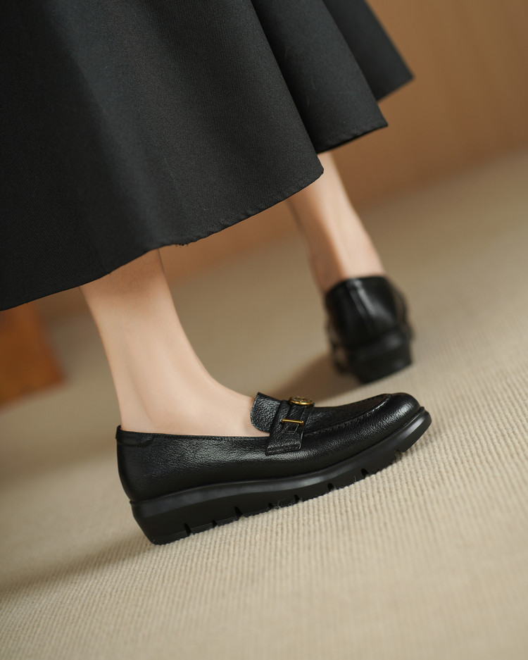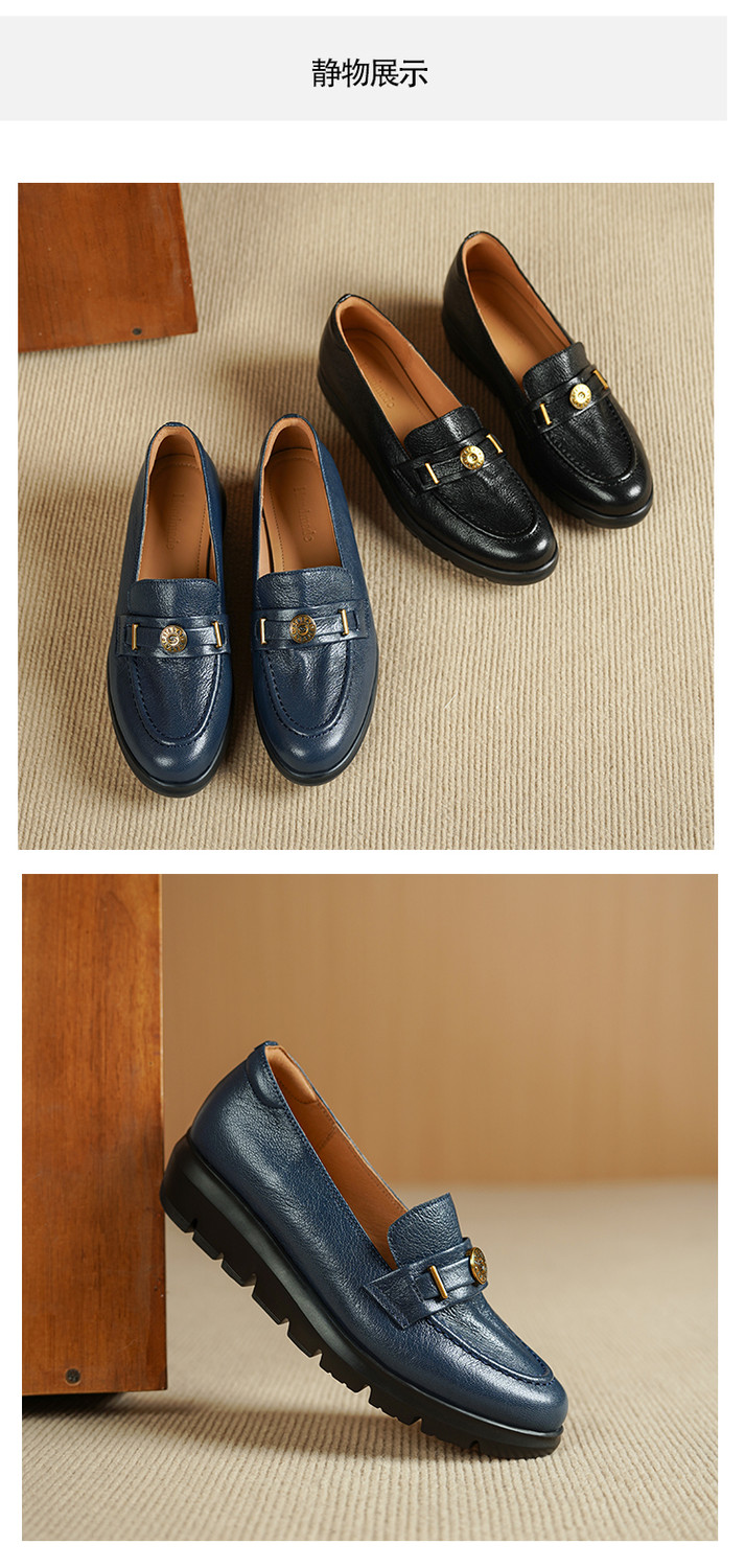 【预售5天】轻软!平底坡跟小皮鞋女春秋新款英伦黑色休闲厚底单鞋羊皮乐福鞋DTN&583-19