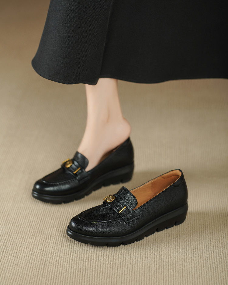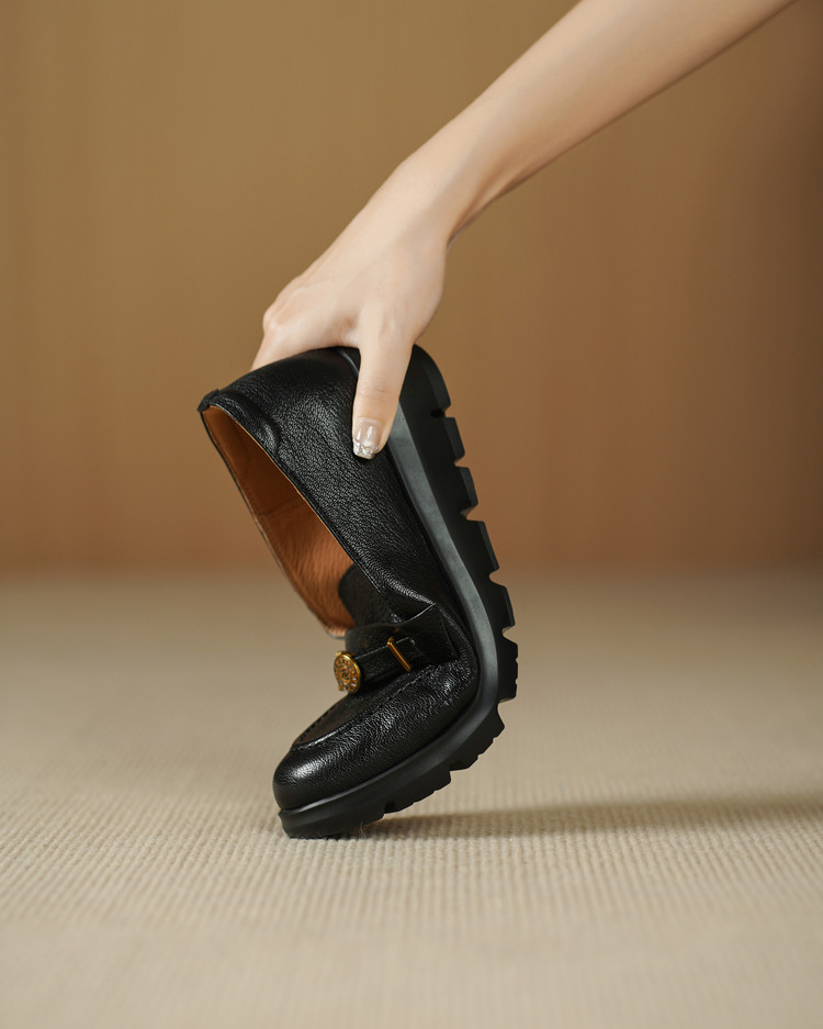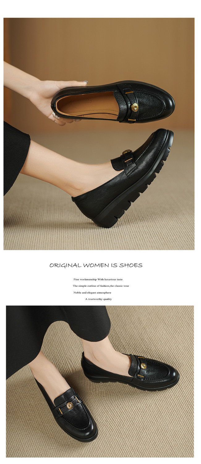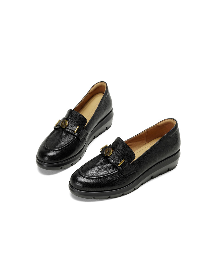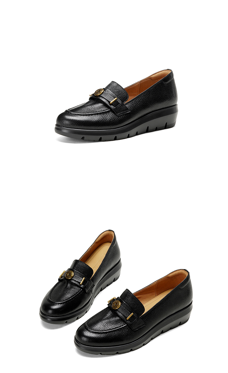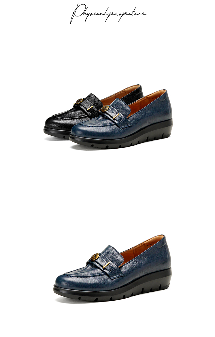 【预售5天】轻软!平底坡跟小皮鞋女春秋新款英伦黑色休闲厚底单鞋羊皮乐福鞋DTN&583-19