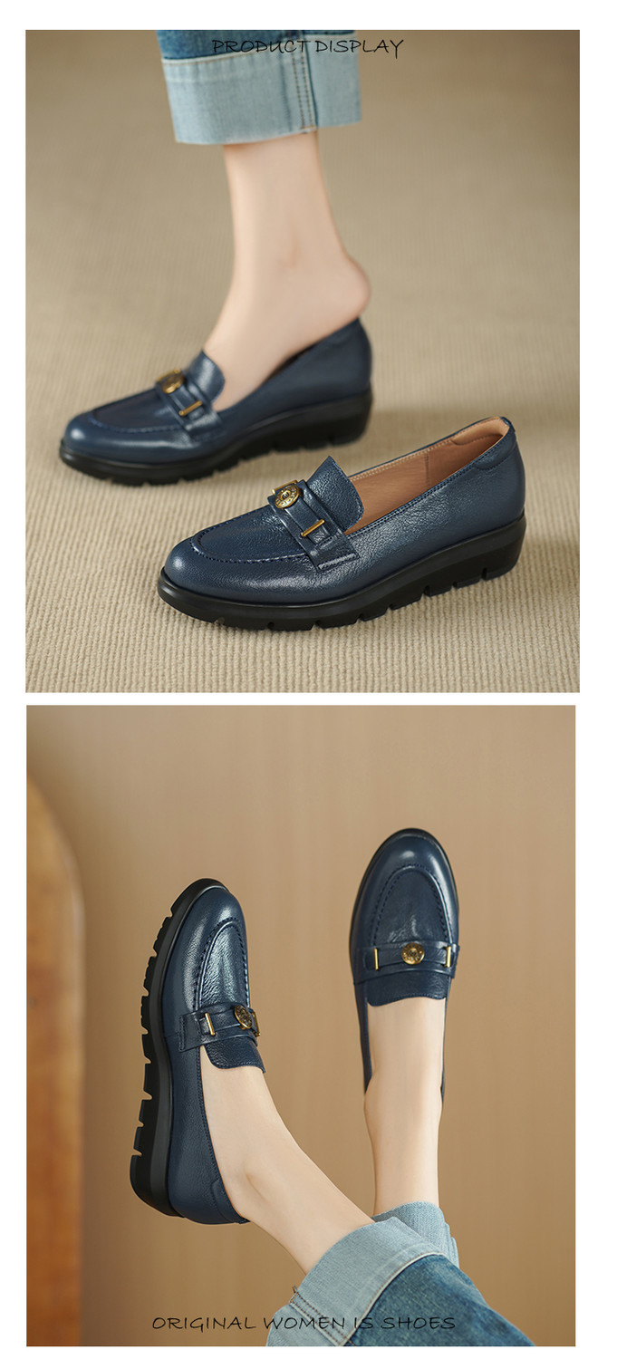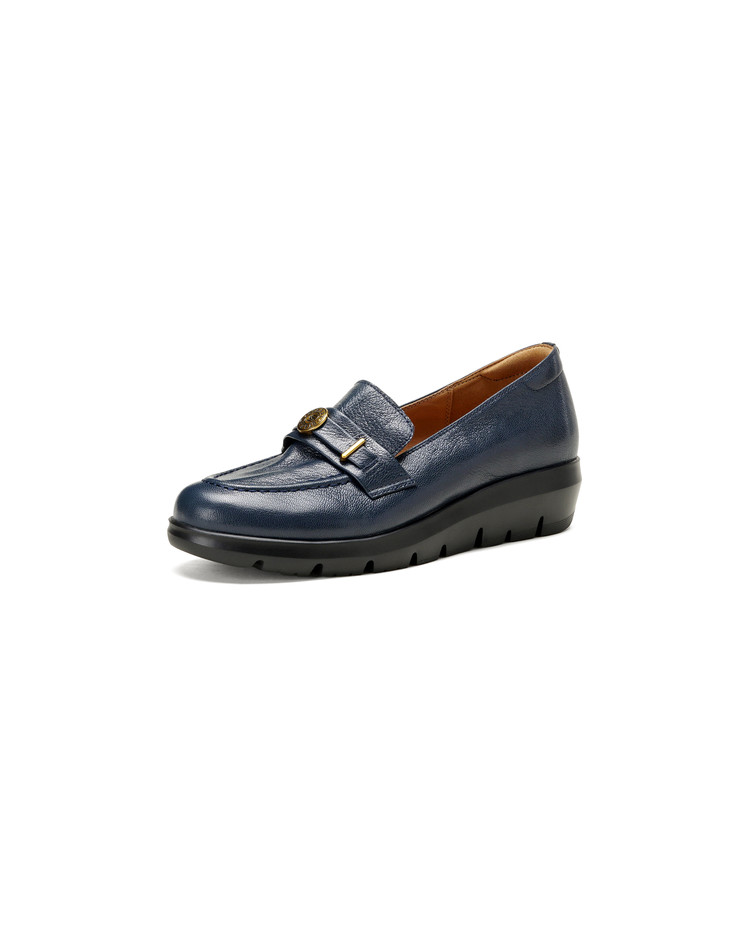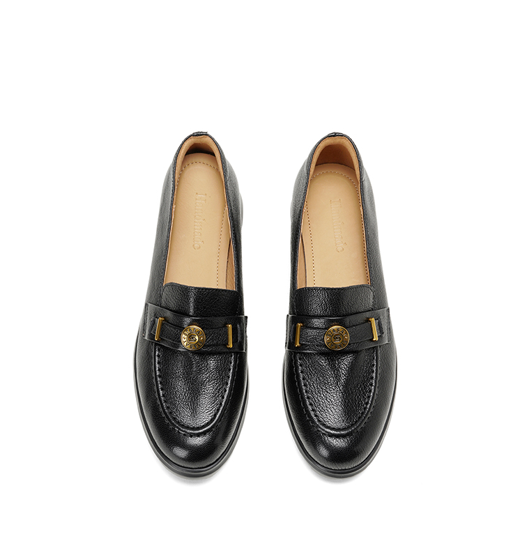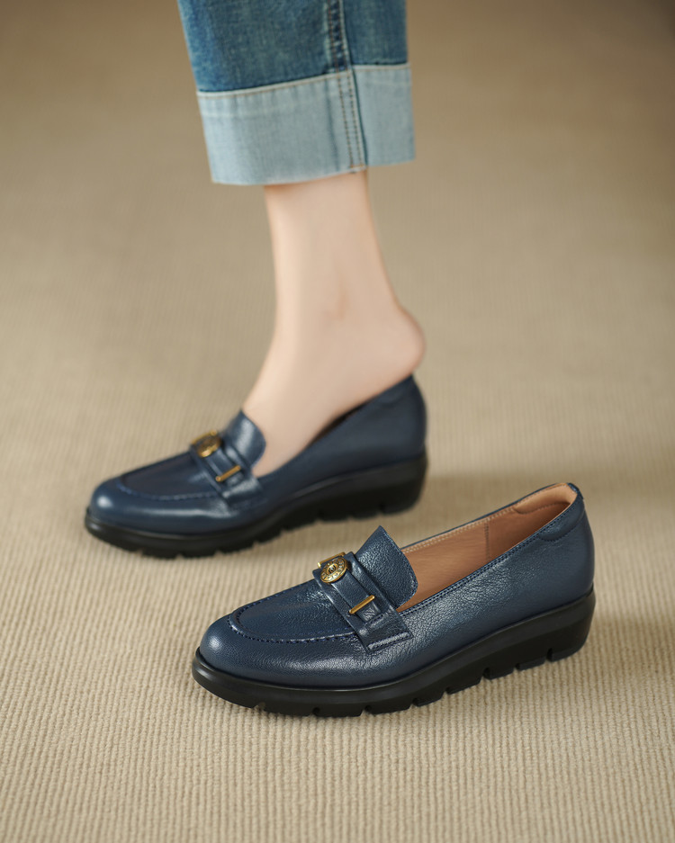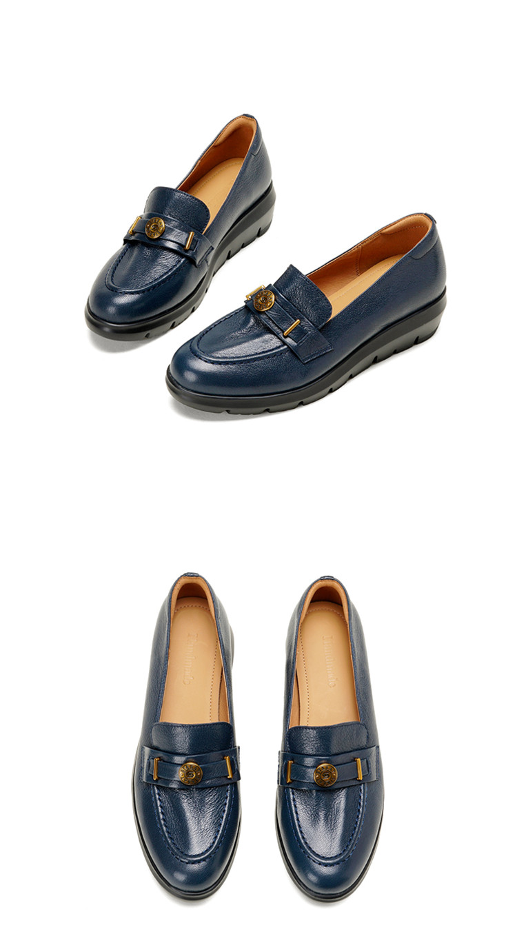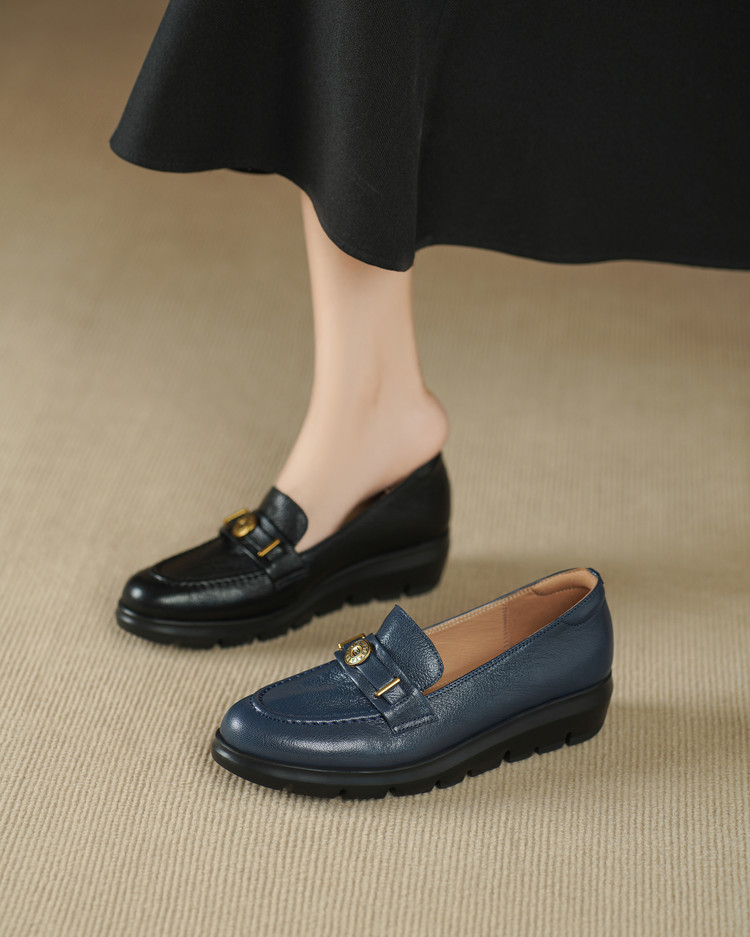 【预售5天】轻软!平底坡跟小皮鞋女春秋新款英伦黑色休闲厚底单鞋羊皮乐福鞋DTN&583-19