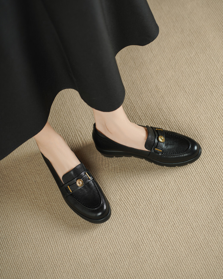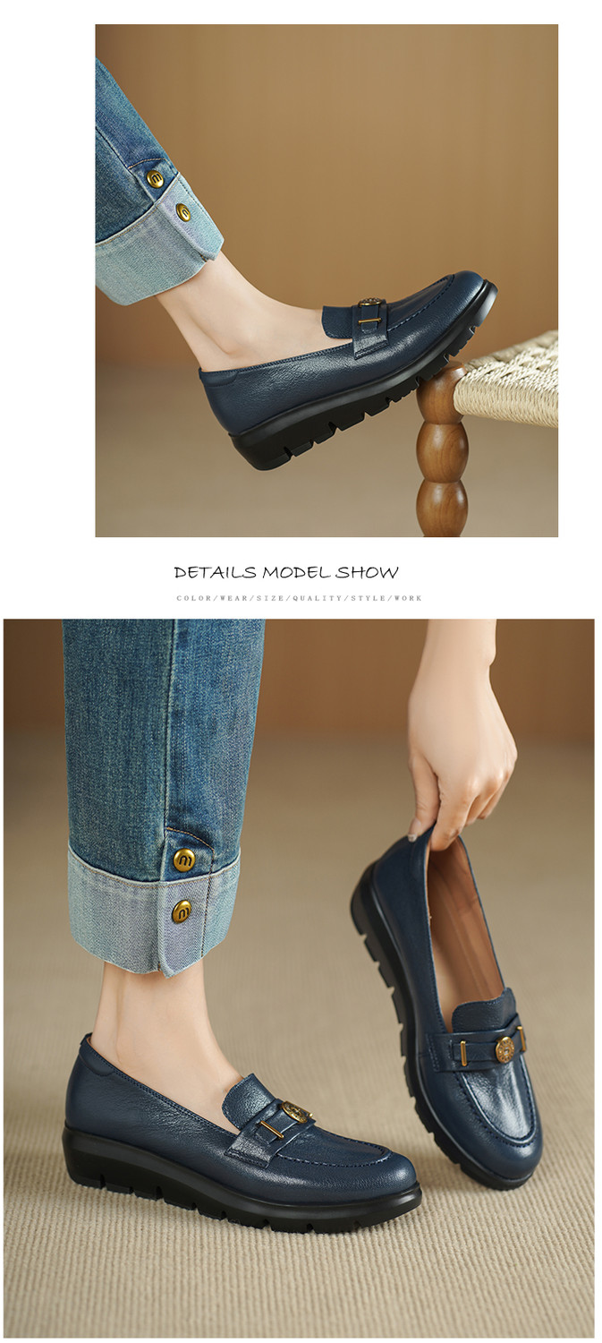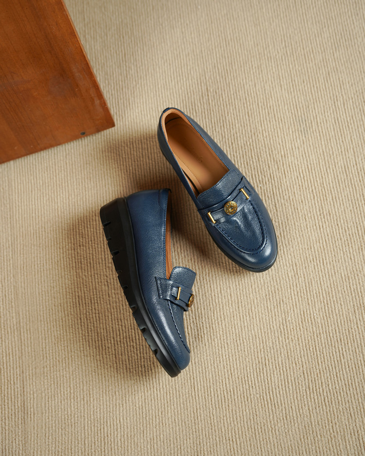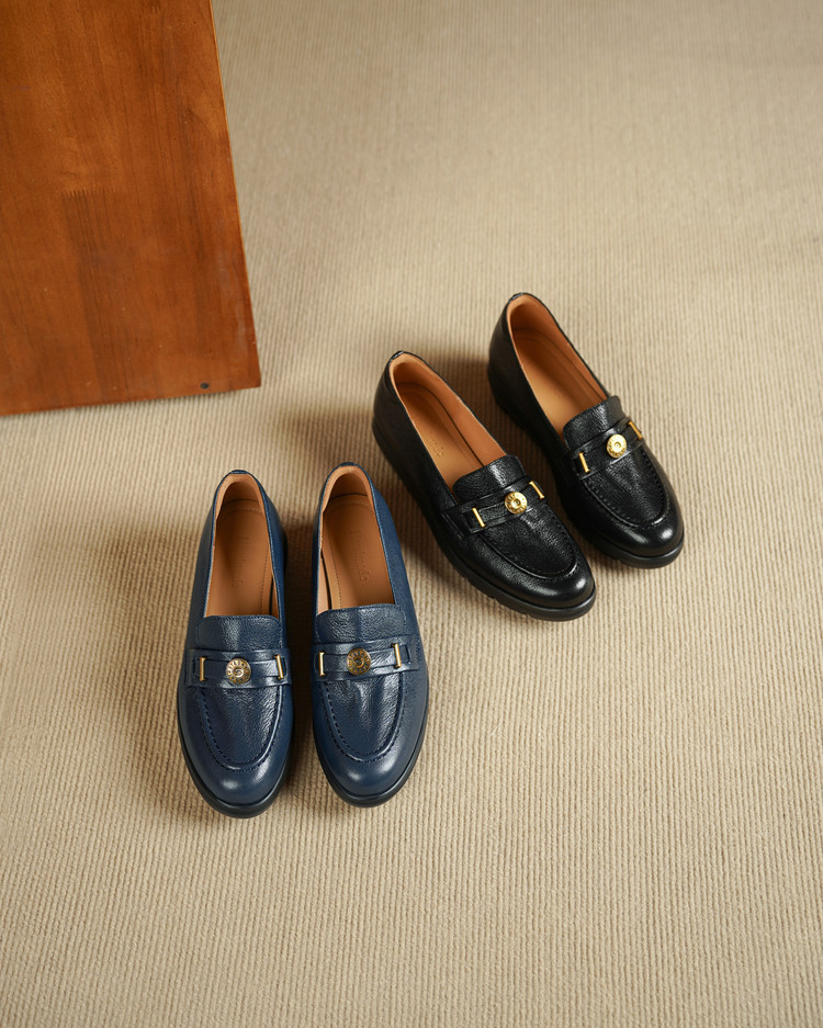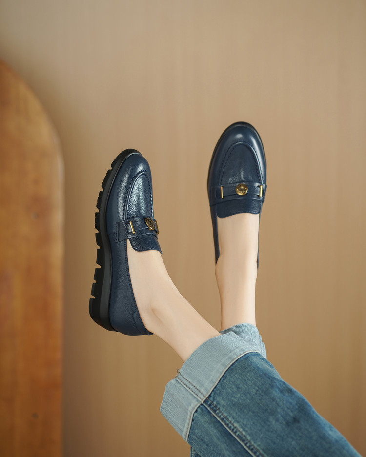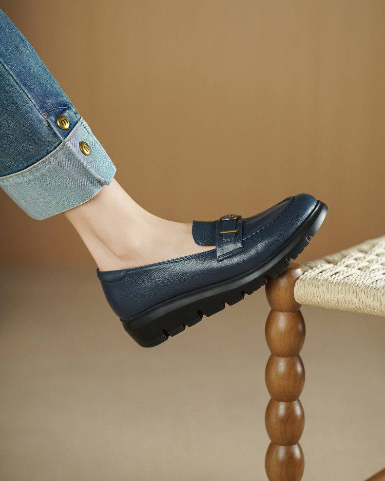 【预售5天】轻软!平底坡跟小皮鞋女春秋新款英伦黑色休闲厚底单鞋羊皮乐福鞋DTN&583-19