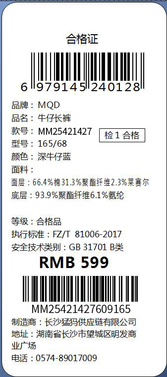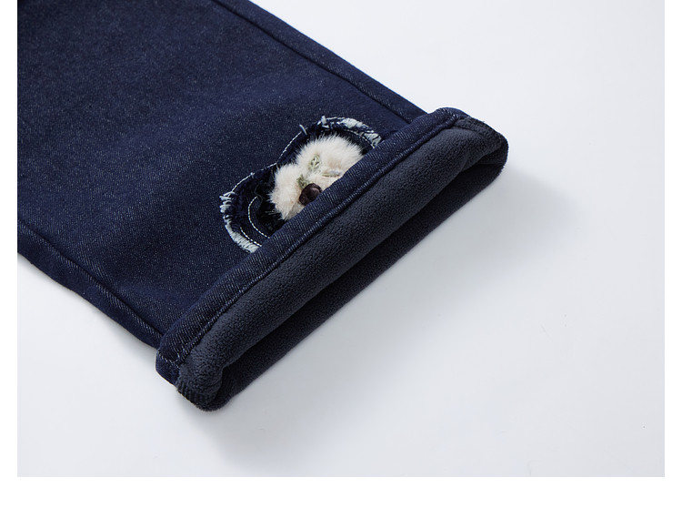 【MQD】童装女大童冬新款儿童甜美可爱加绒加厚保暖直筒长裤牛仔裤