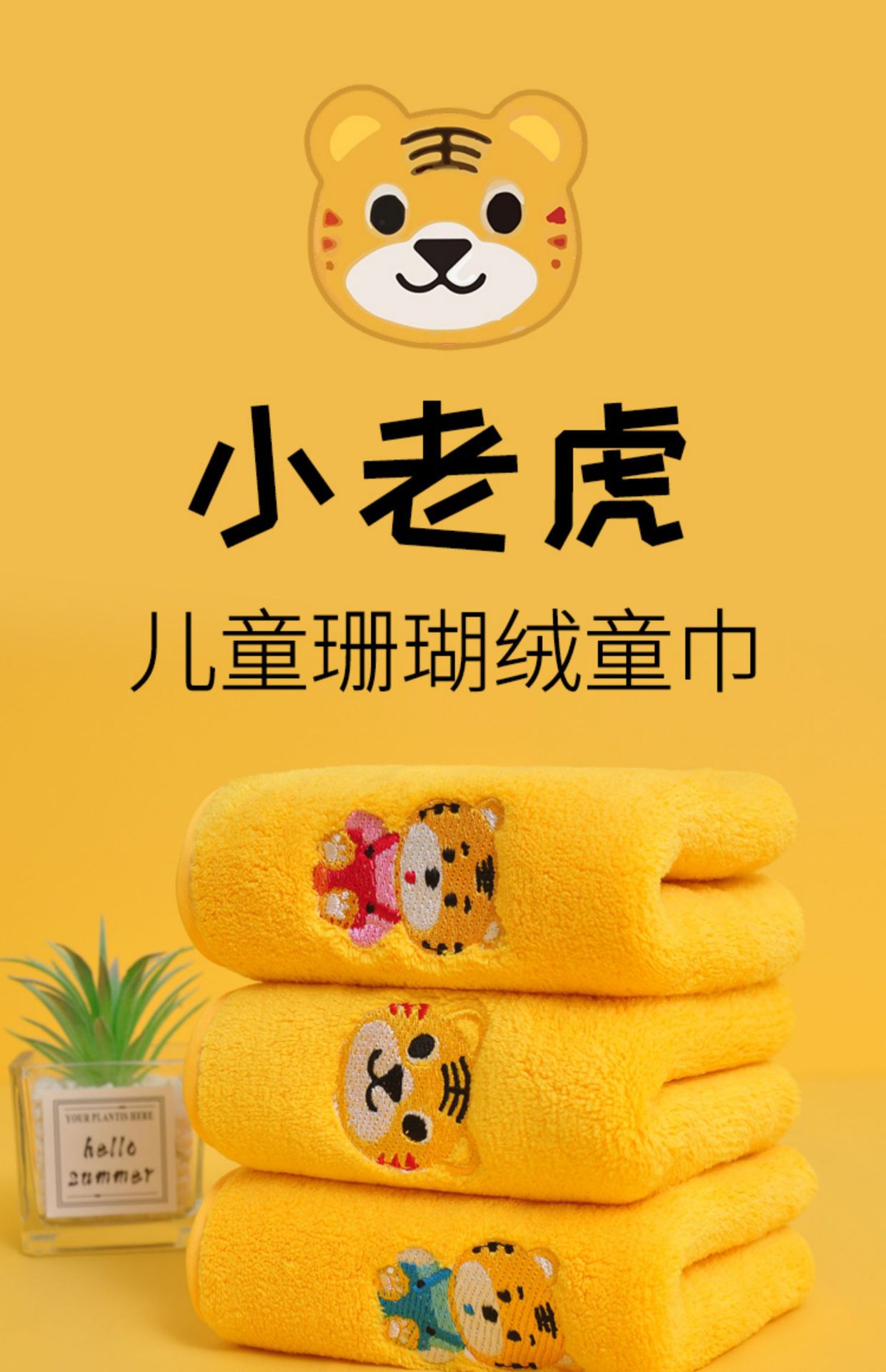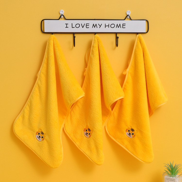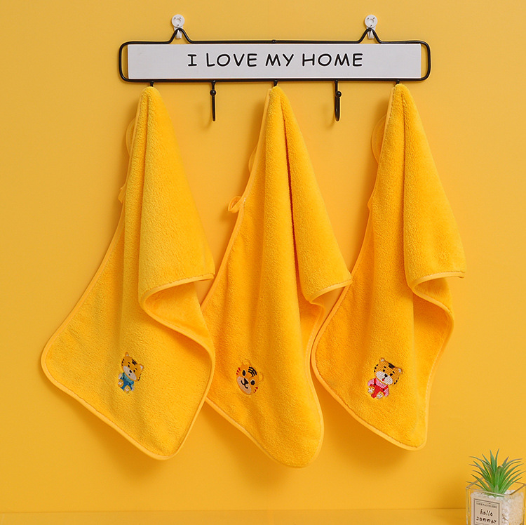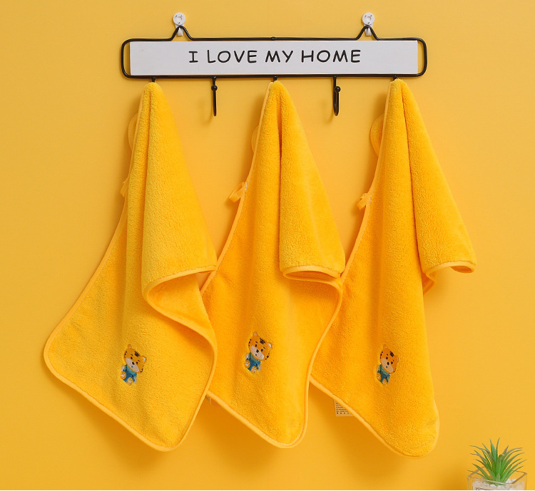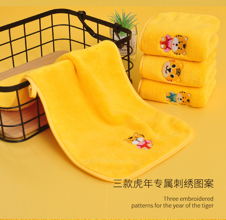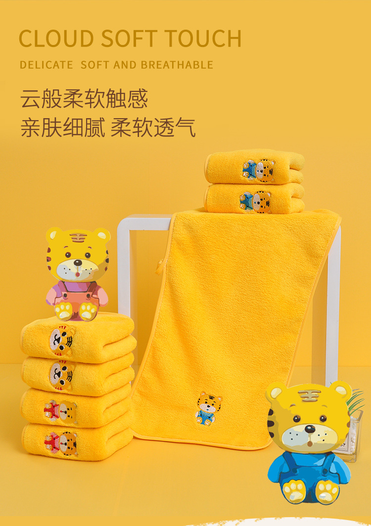 星罗工厂3条装儿童毛巾小老虎珊瑚绒童巾面巾家用宝宝洗澡洗头柔软吸水