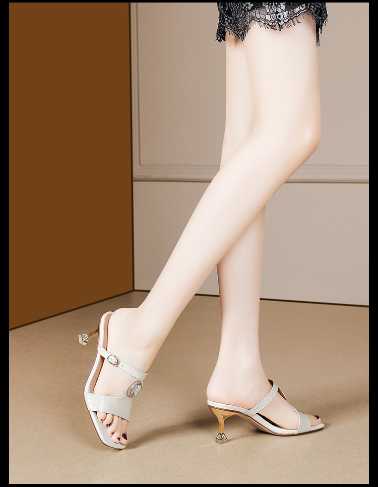 高跟凉拖鞋,真皮外穿时尚细跟新款百搭凉鞋PLGZ-D109-3