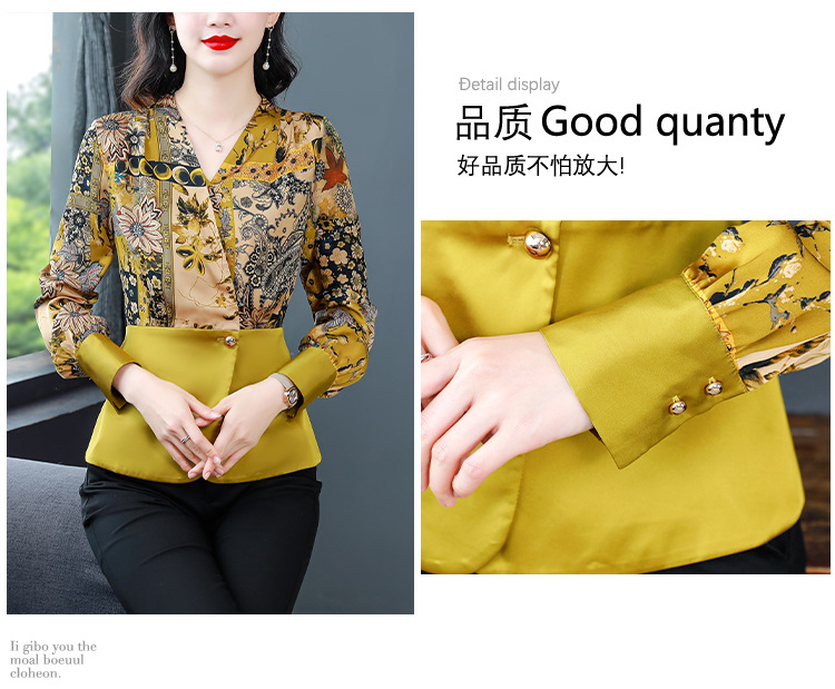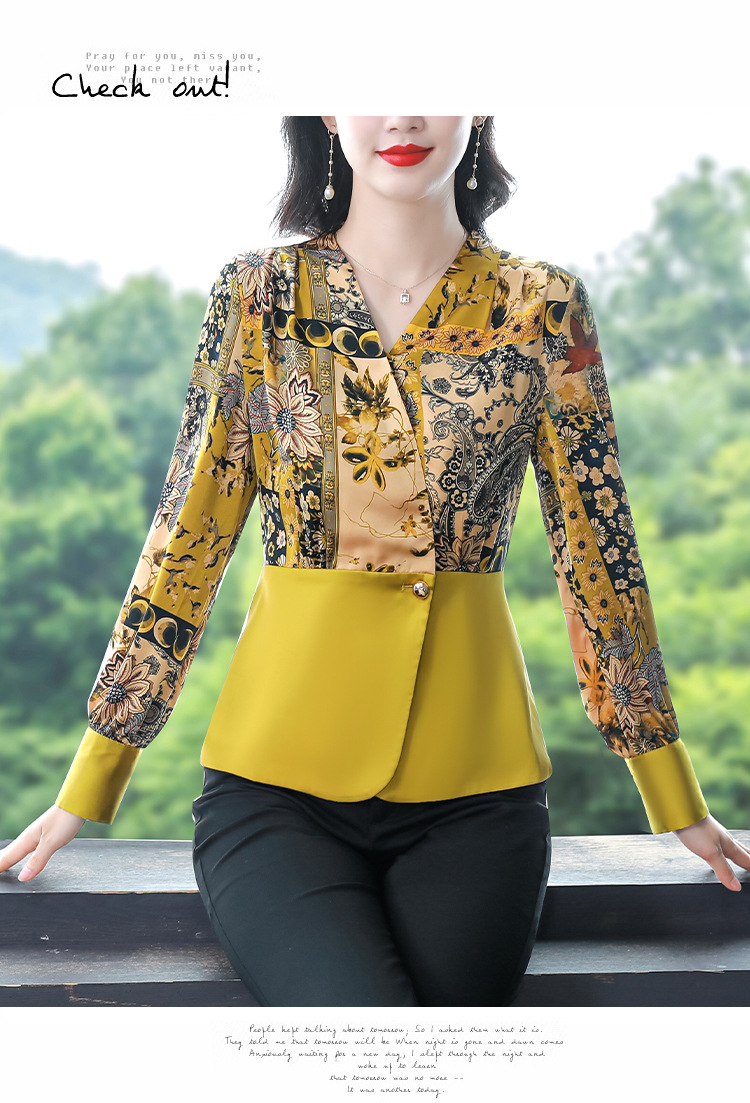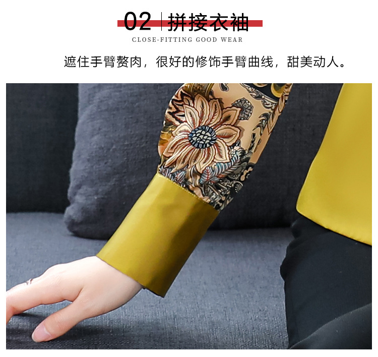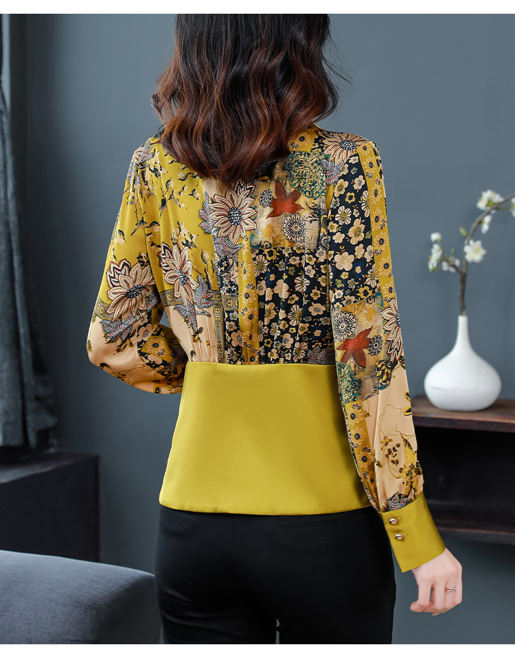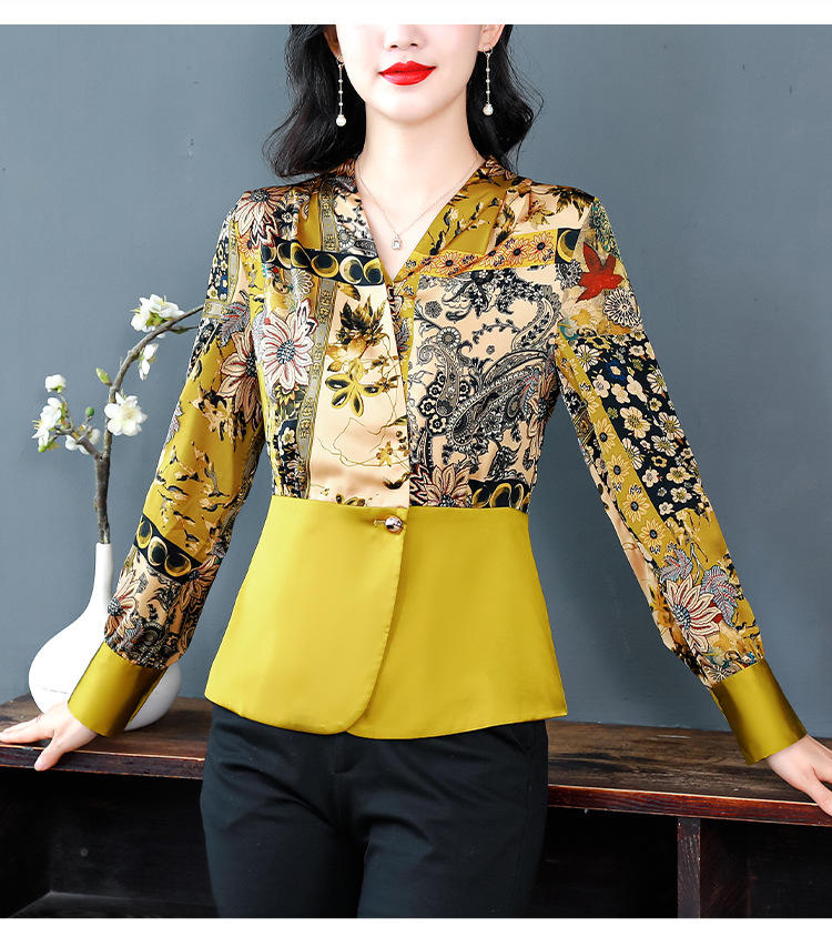 缎面印花衬衫气质西装领收腰显瘦上衣K-A83N6918