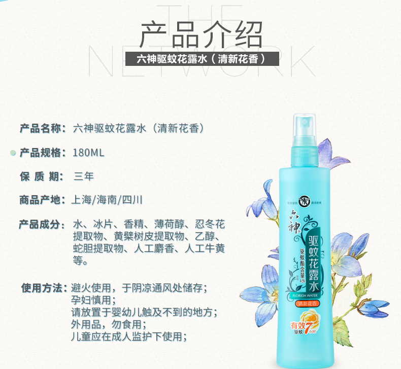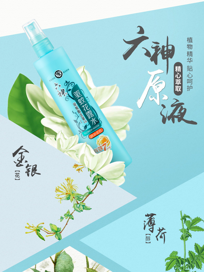 【品牌直发】六神180ml喷雾花露水驱蚊止痒劲凉薄荷冰莲持久驱蚊止痒防蚊清香批发