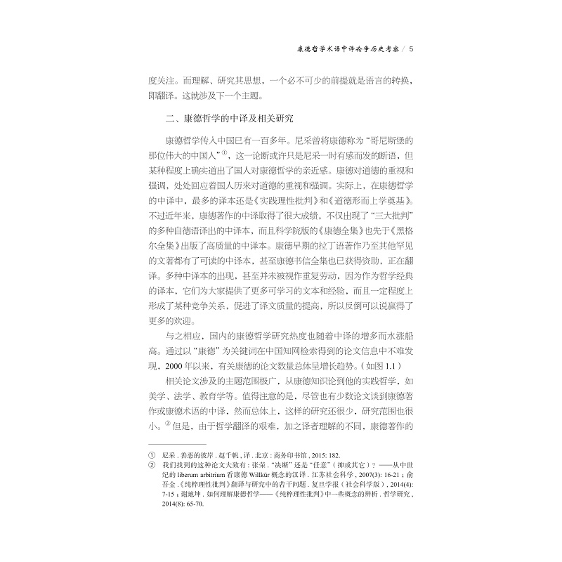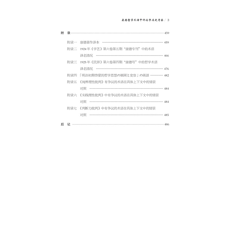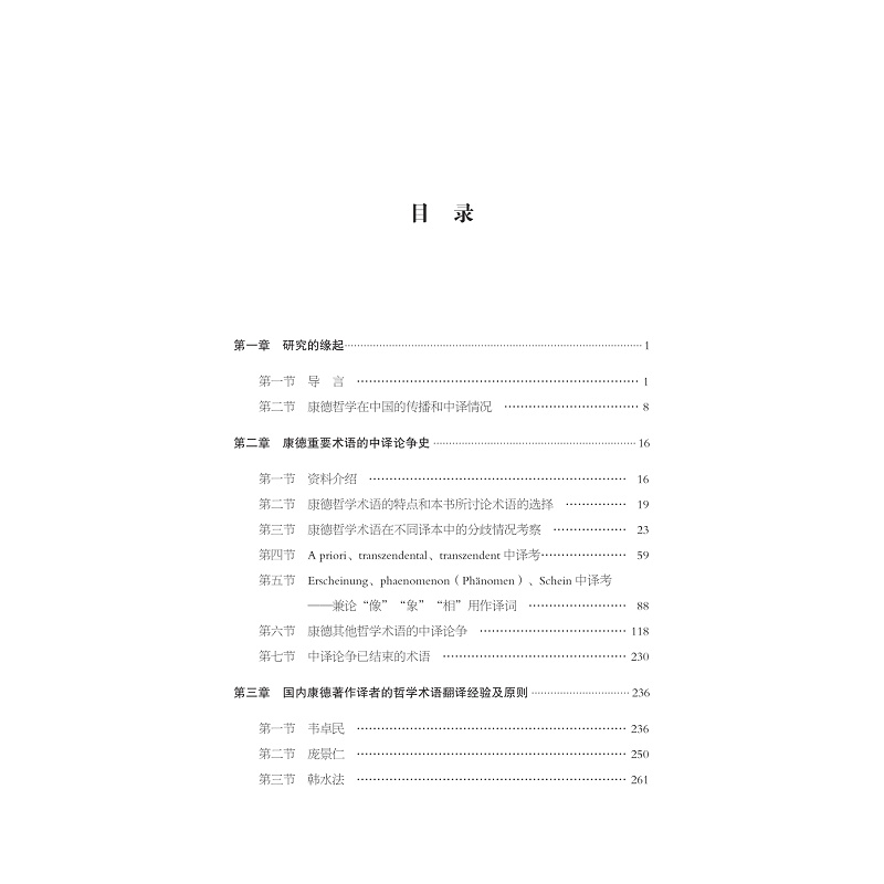 本书是国家社科基金项目《康德哲学术语中译论争历史考察》(12XZX013)的结项成果(结项等级为优秀),作者在书中首先对康德哲学思想术语译名的分歧历史进行了详细地梳理,主要考察了:①中国(含港台地区)及日本康德著作译者(近 50余种不同译本)对康德主要哲学术语的译法的分歧;②中国(含港台地区)及日本康德研究者对康德主要哲学术语的译法的分歧及历史演变;③康德哲学思想术语在日本的译介和传播的情况。 在此基础上,作者进一步分析、探究了哲学术语翻译的困境、翻译方法及翻译原则,全面深入地揭示了康德哲学术语翻译的复杂