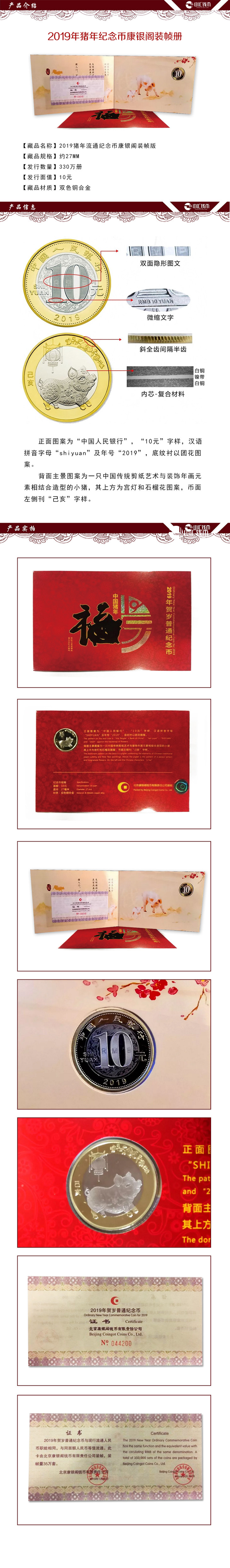 2019猪年生肖纪念币康银阁装帧卡币