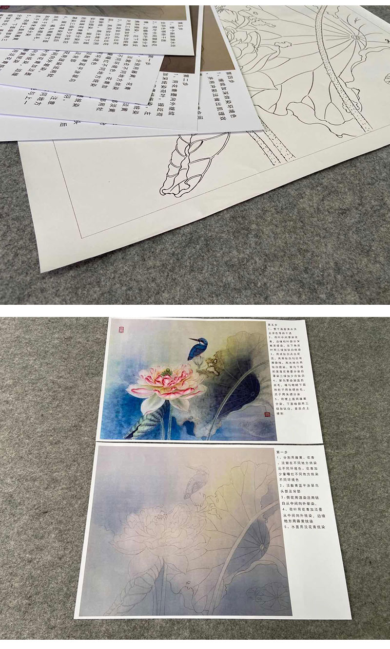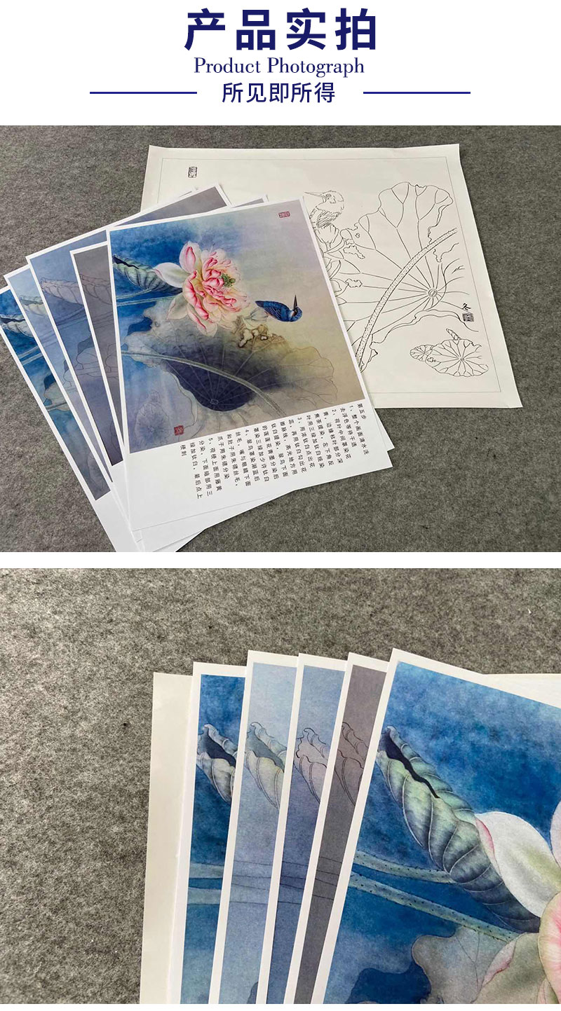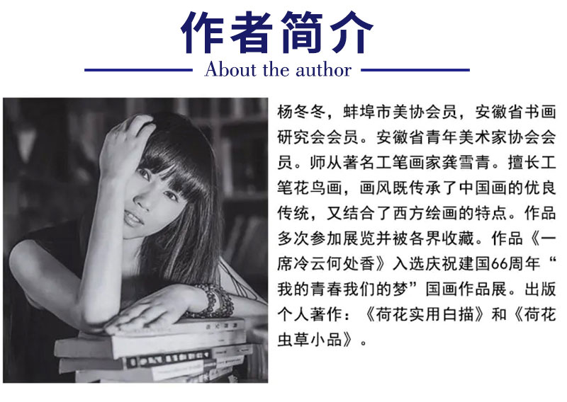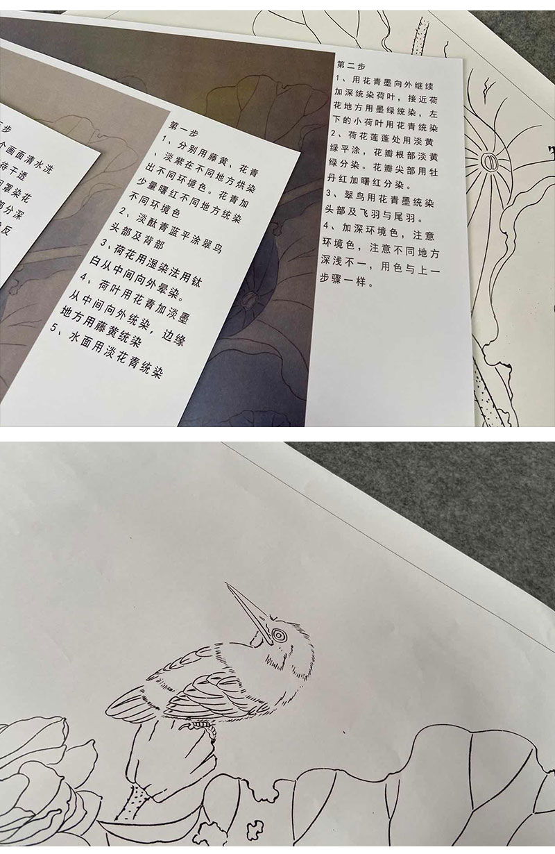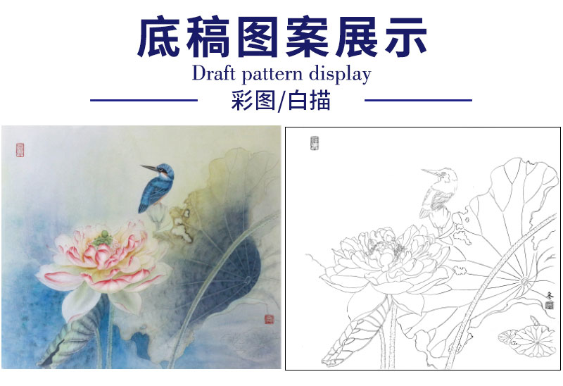 【有步骤、大彩图】杨冬冬工笔画白描底稿斗方小品《美目盼兮》荷花翠鸟初学者临摹花鸟线稿HD49