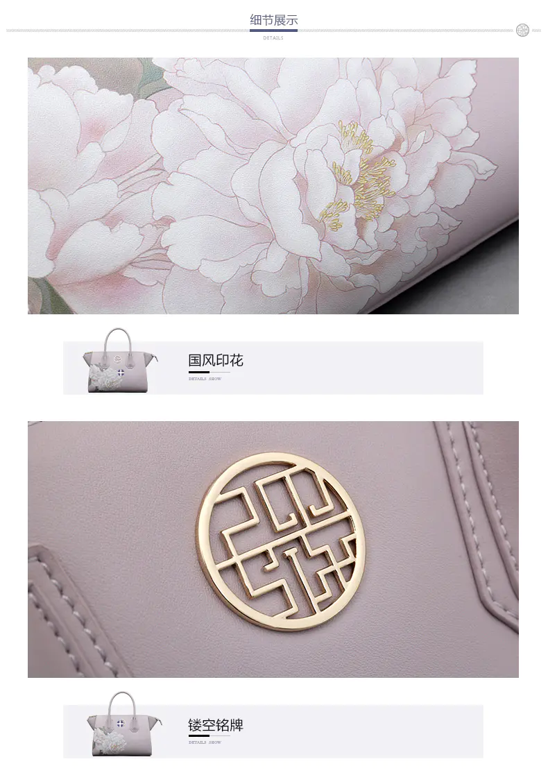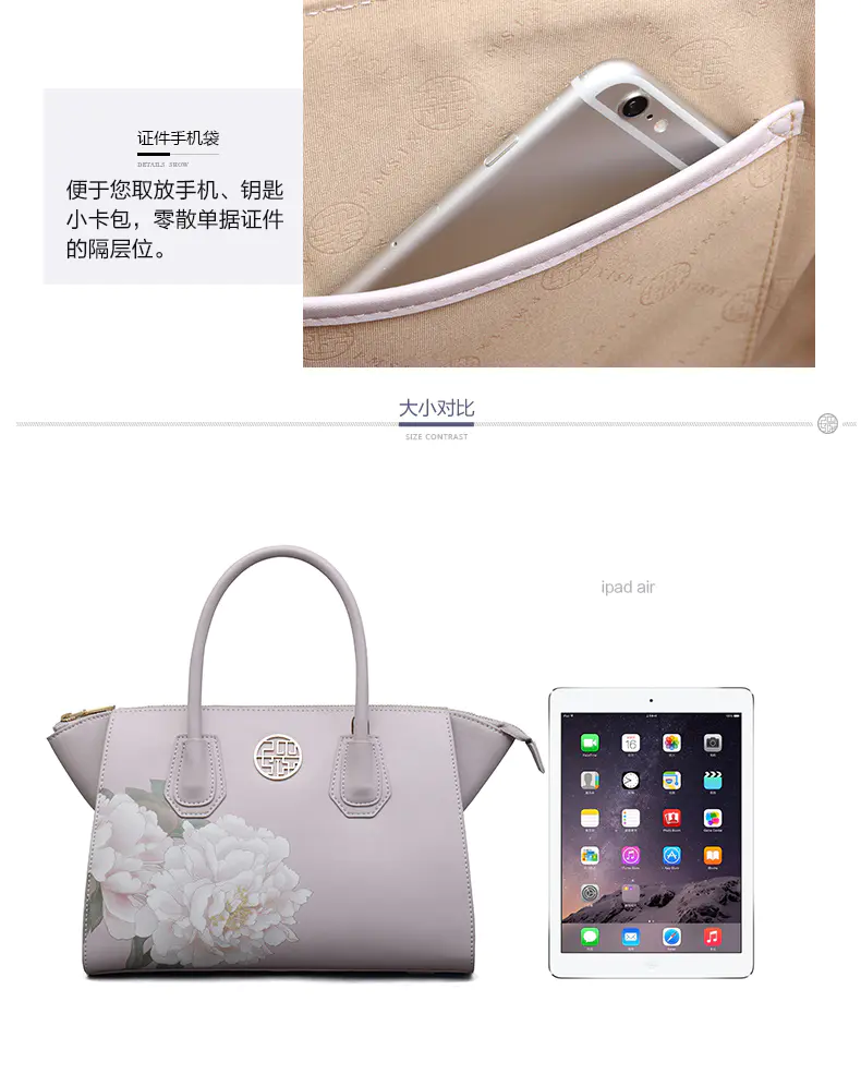 TX120050【白玉天香】高档印花牛皮手提包斜挎翅膀包