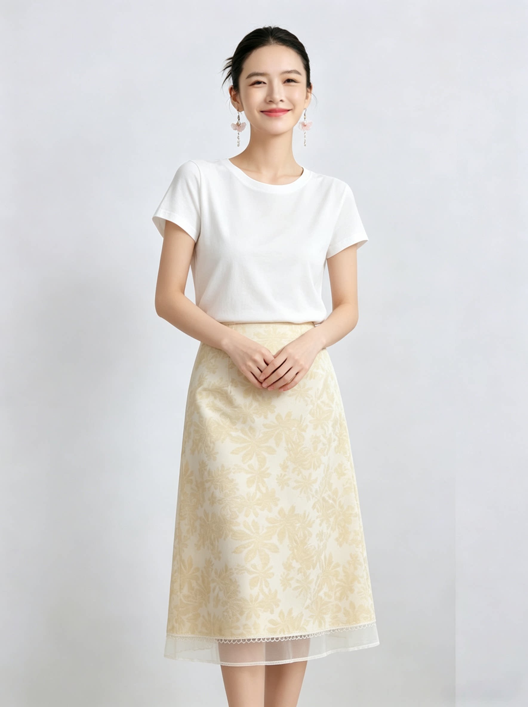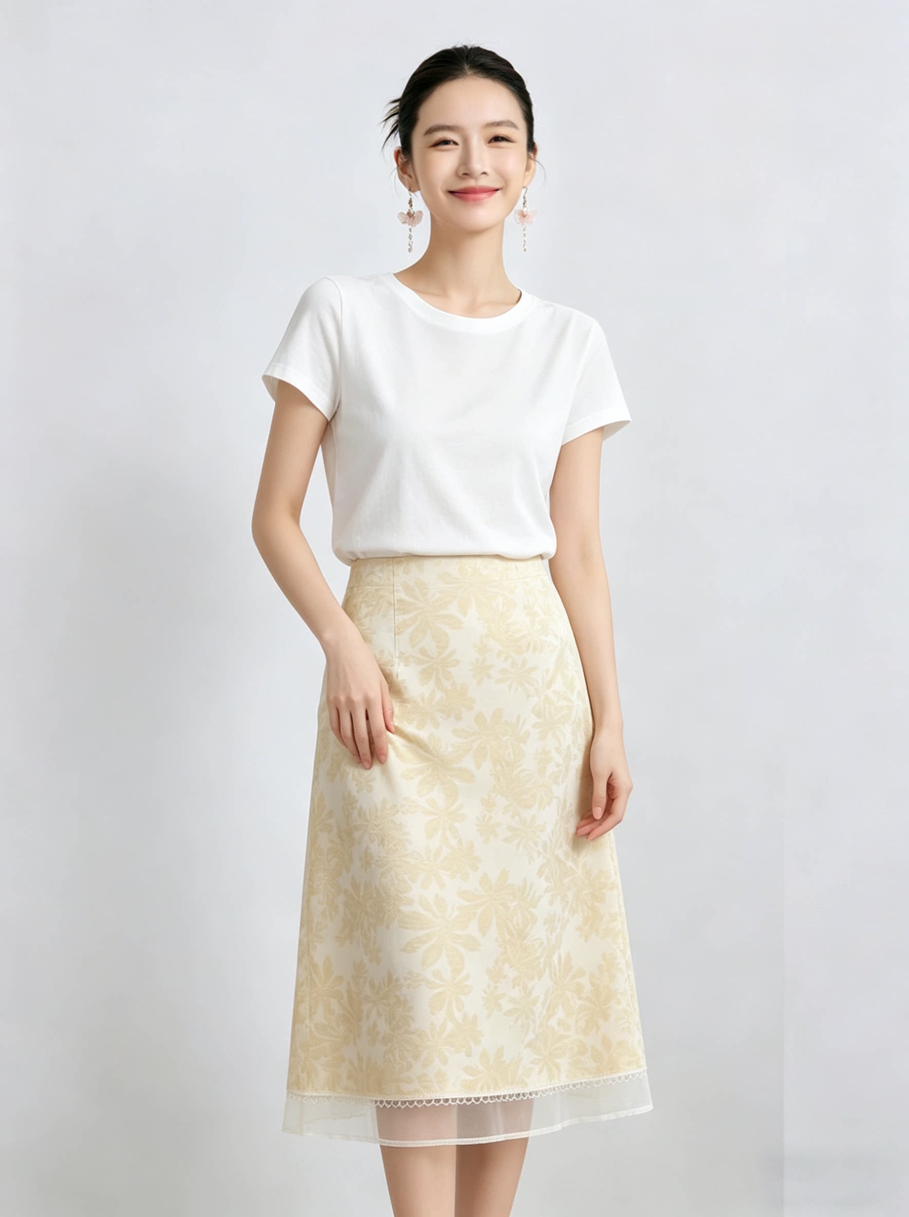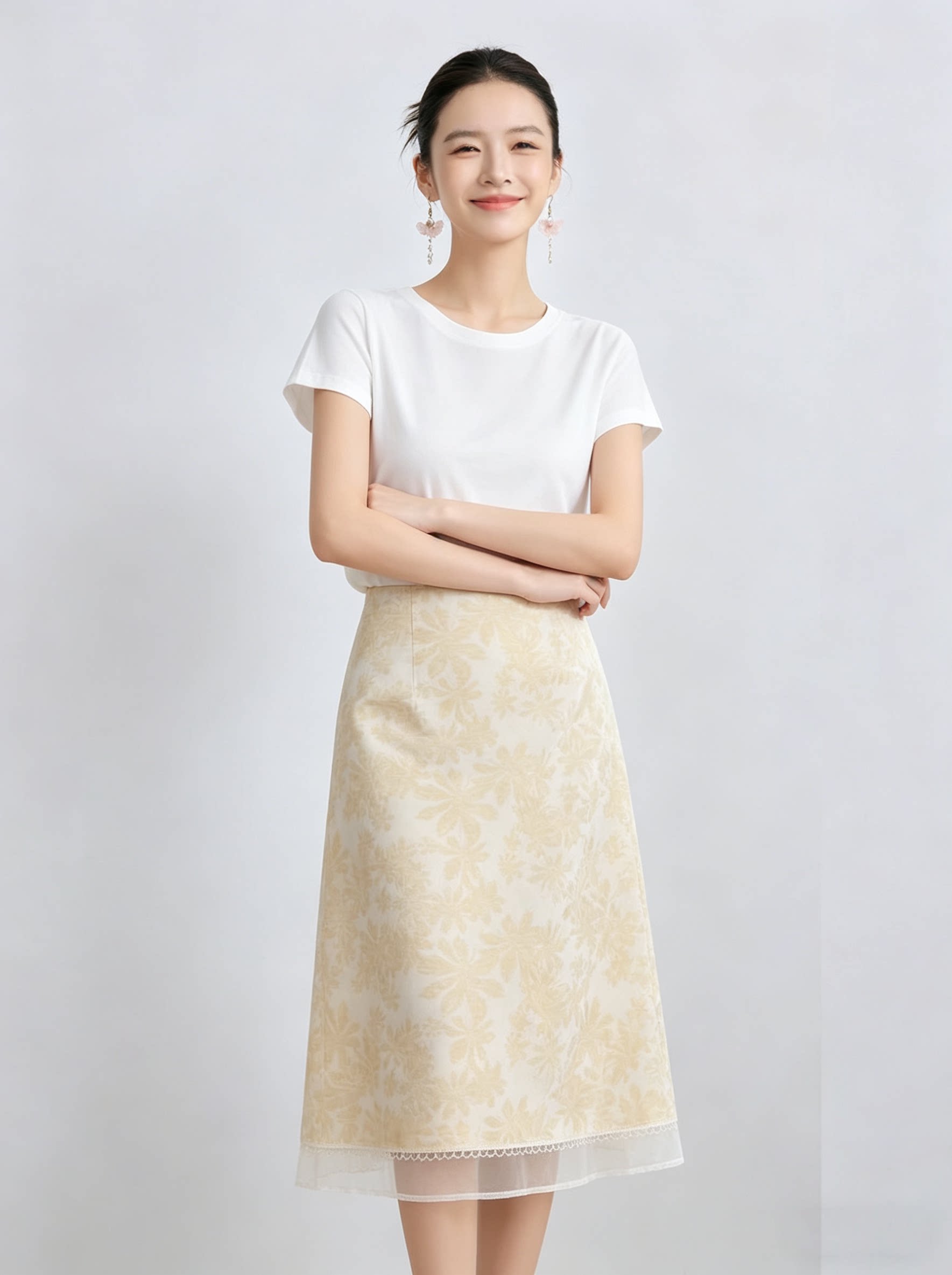 「自」全新升级【铂金会员192/天猫259/差价67】(11435)洛诗琳气质印花半身裙女2026新款高腰拼接网纱开叉A字裙