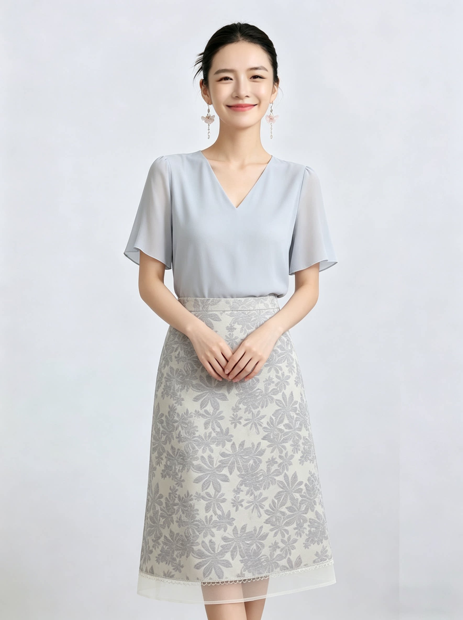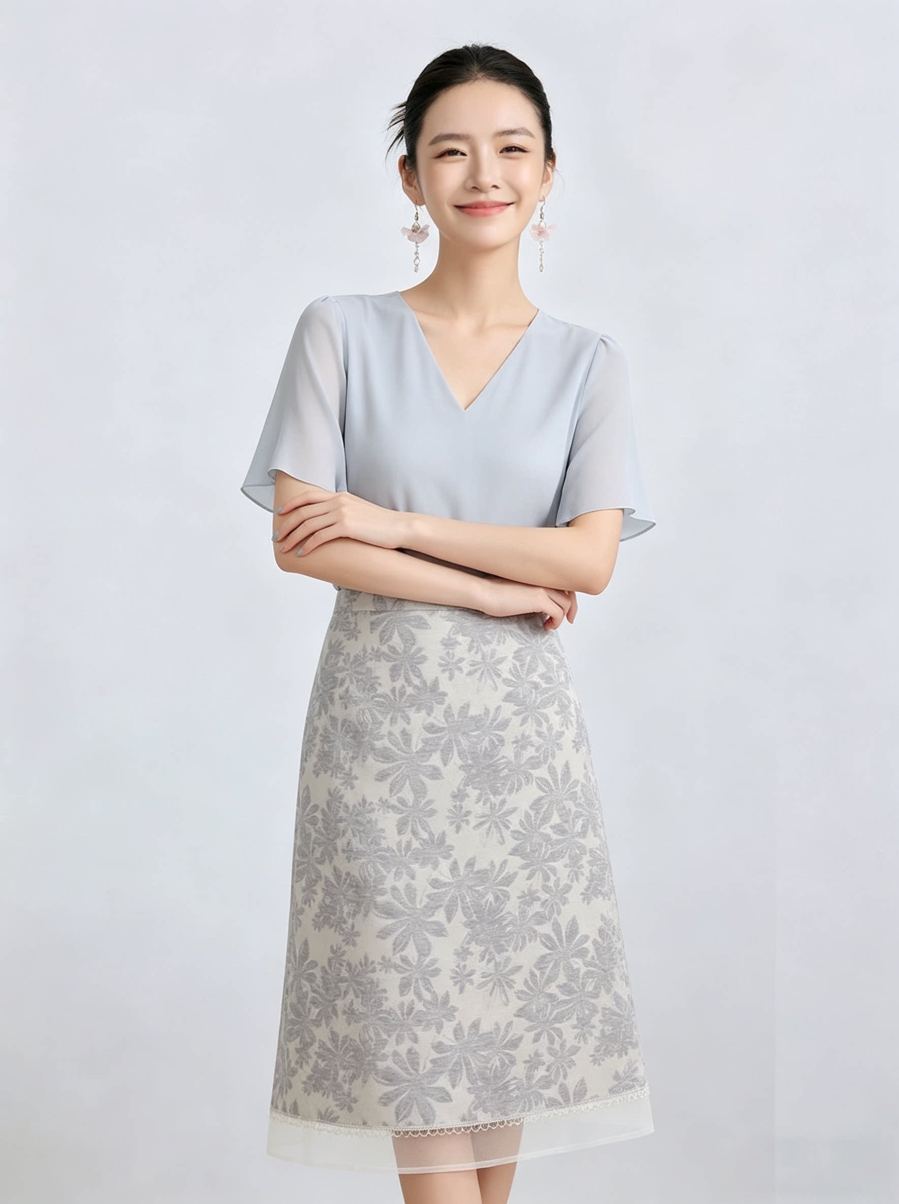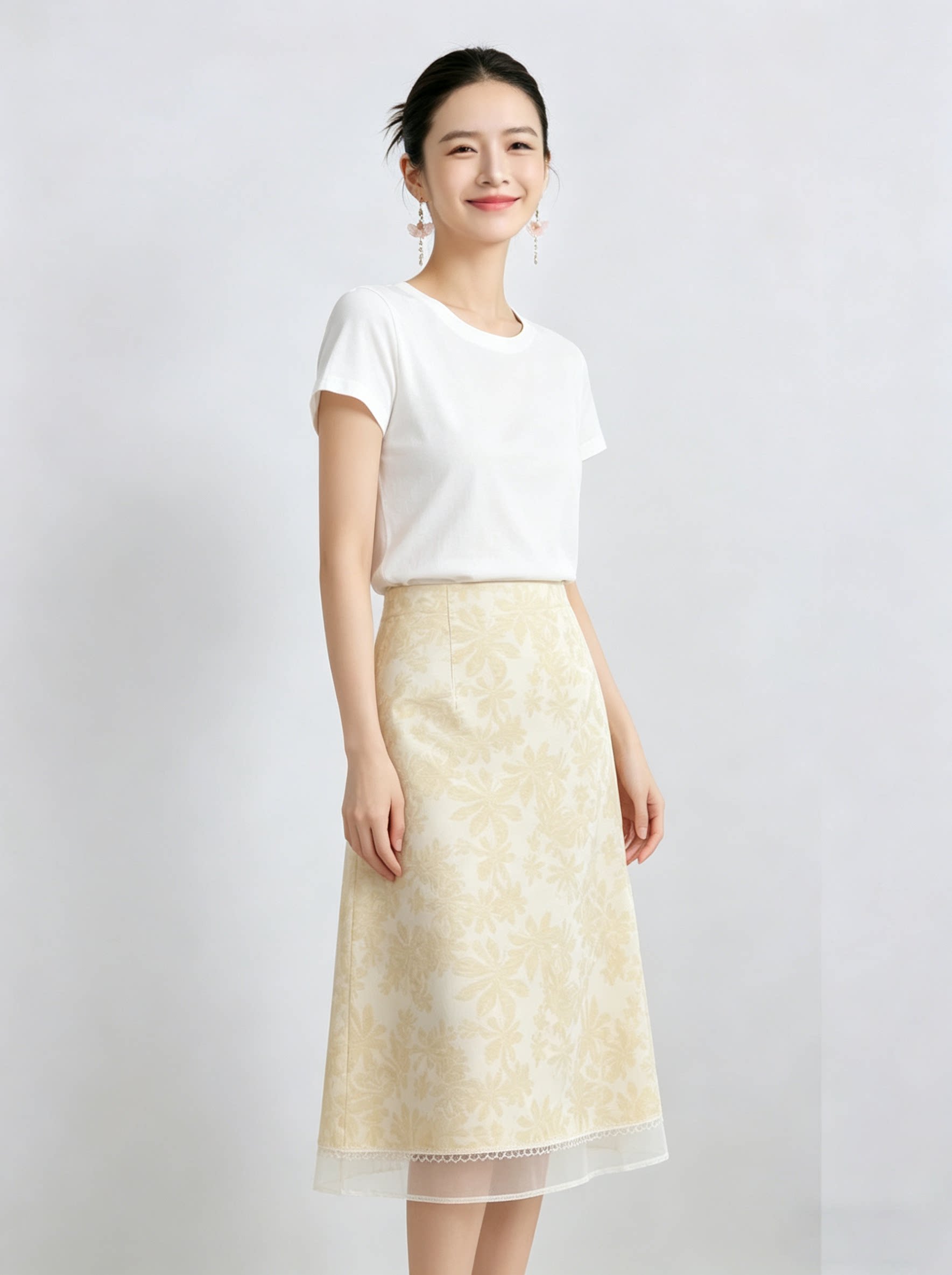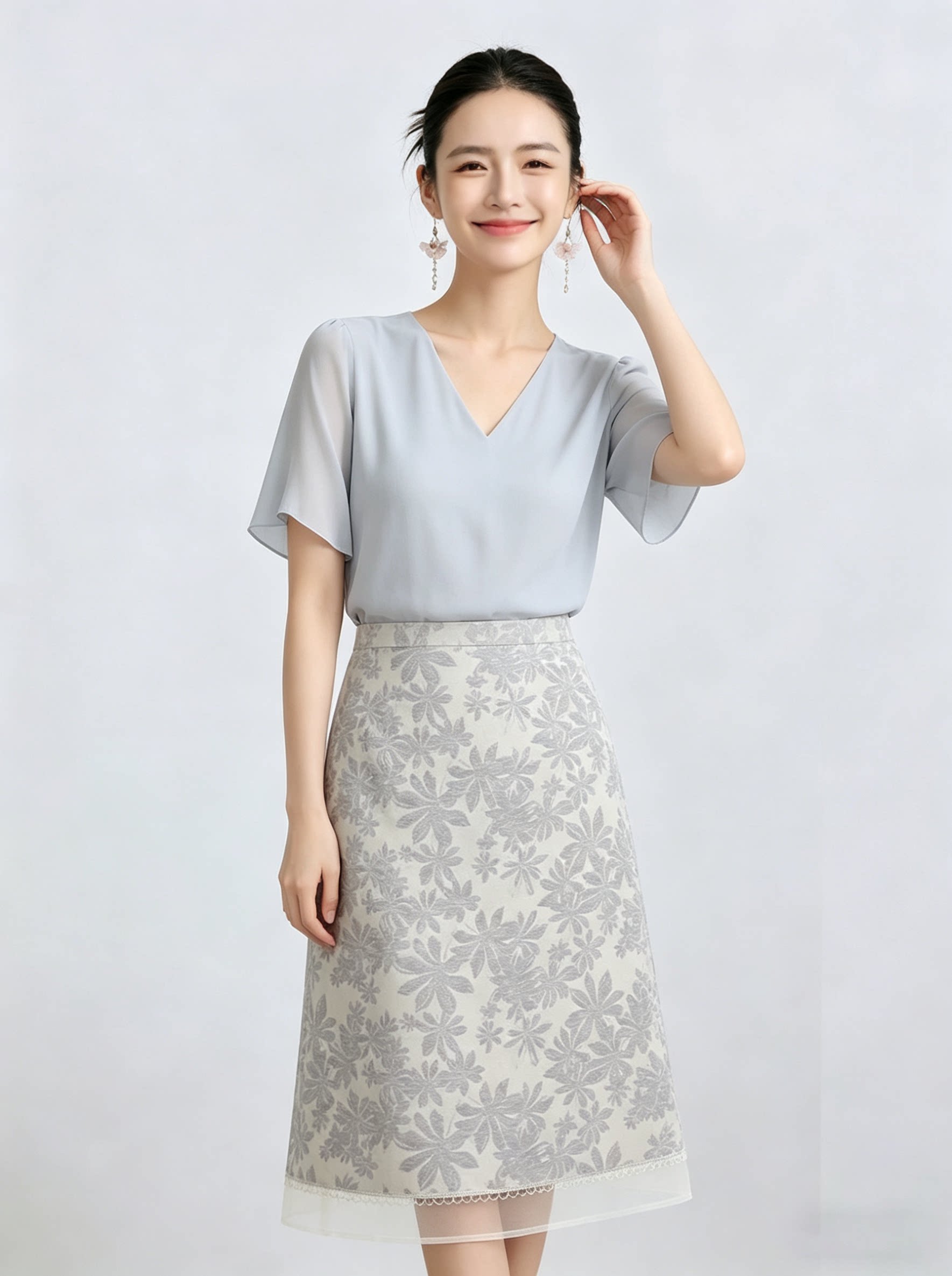 「自」全新升级【铂金会员192/天猫259/差价67】(11435)洛诗琳气质印花半身裙女2026新款高腰拼接网纱开叉A字裙