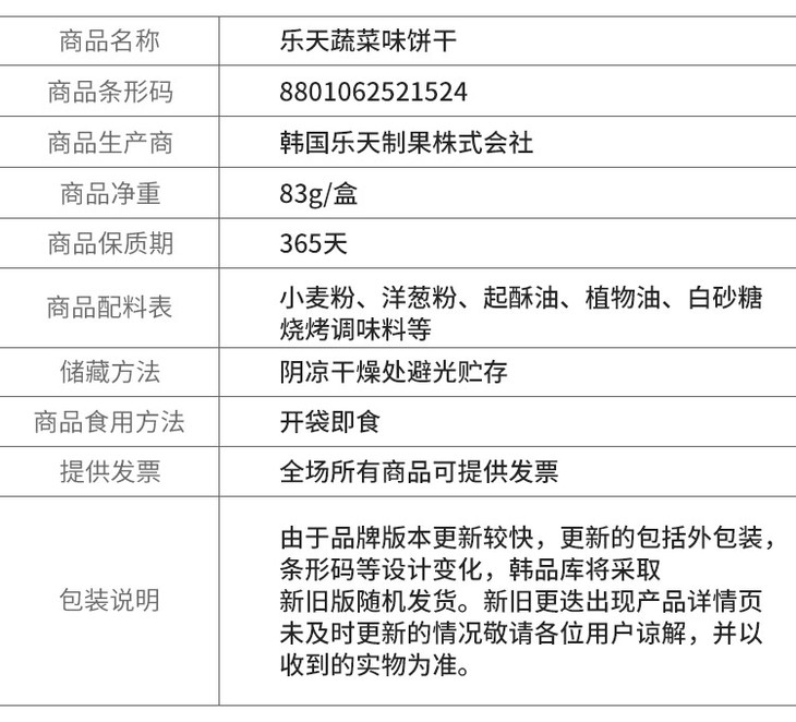 롯데야채크래커乐天蔬菜饼干