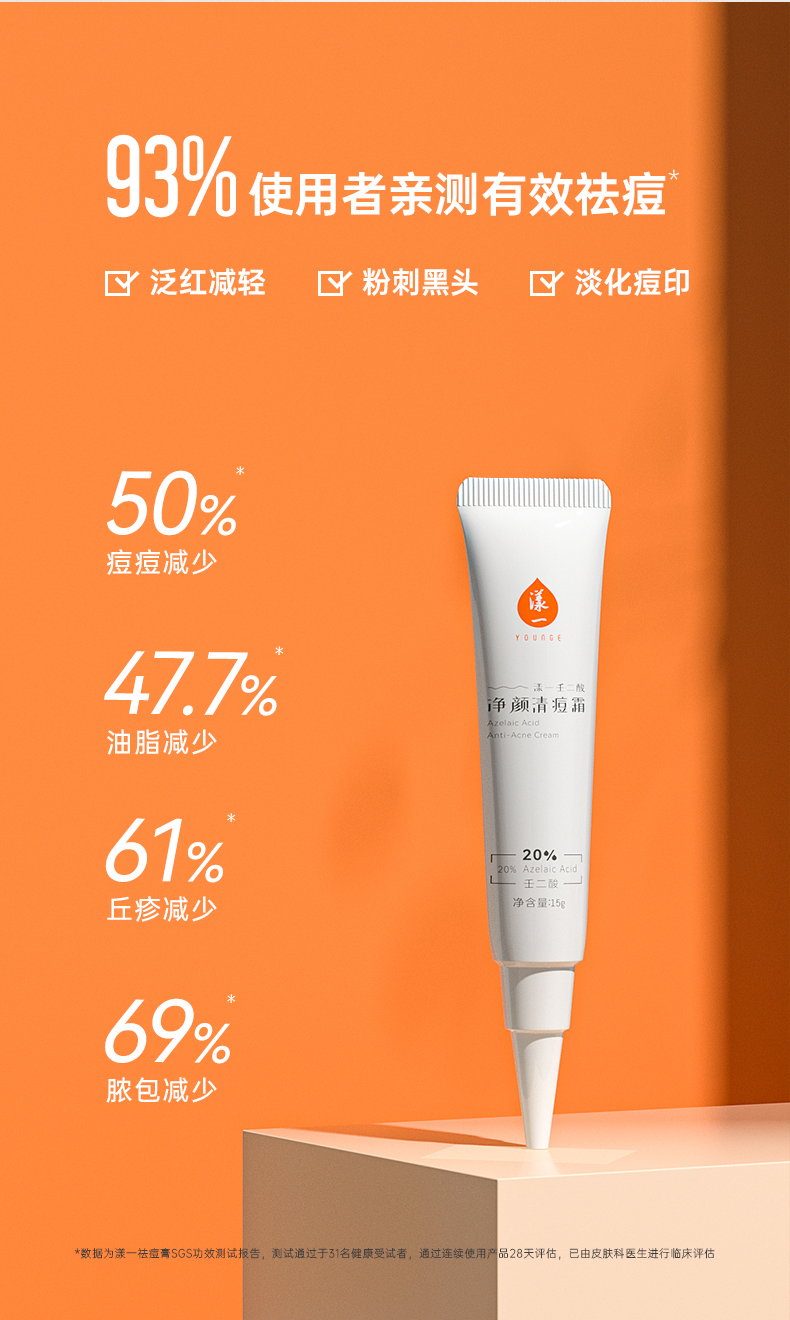 漾一20%净颜清痘霜 壬二酸、牛蒡多糖、茶树油呵护痘肌