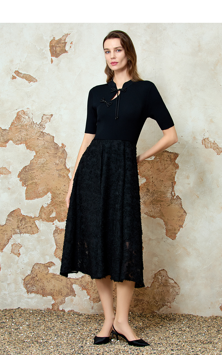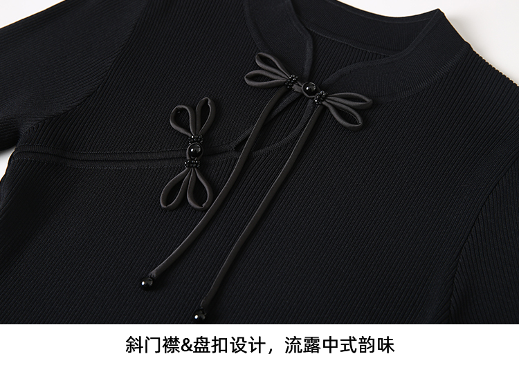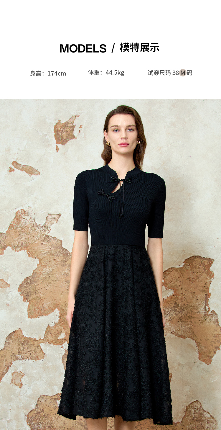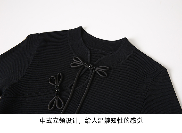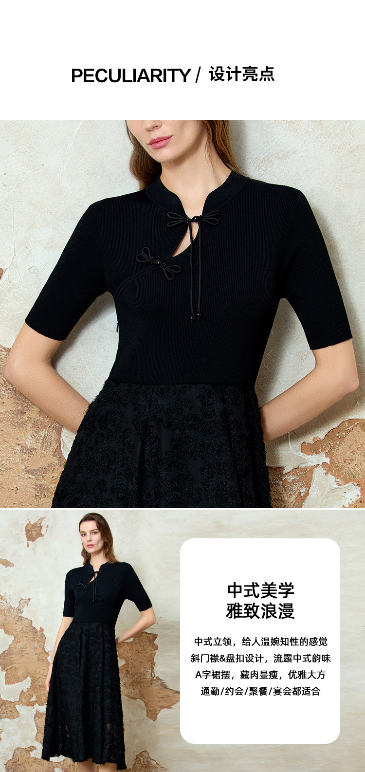 EITIE爱特爱气质新中式立领盘扣显瘦黑色连衣裙2025春季新款8107803