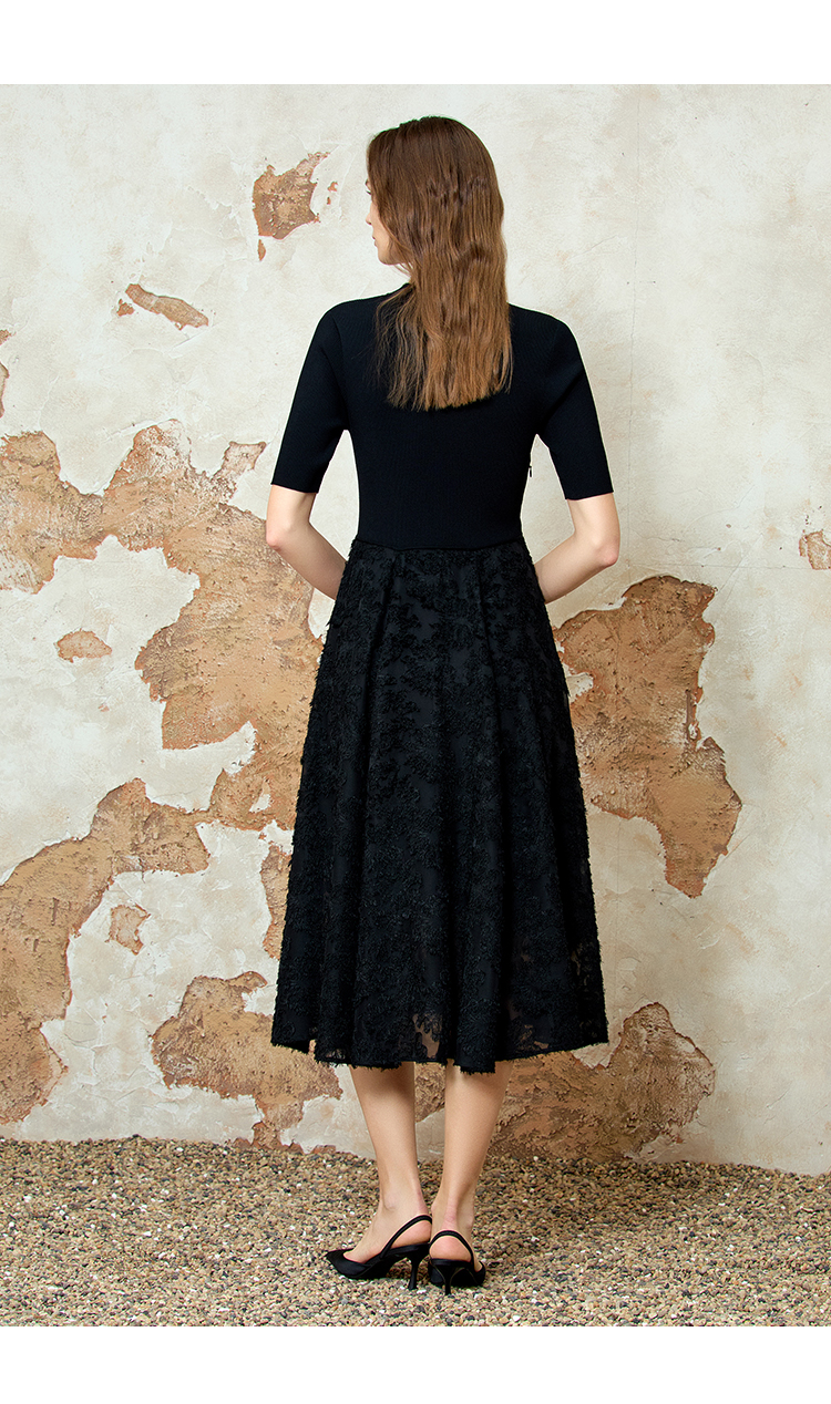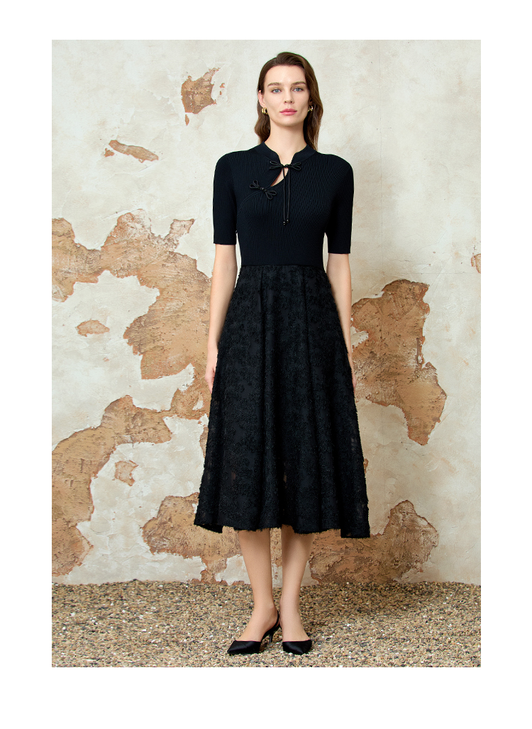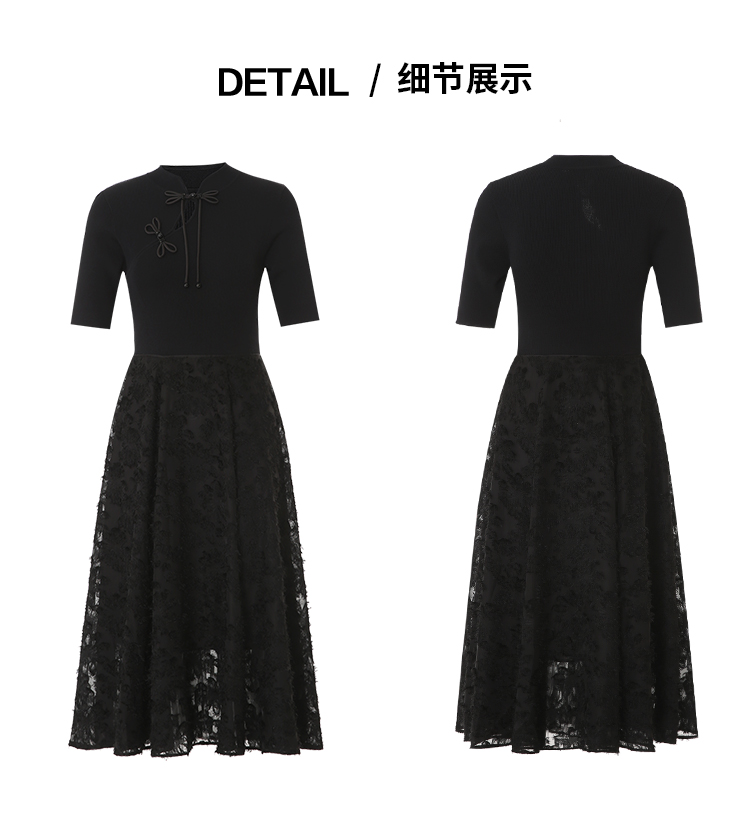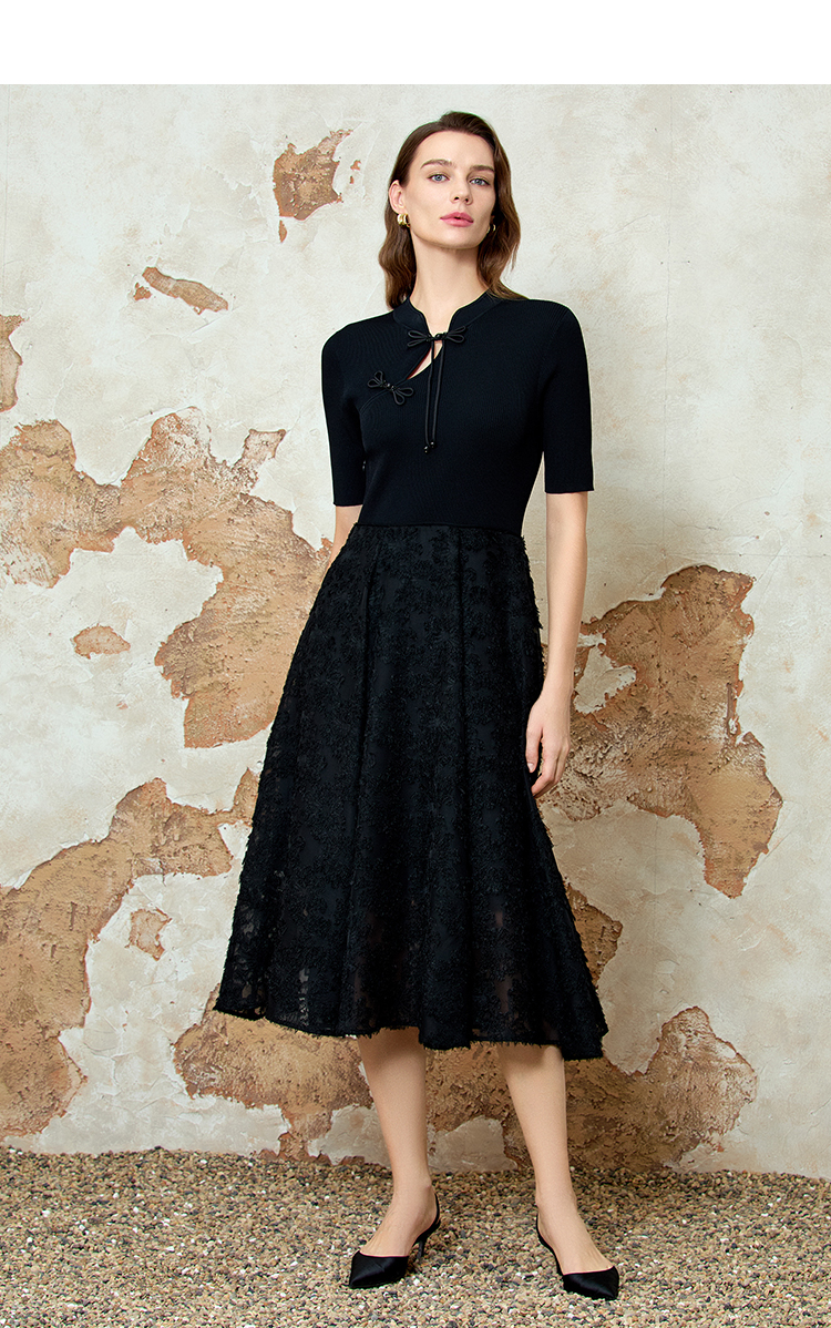 EITIE爱特爱气质新中式立领盘扣显瘦黑色连衣裙2025春季新款8107803