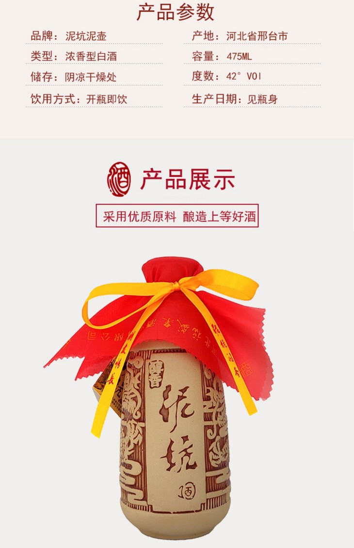 [白酒]泥坑 泥壶醇香42度475ml浓香型白酒