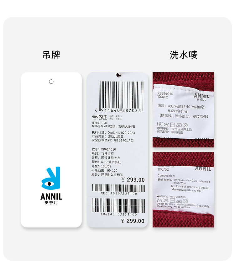 【实体店同款】男童圆领针织上衣春季新款安奈儿童装XB614010