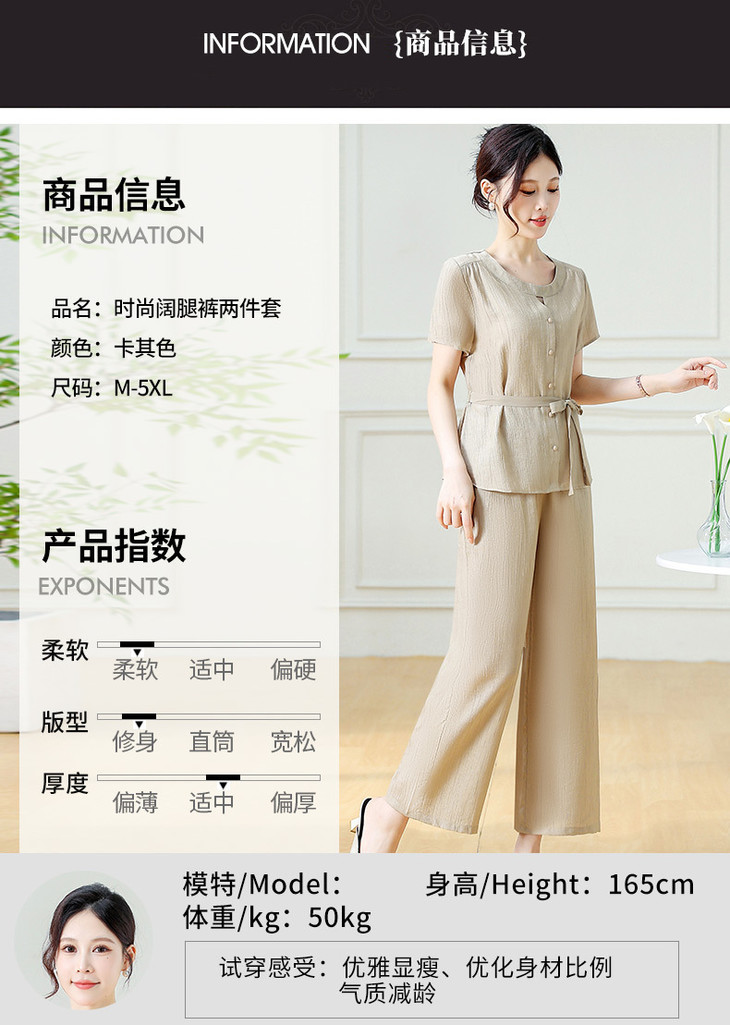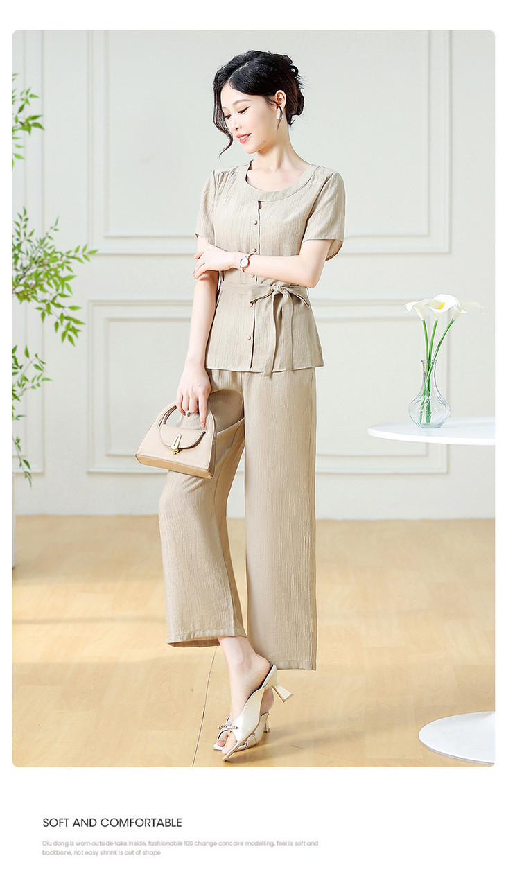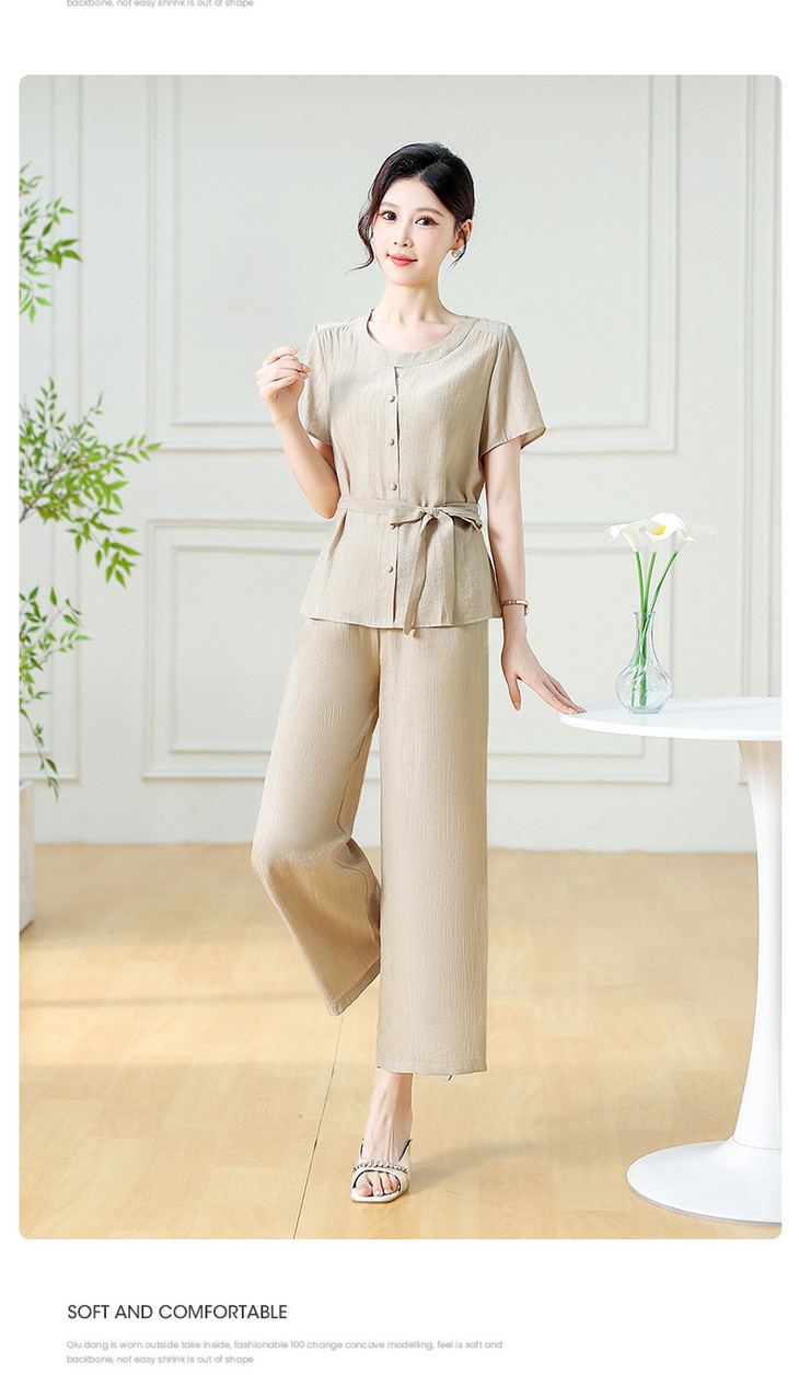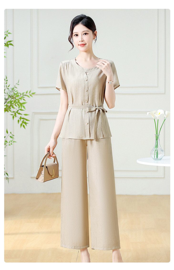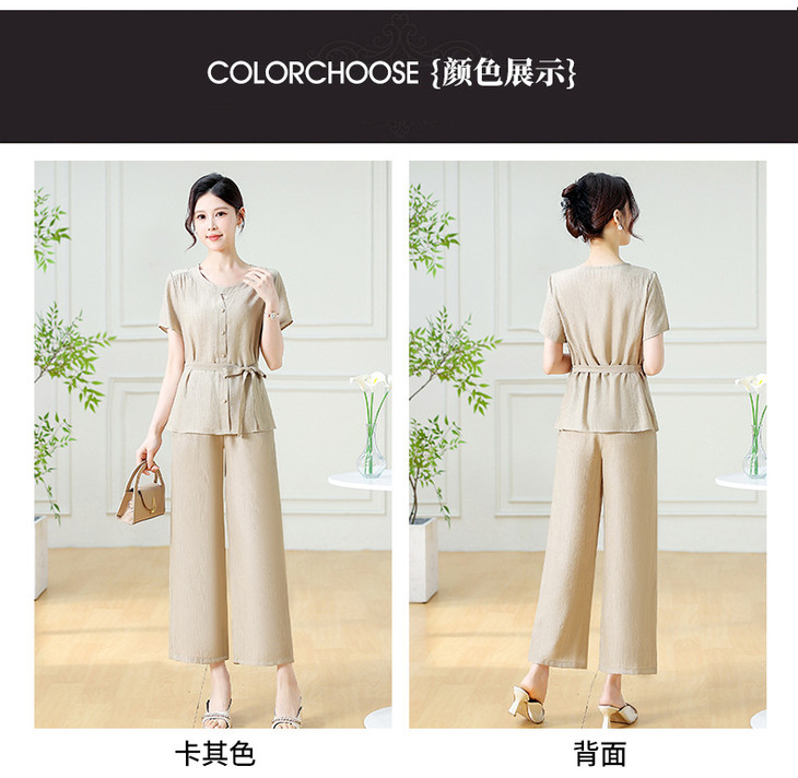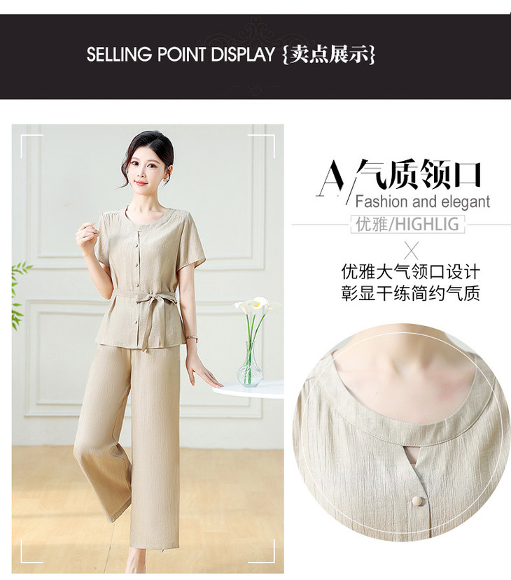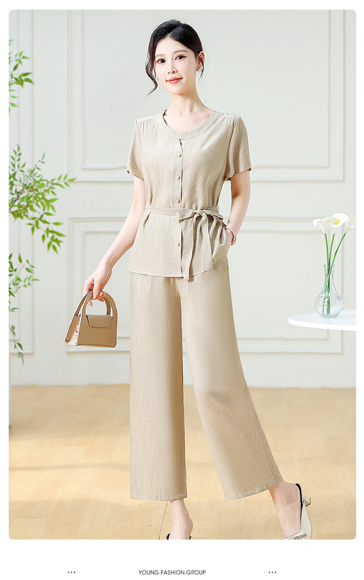韩版系带气质优雅,妈妈装休闲两件套QYM-YXJY-725196