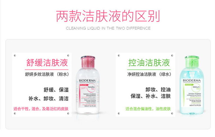 法国Bioderma贝德玛按压卸妆水-500ML (绿色/粉色)