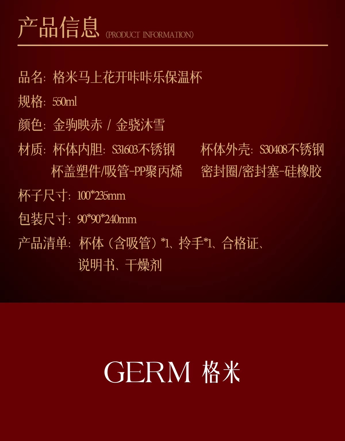 GERM格米马上花开咔咔乐保温杯-金骁沐雪-550ml