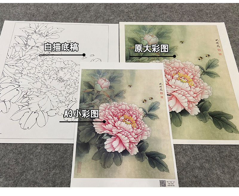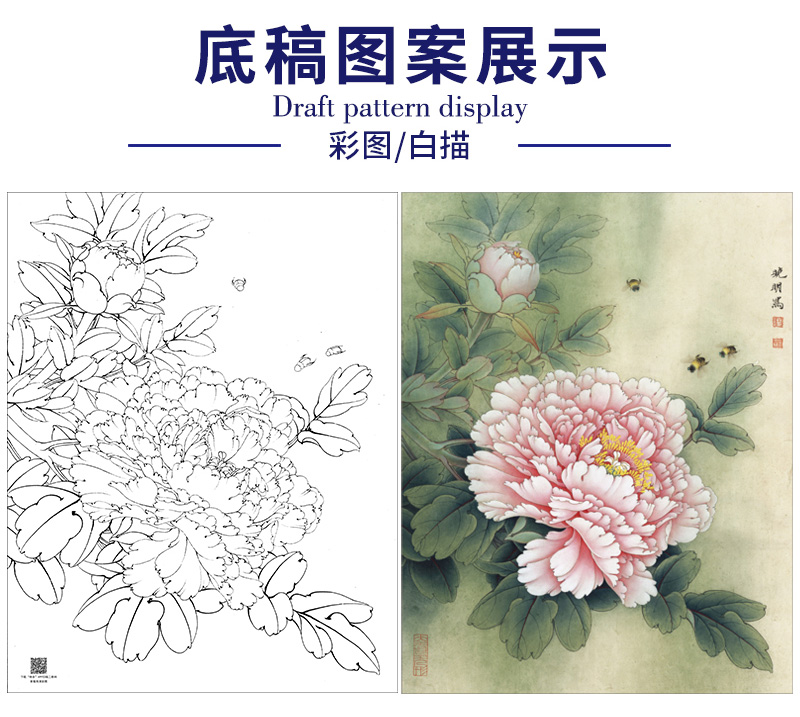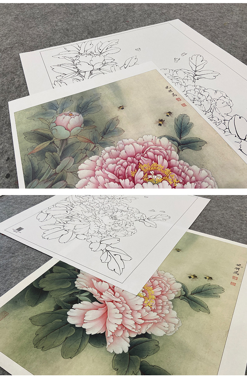 【大彩图】李晓明工笔画白描底稿《观音面》牡丹临摹勾线花鸟线稿K029