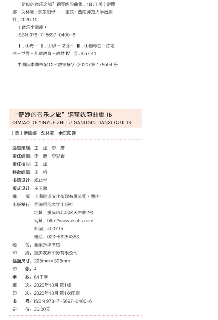 书名:“奇妙的音乐之旅”钢琴练习曲集1B