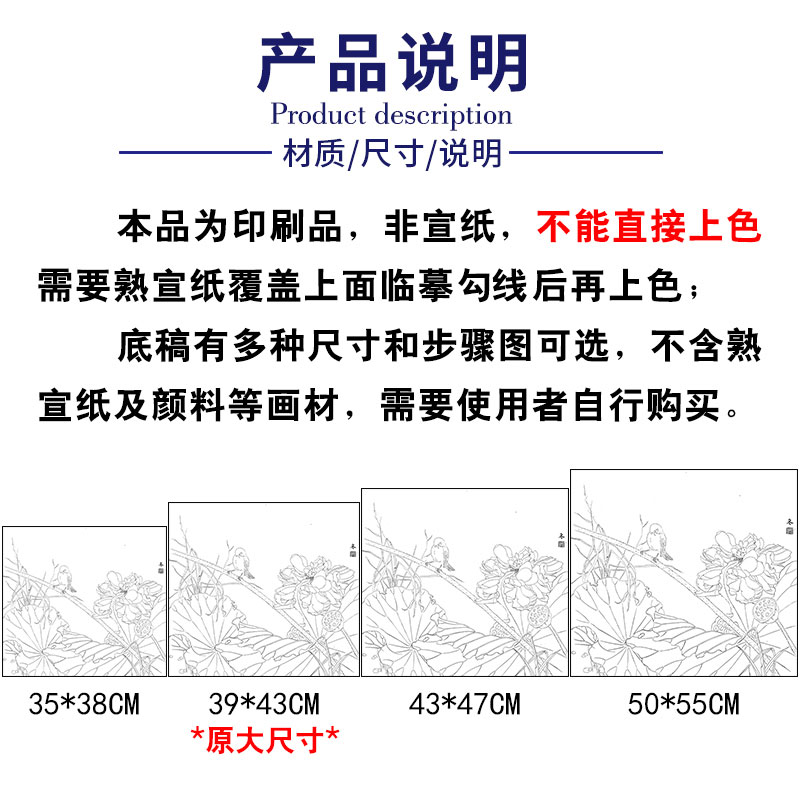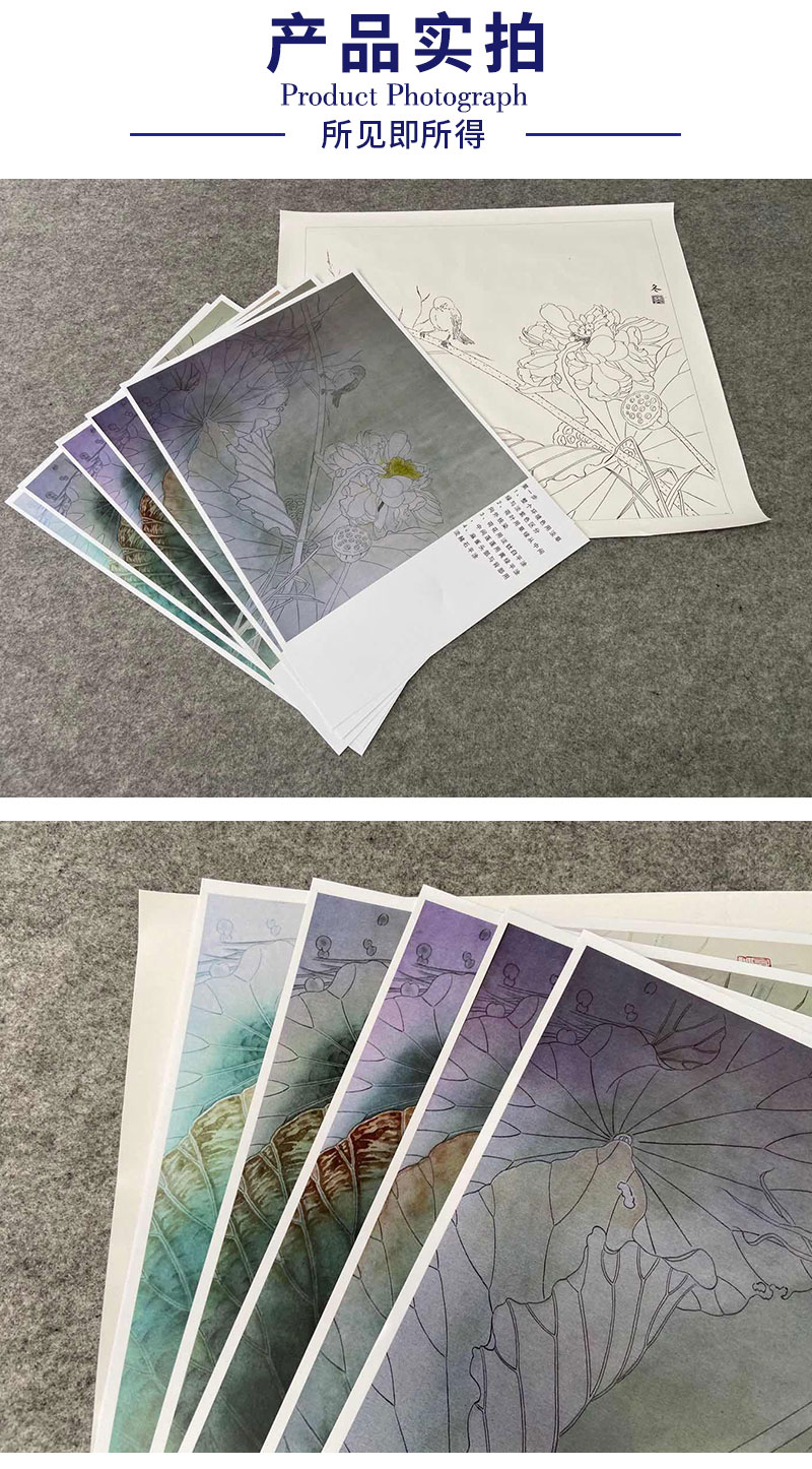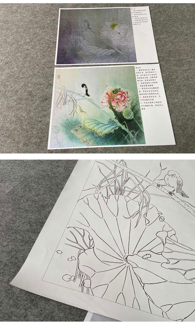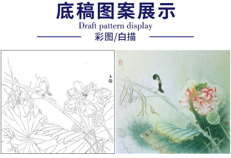 【有步骤、大彩图】杨冬冬工笔画白描底稿斗方小品《美人怜》荷花麻雀初学者临摹花鸟线稿HD48
