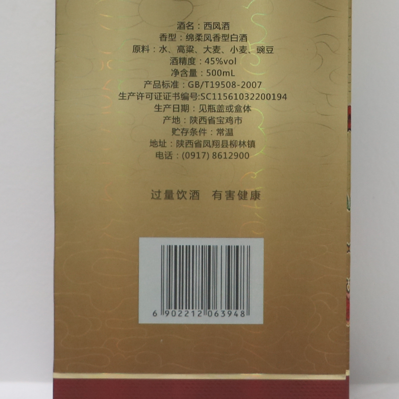 【文创精品】45度西凤酒(凤凰标)单瓶500mL