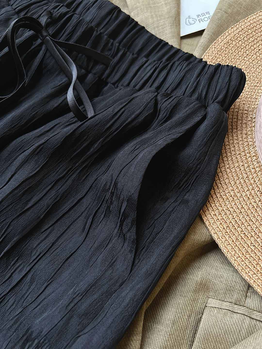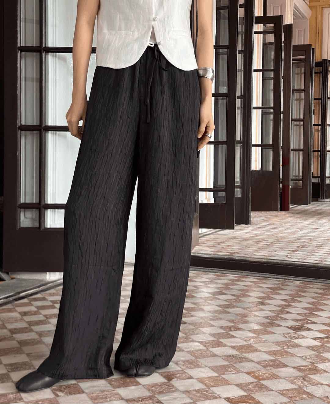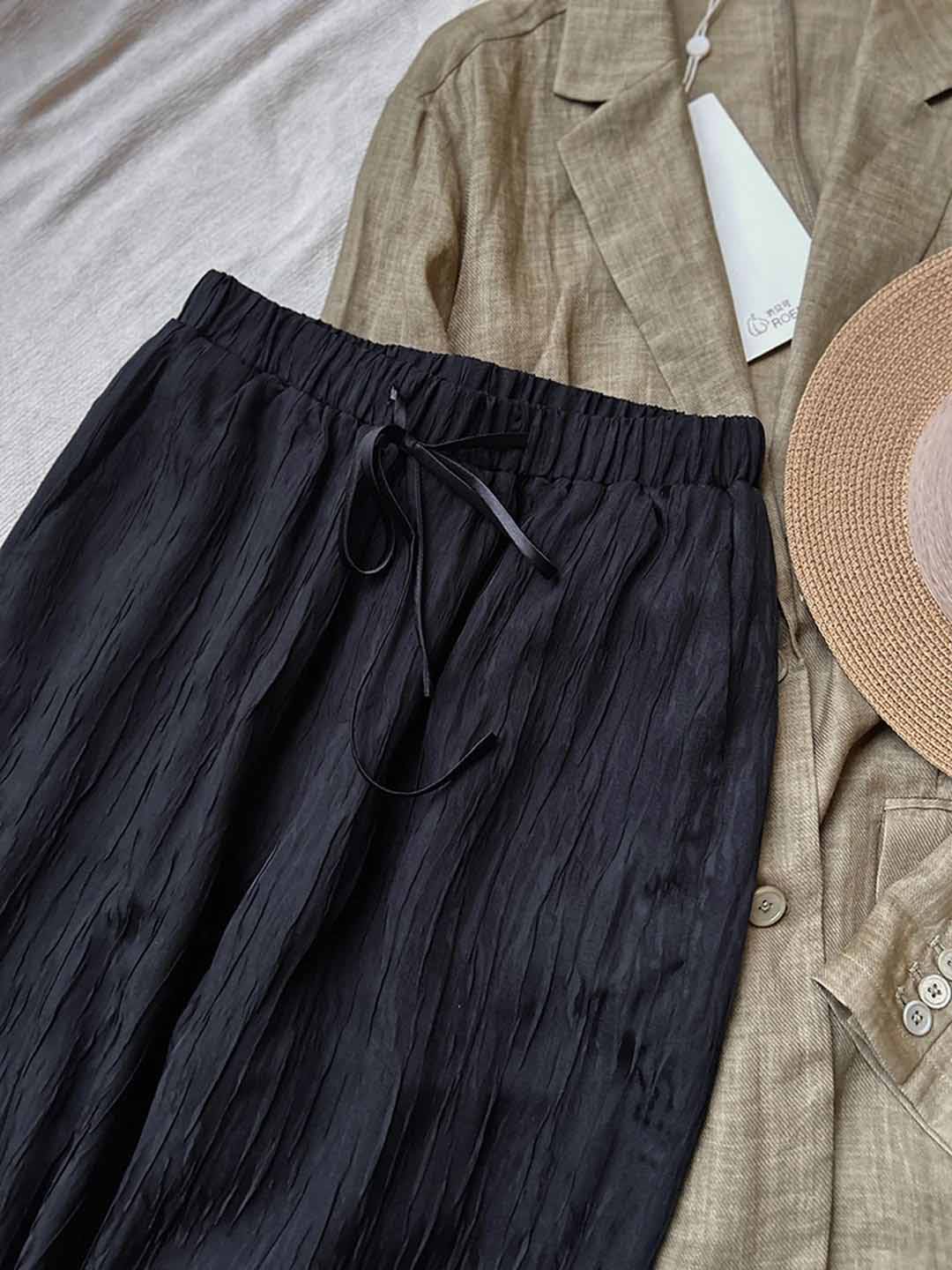 「褶皱条纹醋酸缎长裤」给你想要的高级感,专治腿粗,超显腿长