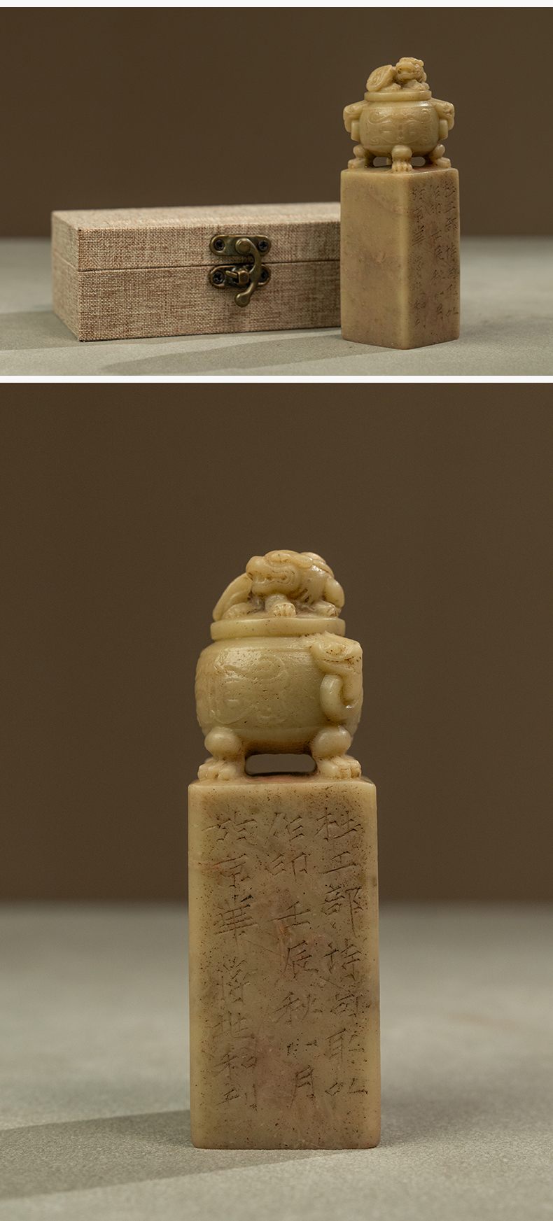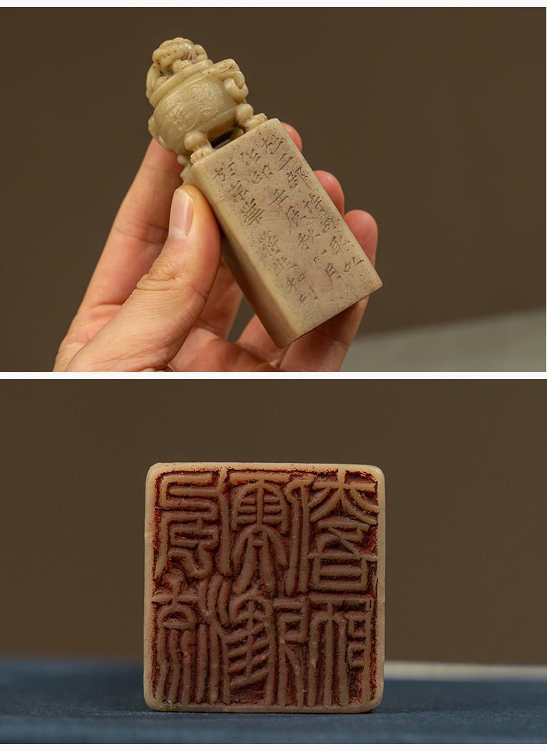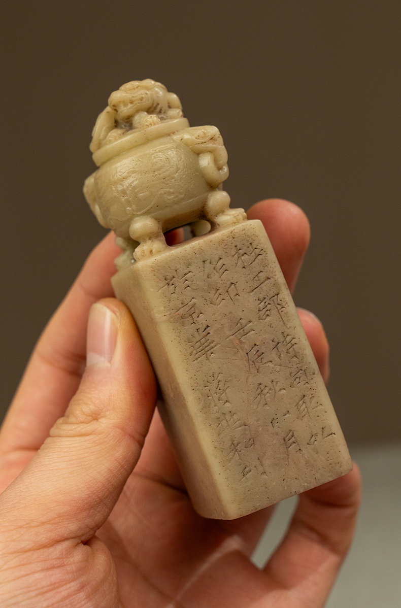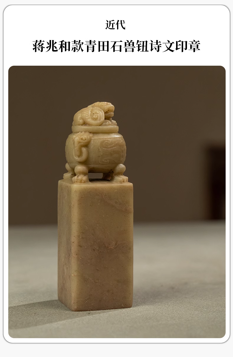 近代 蒋兆和款青田石兽钮诗文印章
