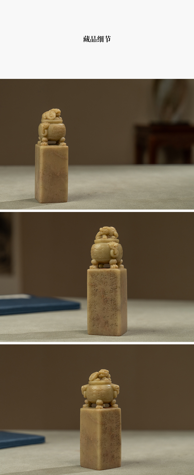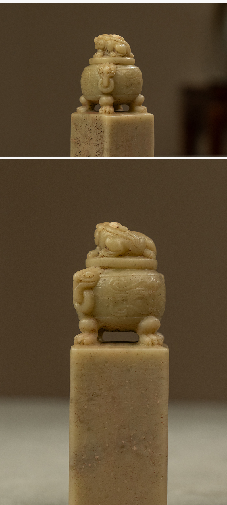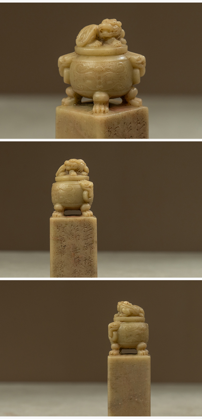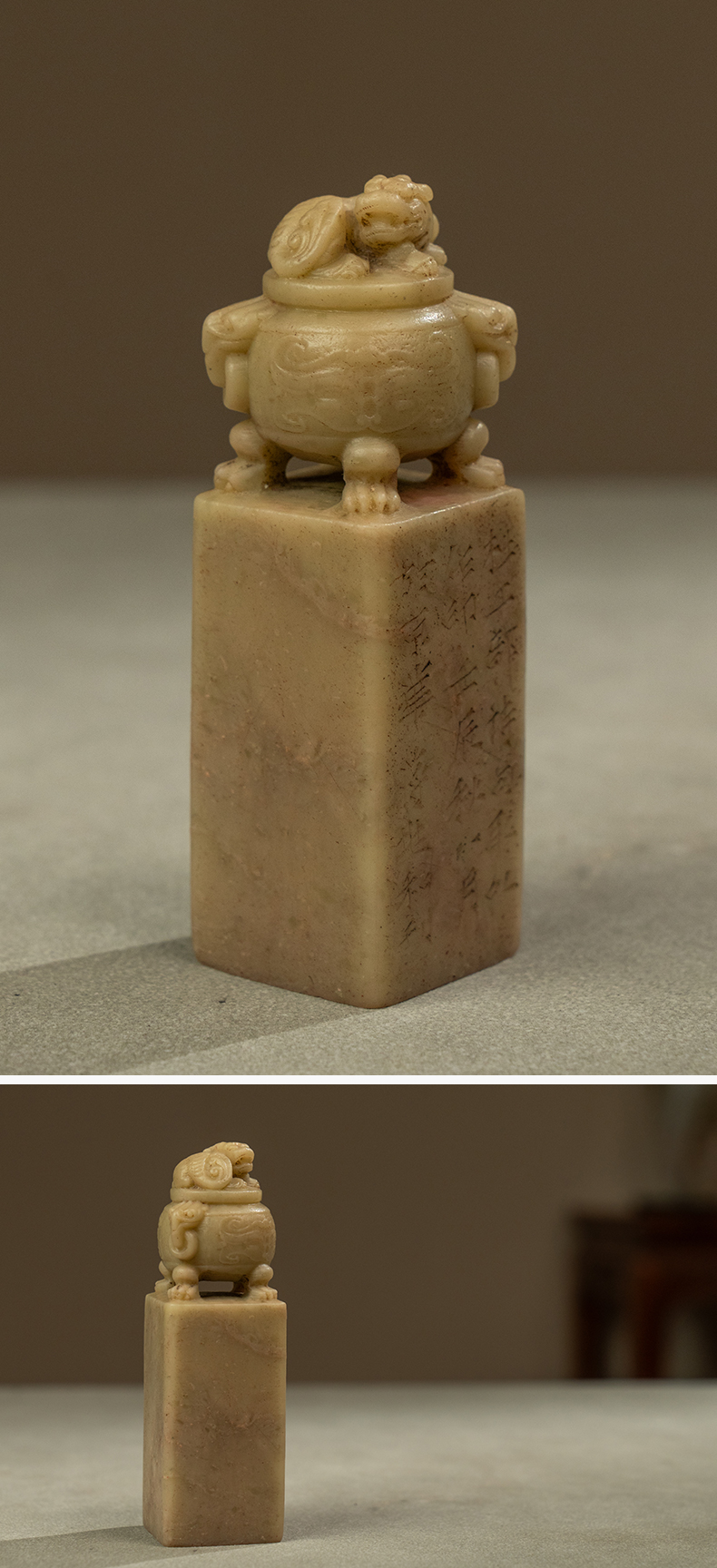 近代 蒋兆和款青田石兽钮诗文印章