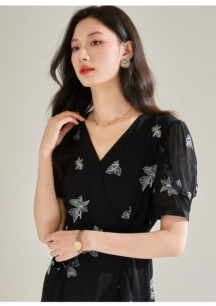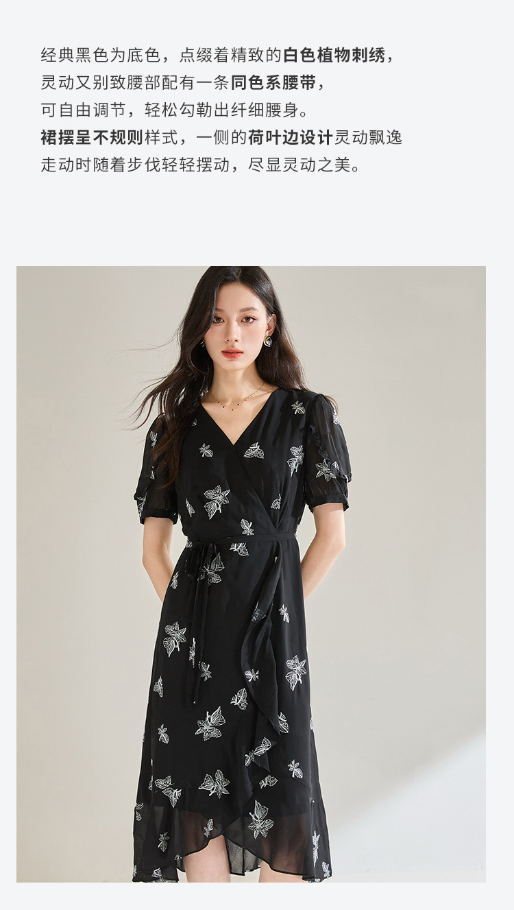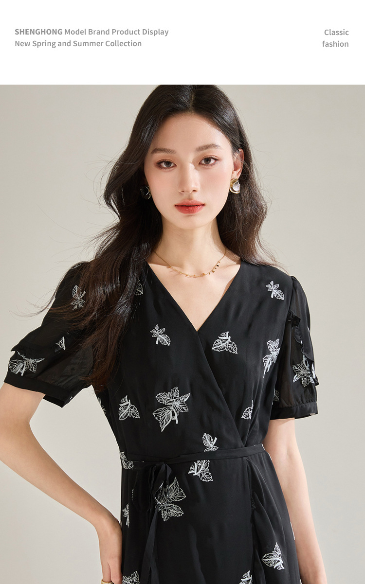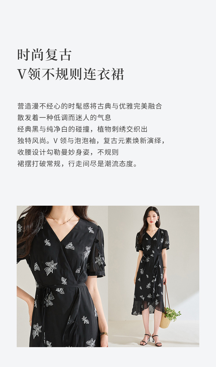 「高货sh」全新升级【铂金会员266/天猫359/差价93】(05823)洛诗琳法式气质刺绣连衣裙2025夏季新款V领收腰修身显裙子