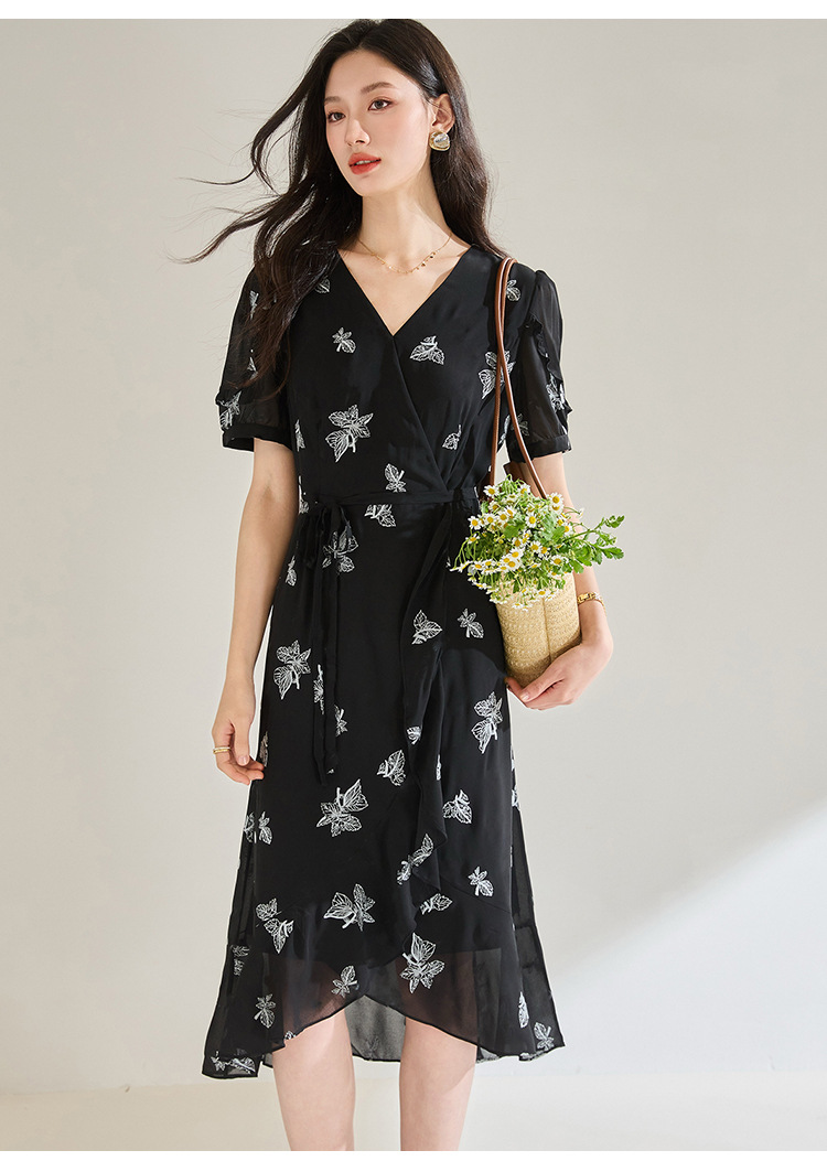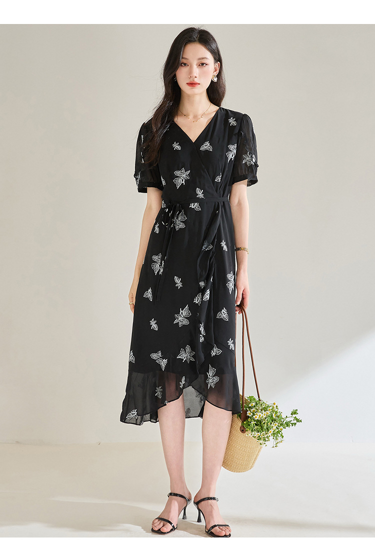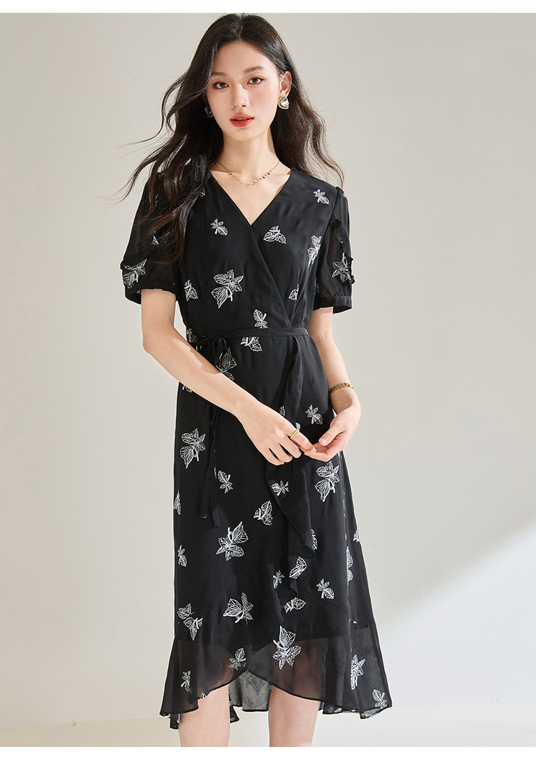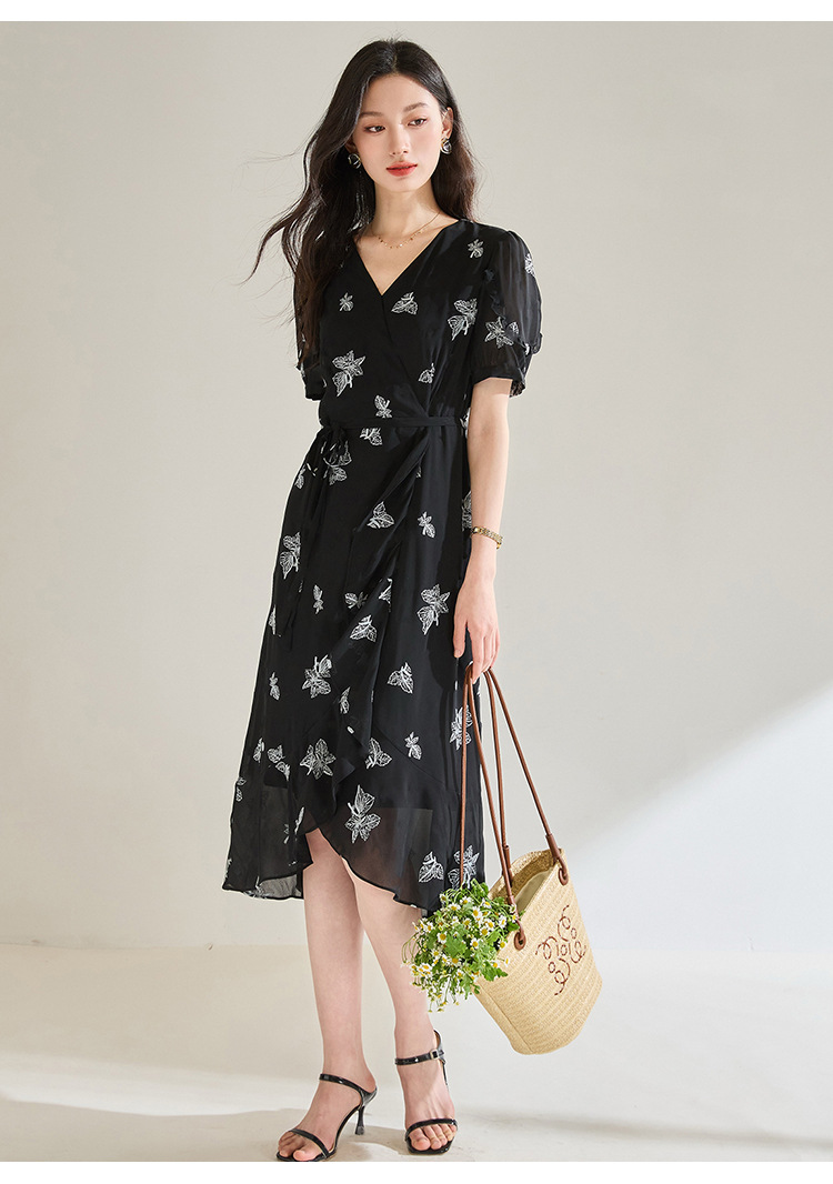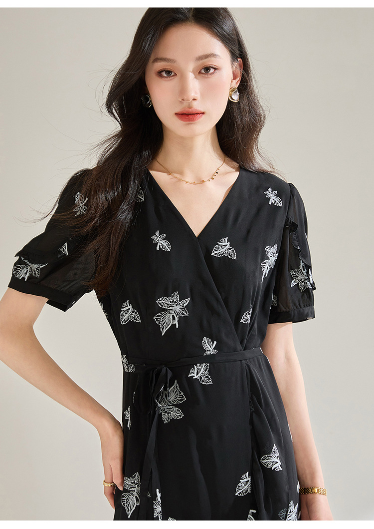 「高货sh」全新升级【铂金会员266/天猫359/差价93】(05823)洛诗琳法式气质刺绣连衣裙2025夏季新款V领收腰修身显裙子