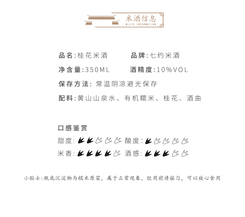 七约桂花米酒 350ml瓶装 10度桂香清甜微醺甜米酒 女士果酒