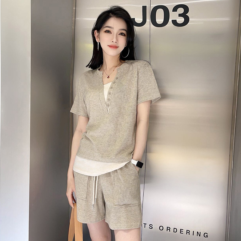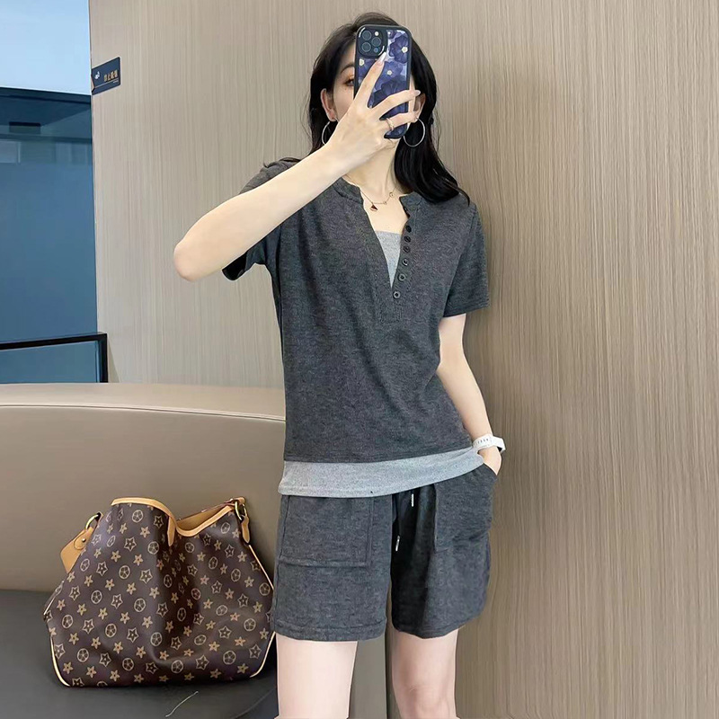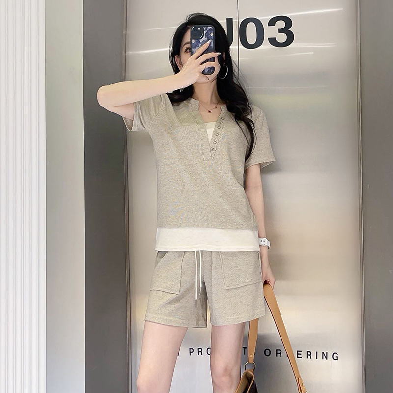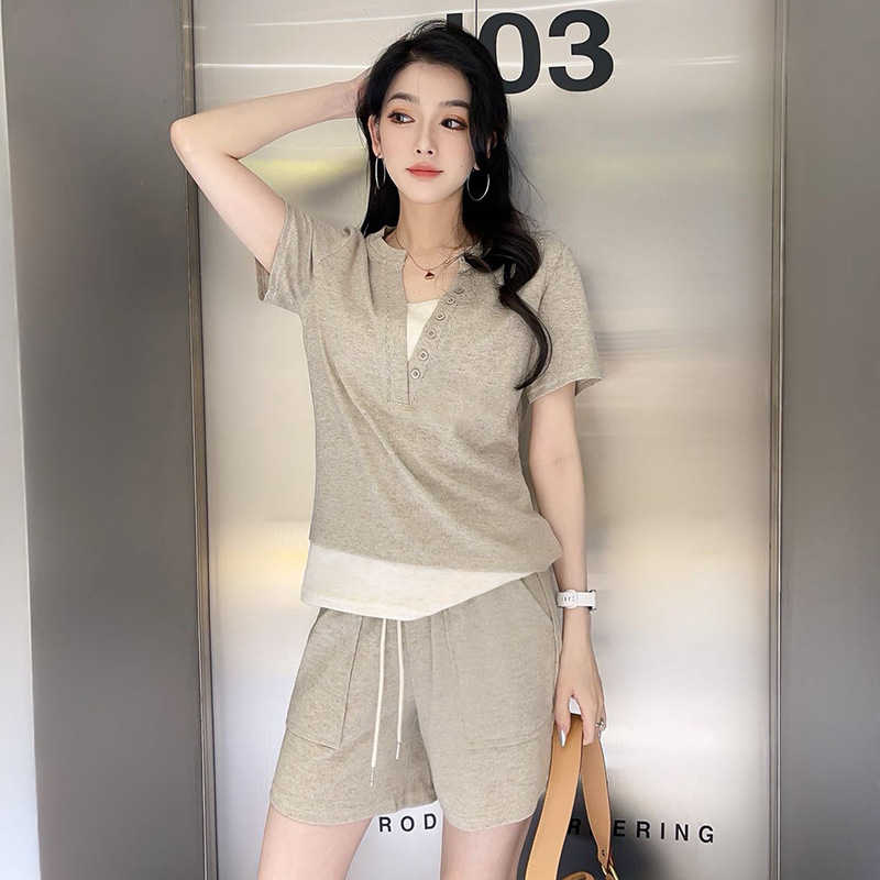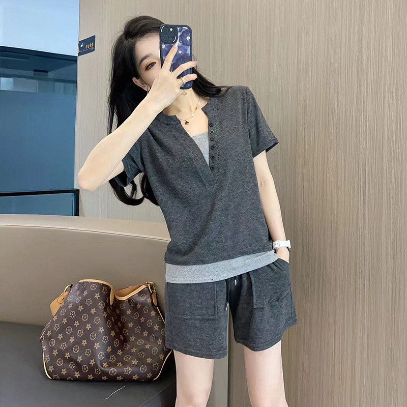 【59元带走一整套!懒人必备!】穿搭界的慵懒风 早夏休闲短款糯米套装 不挑身材 巨减龄!假两件设计+休闲短裤版型 高级显瘦