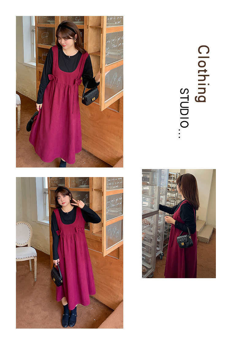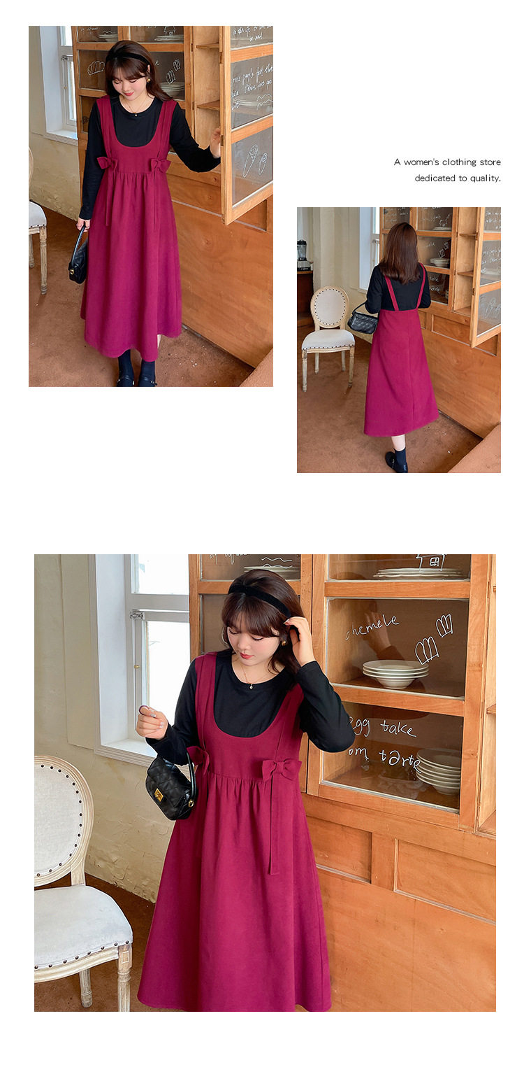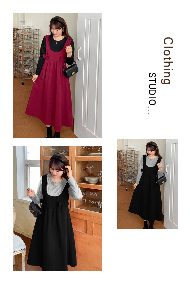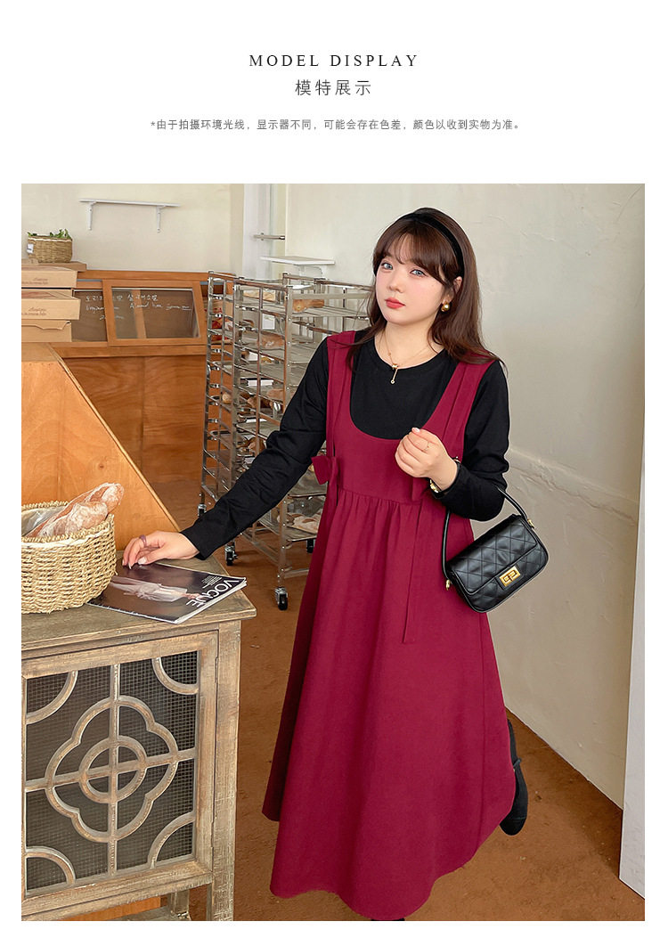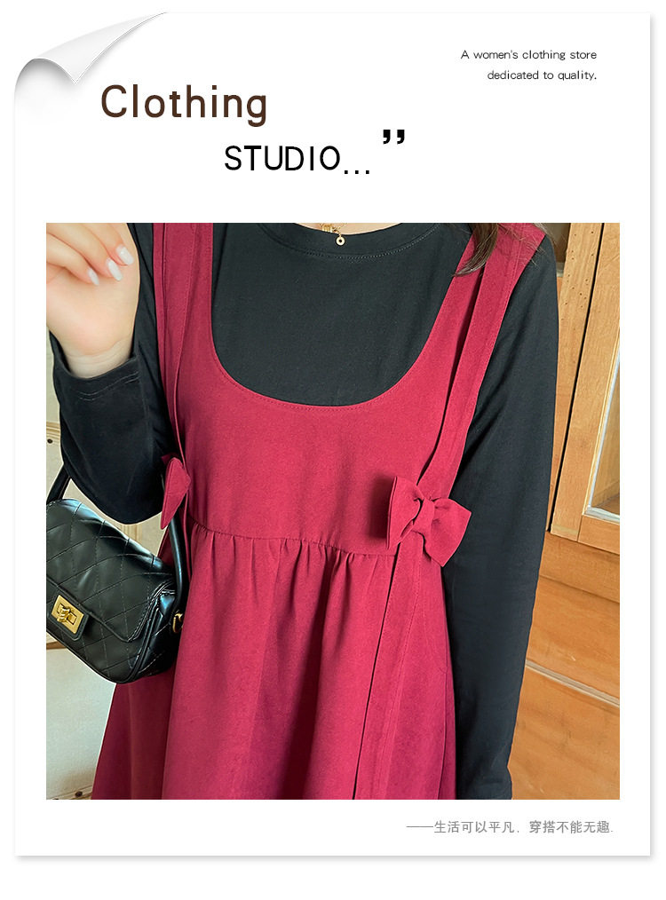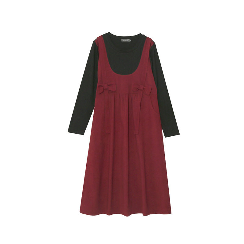 双十二福利!【诗铭洛可】W899连衣裙蝴蝶结假两件长袖裙子