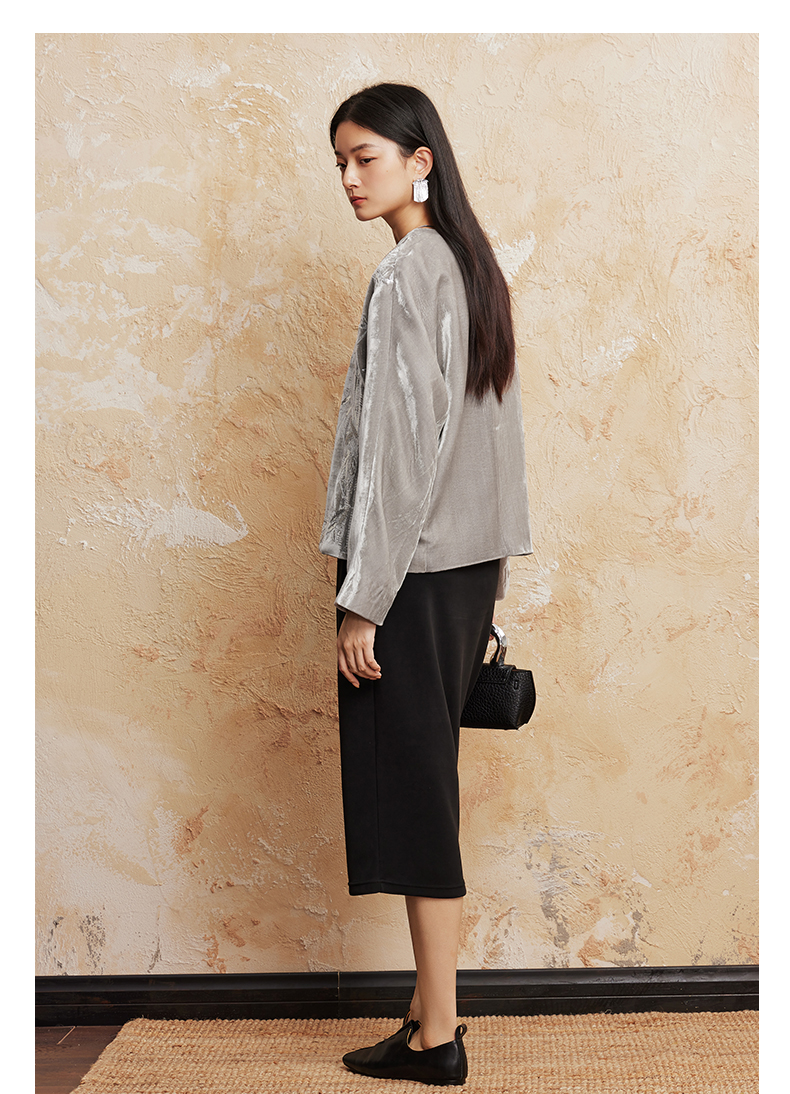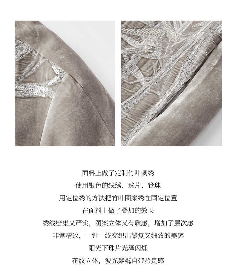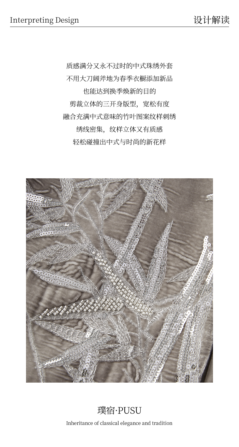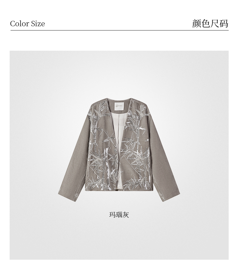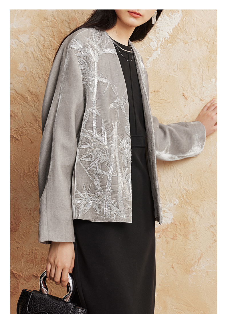 璞宿PUSU 青竹珠绣 桑蚕丝绒对襟短外套54111