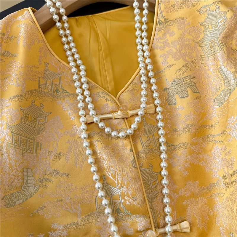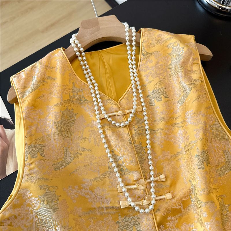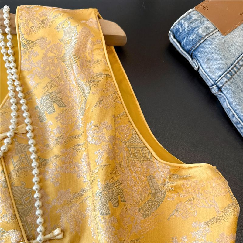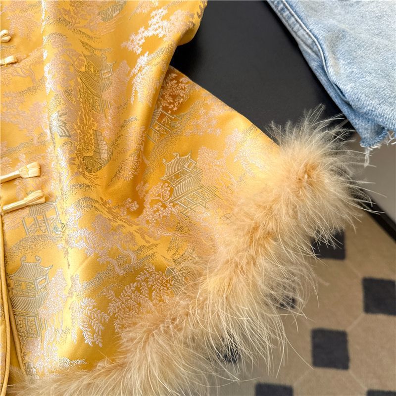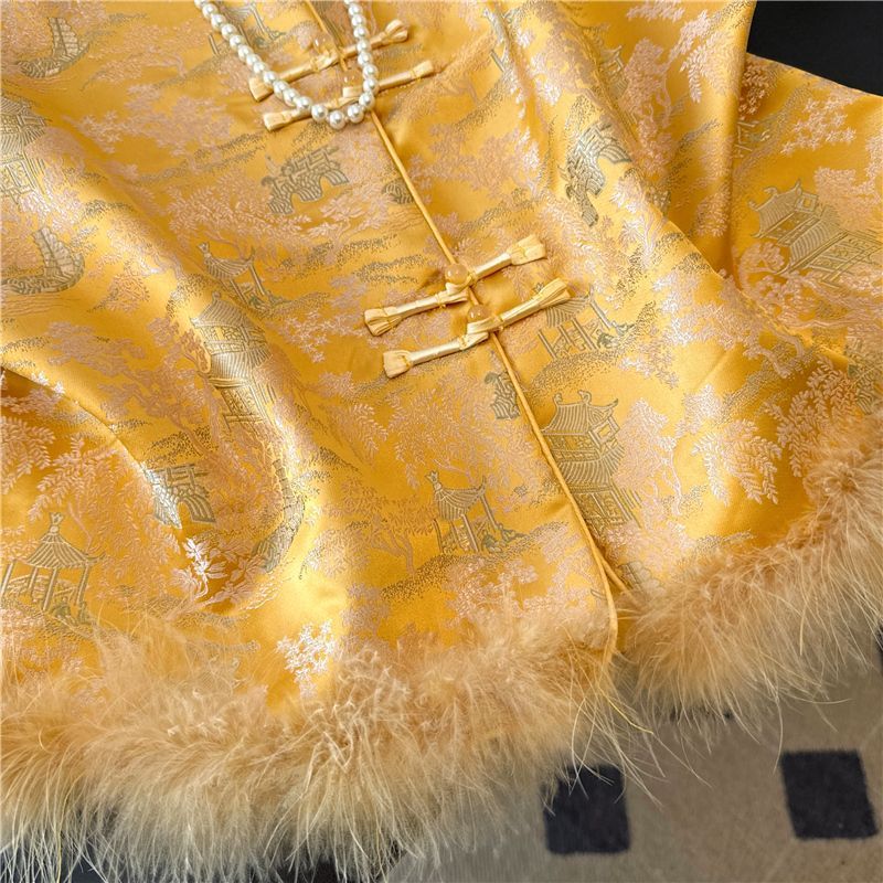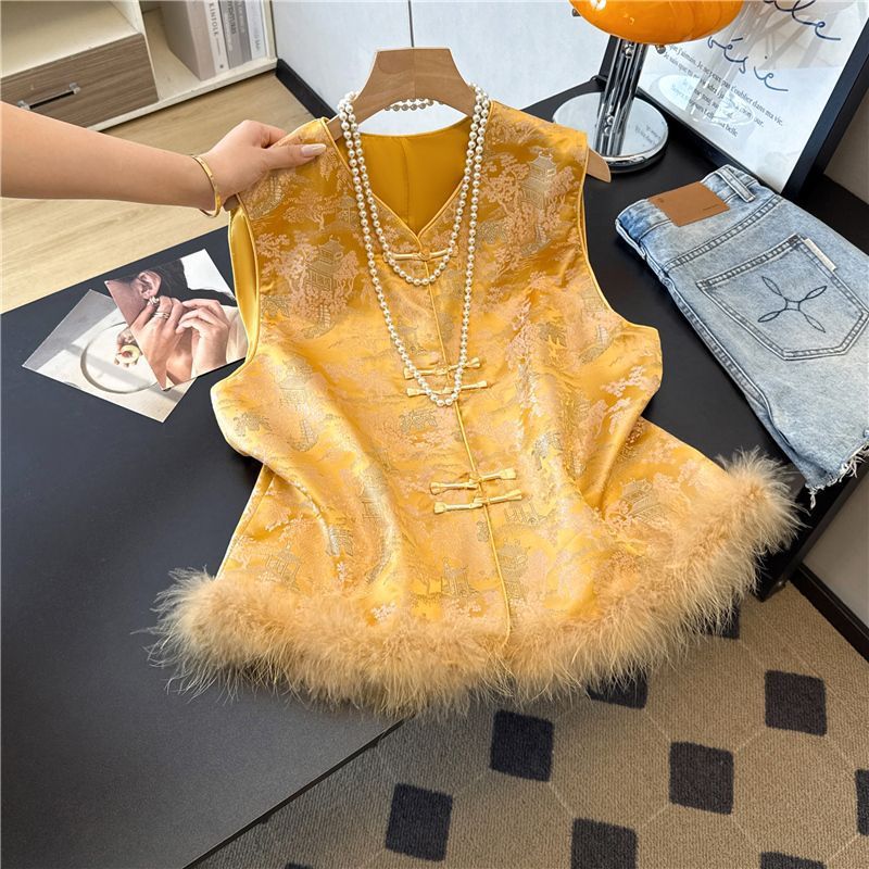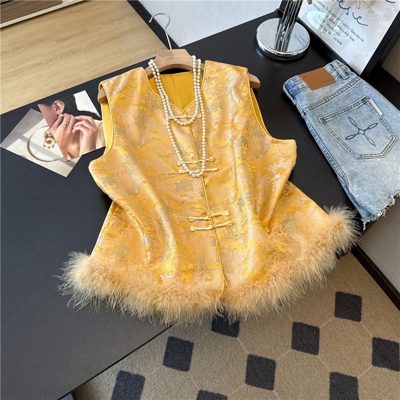 丁摩 新中式驼鸟毛国风提花马甲外套秋季新款时尚绝美开衫上衣5ZF-3336