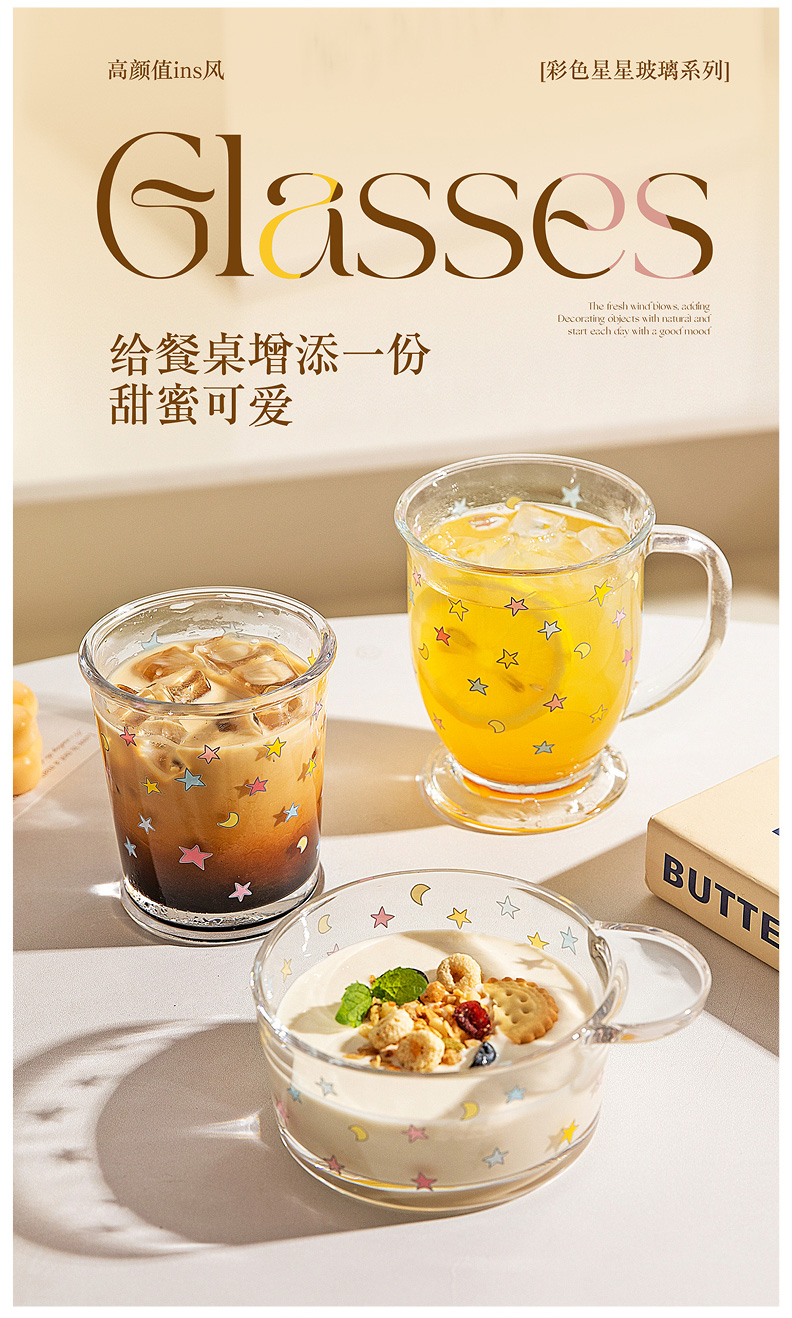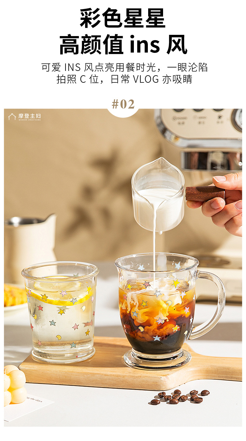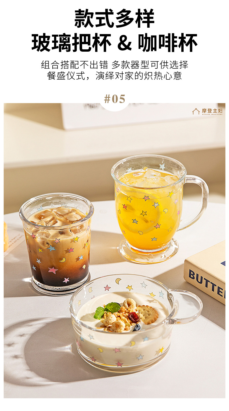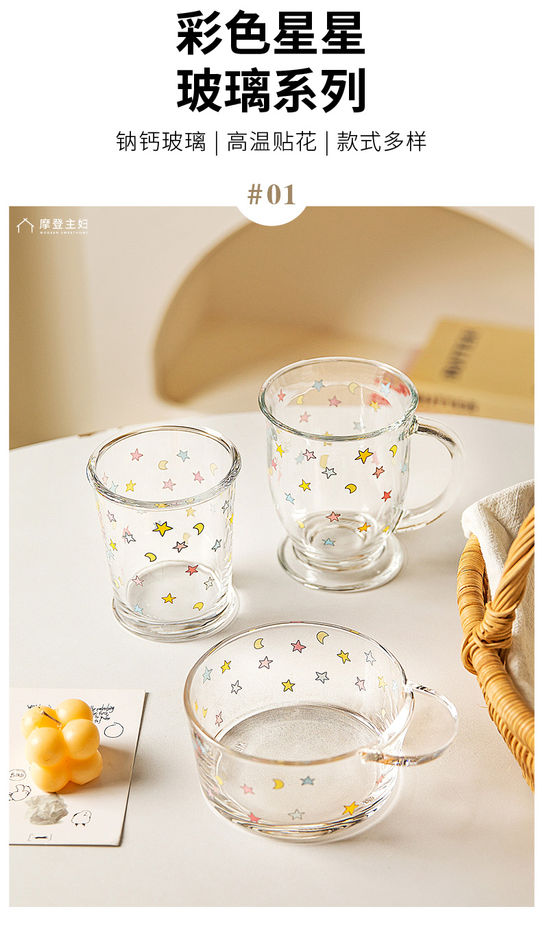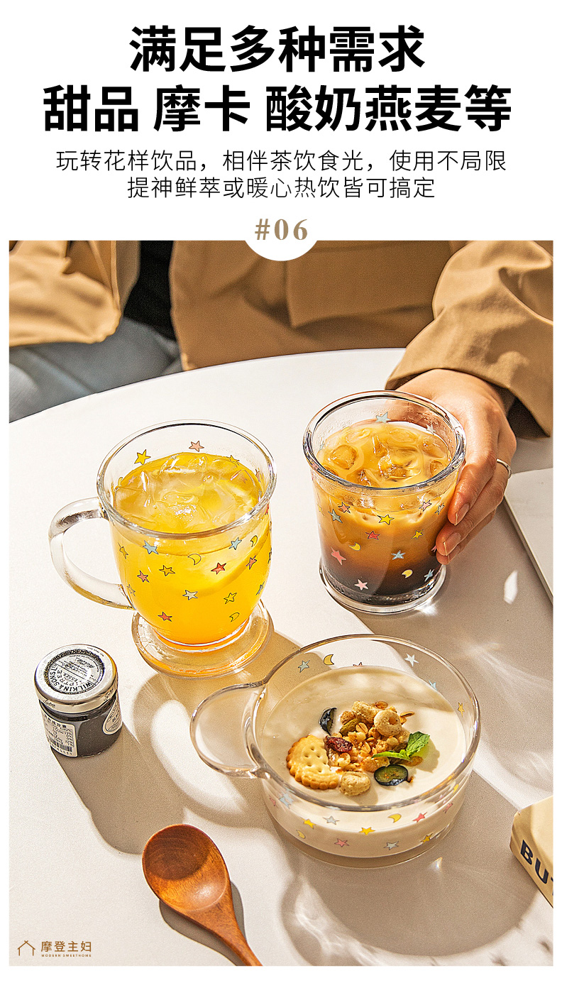 摩登主妇玻璃杯果汁杯家用水杯高颜值牛奶杯早餐杯啤酒杯咖啡杯子