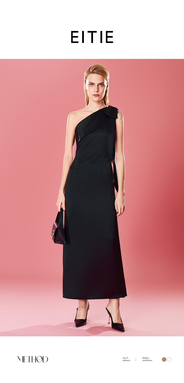 EITIE爱特爱秋季新款典雅高腰法式优雅显瘦长礼服连衣裙7977604