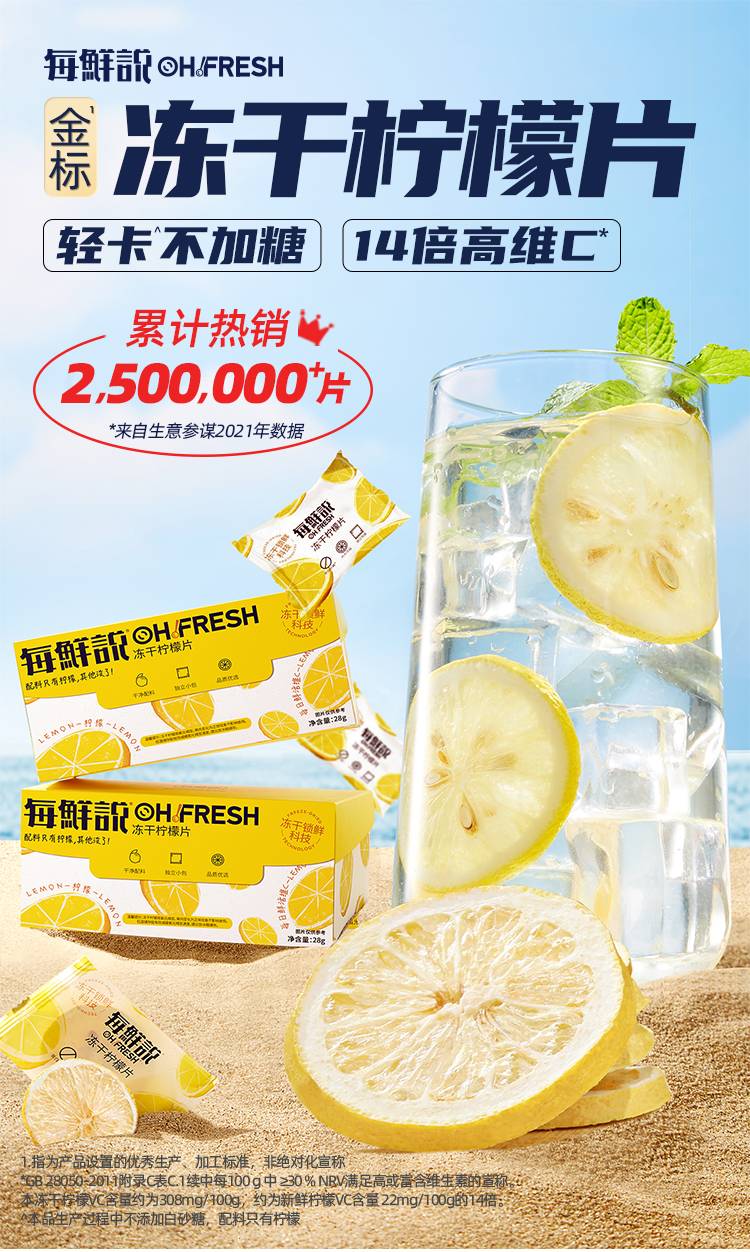 每鲜说冻干柠檬片泡水喝柠檬 不加糖纯柠檬片