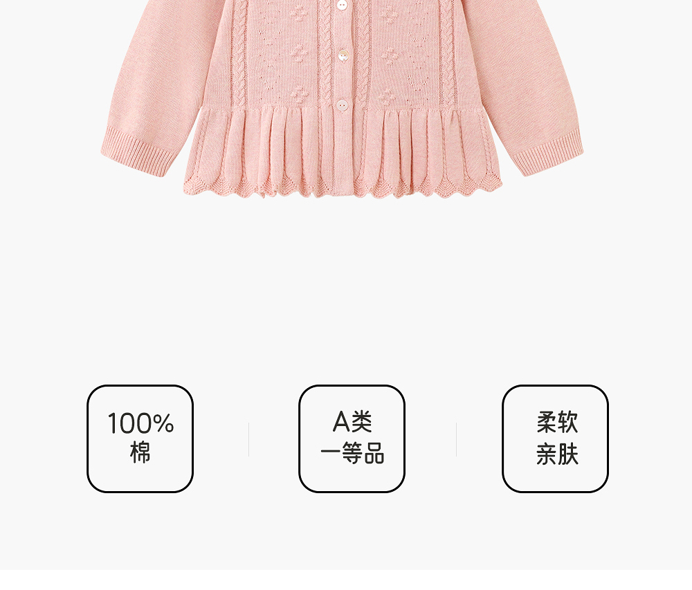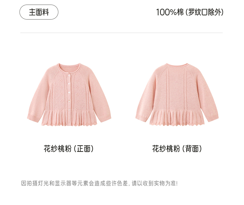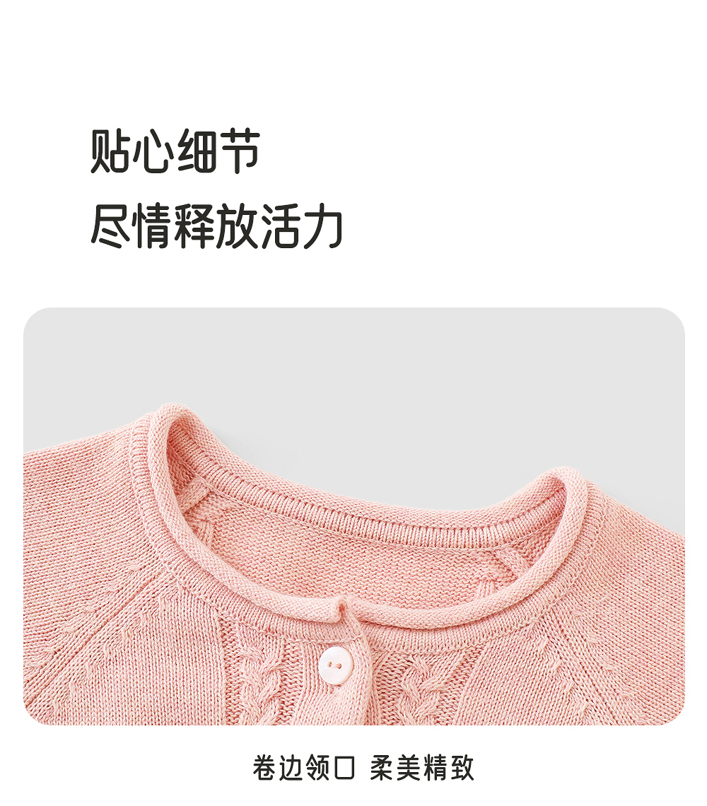 【商场同款】英氏儿童外套春秋季保暖薄外套女童毛衫针织纯棉毛衣