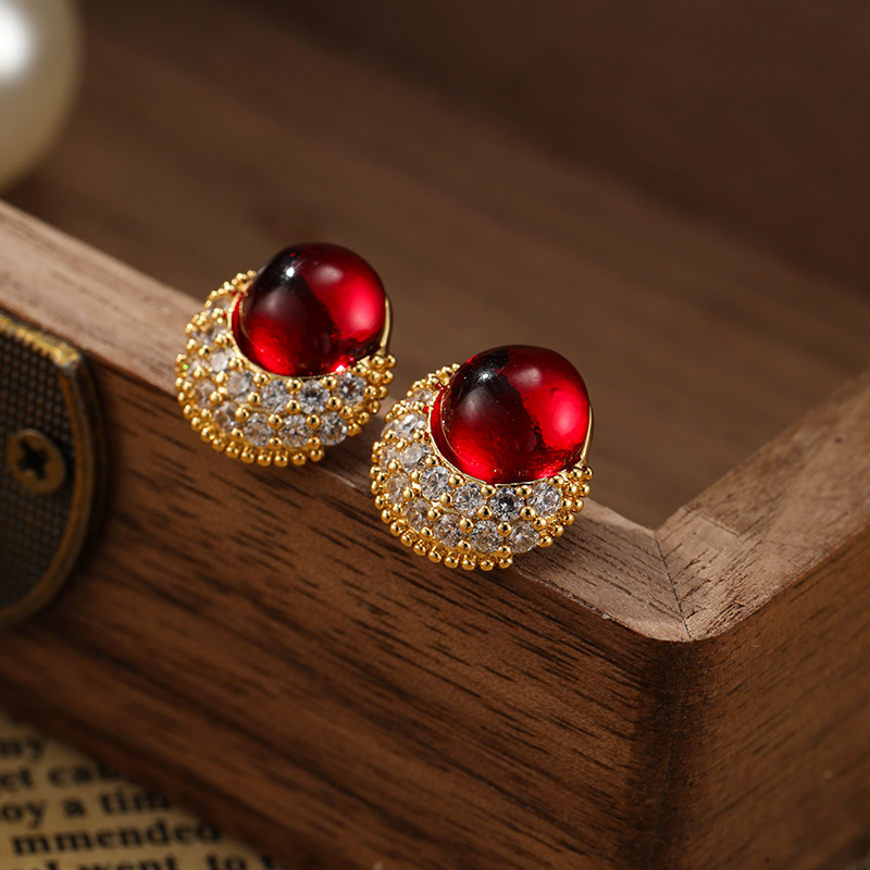 丁摩 红色新年耳环韩版轻奢锆石耳钉925银针高级感女精致耳饰5ZF-1274