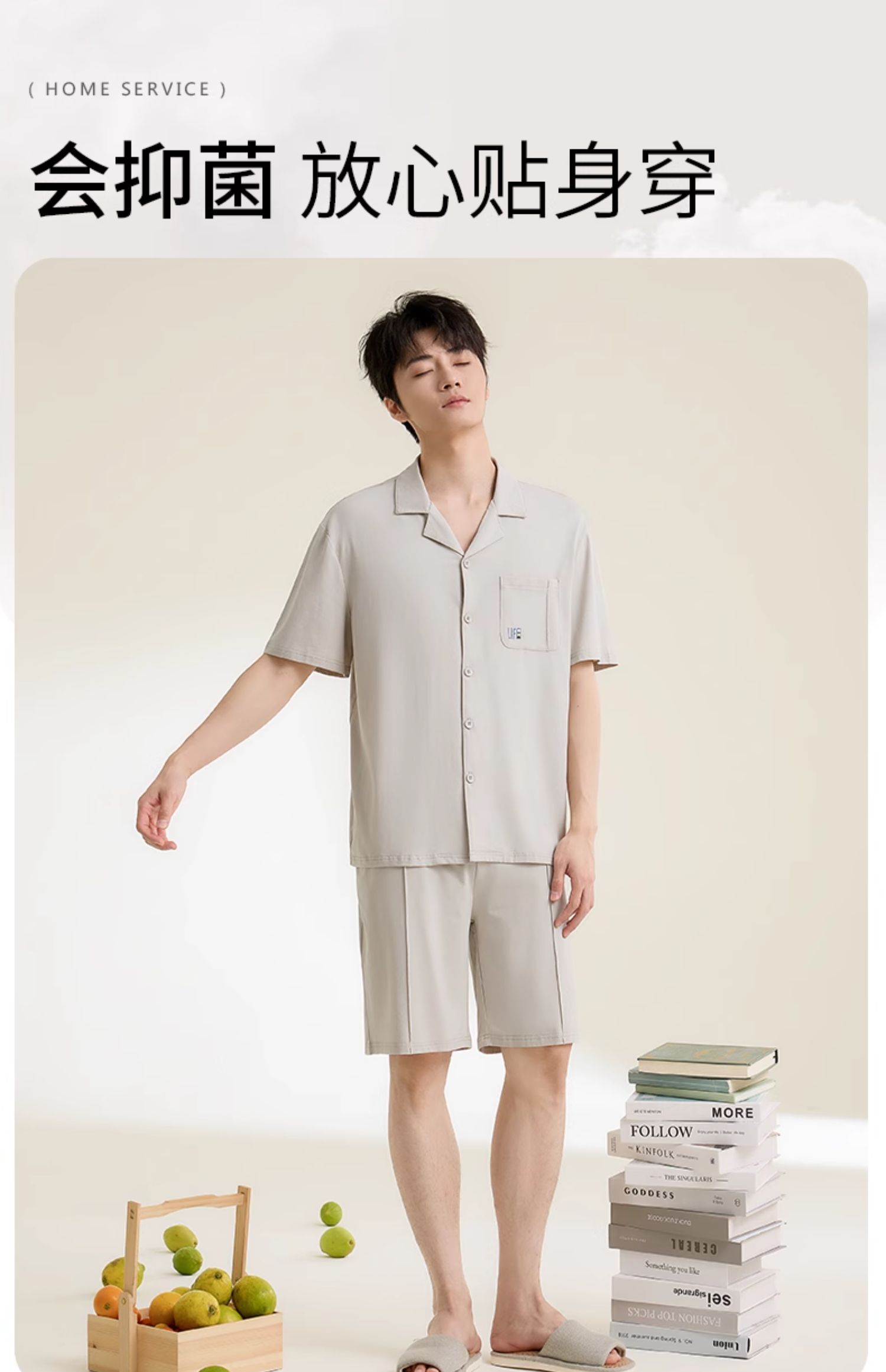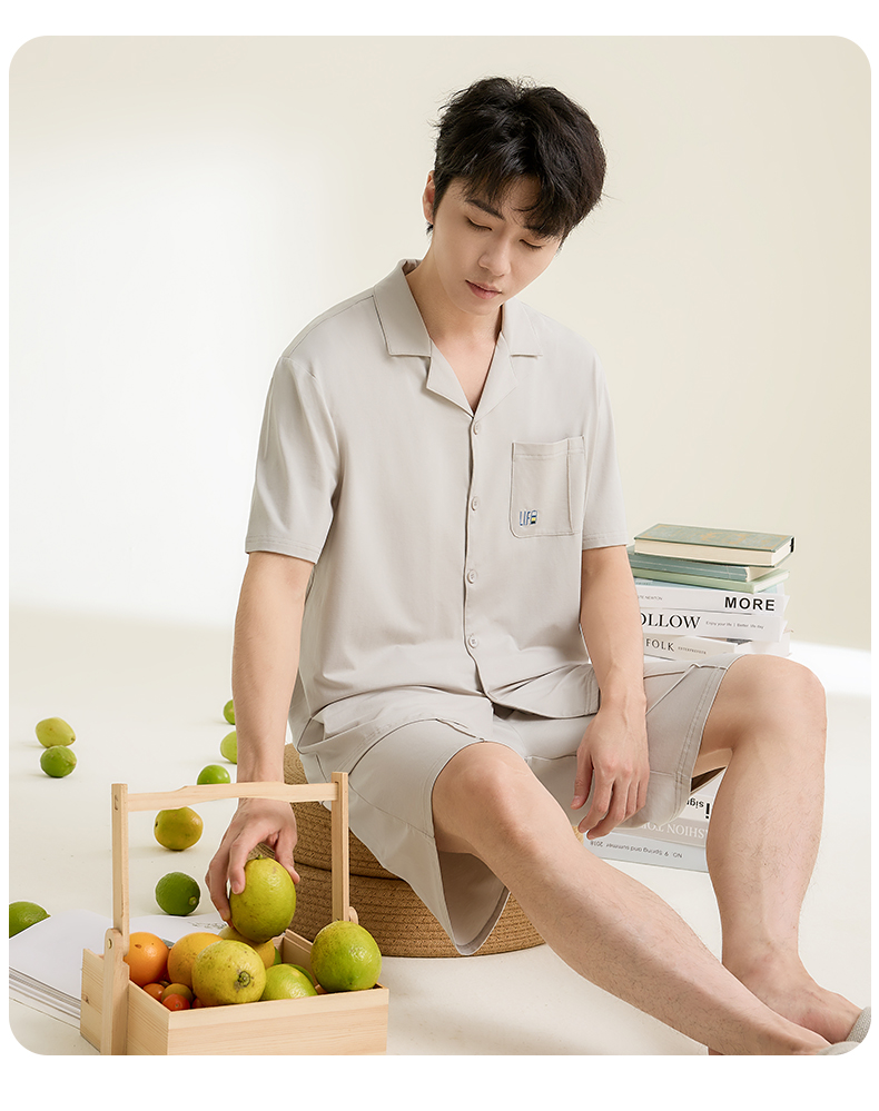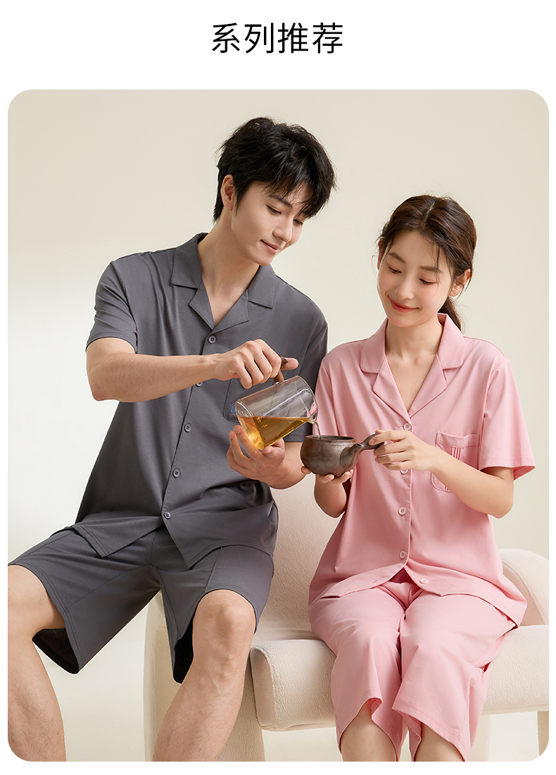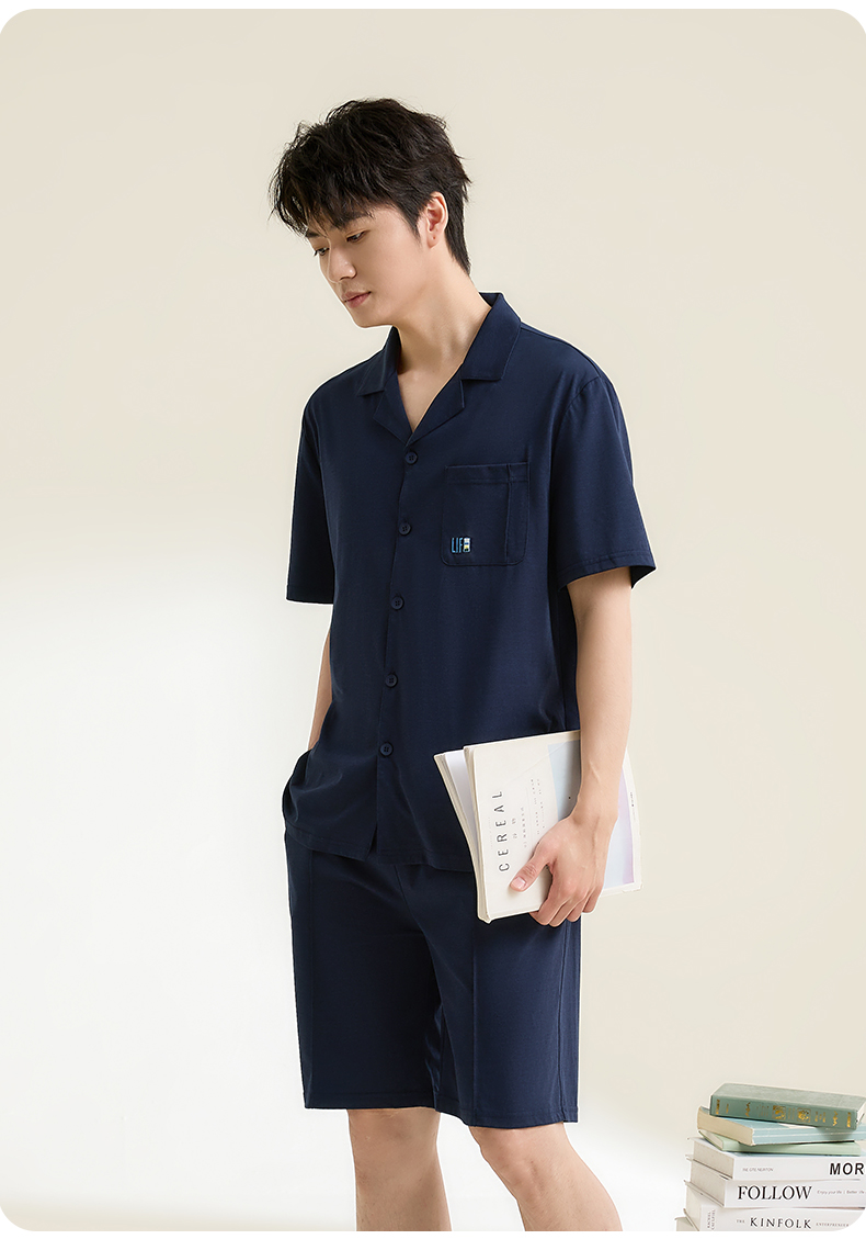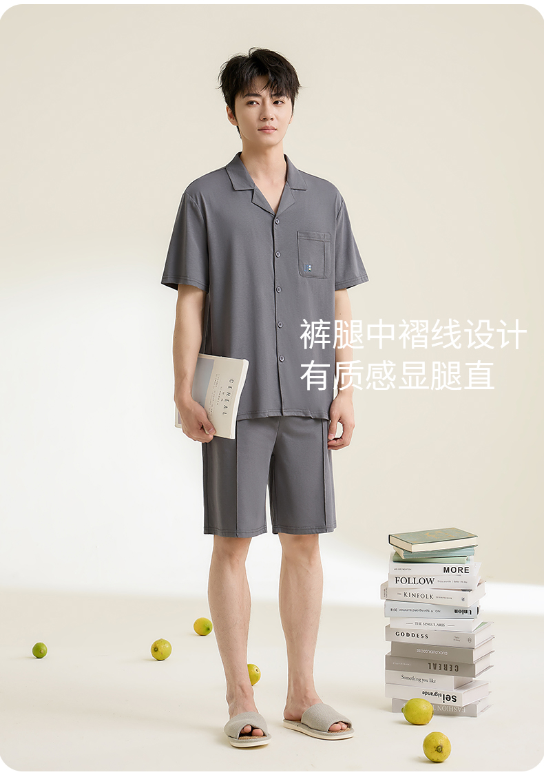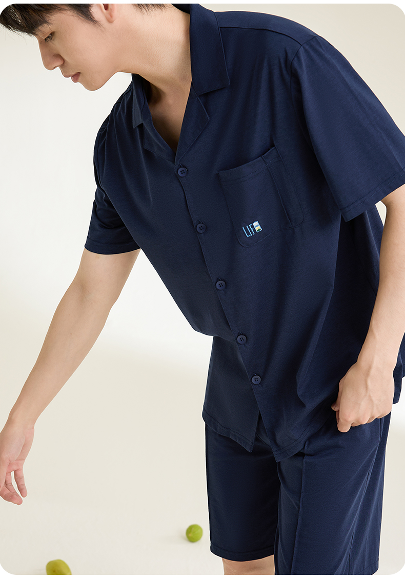 康妮雅男式短袖短裤开襟套装